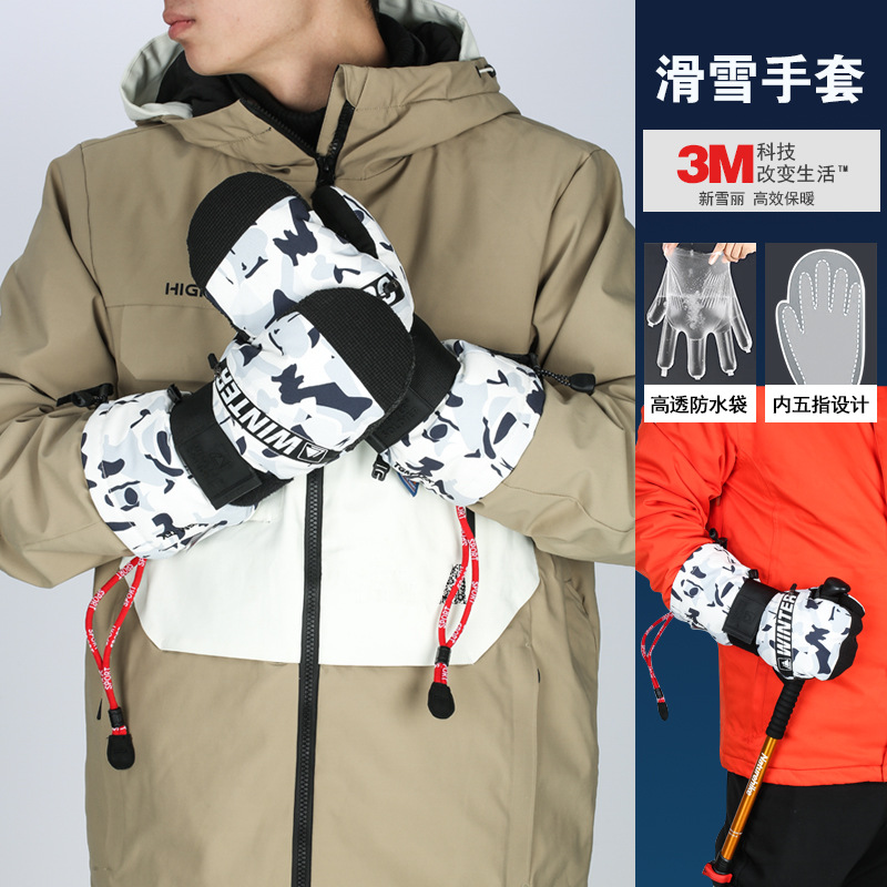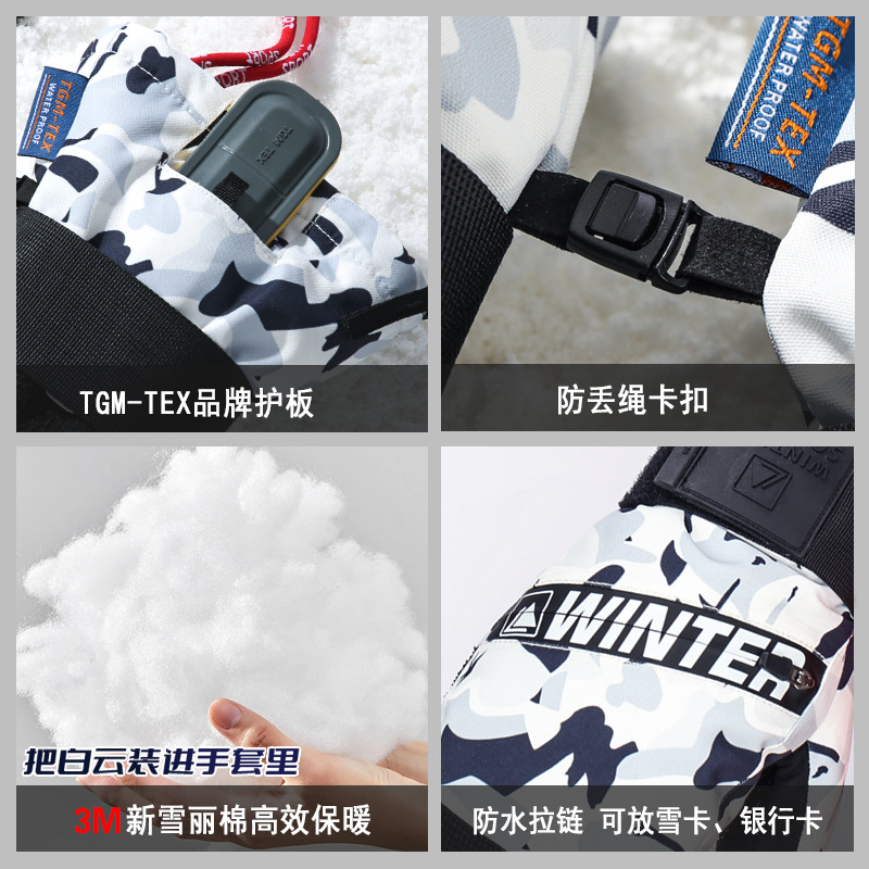 Заводские резные Нескользящие износостойкие кевларовые перчатки со встроенным браслетом, зимние водонепроницаемые морозостойкие теплые перчатки для сноуборда для мужчин
