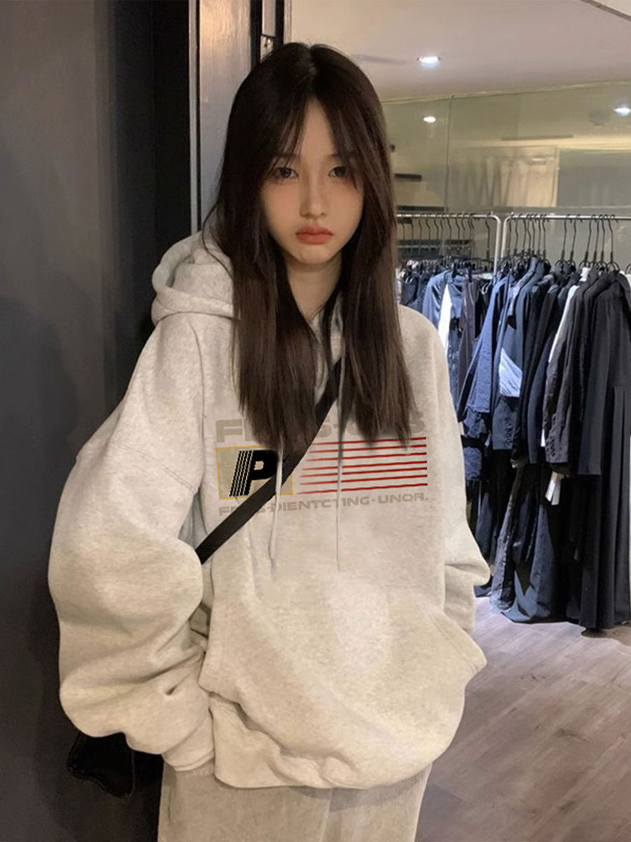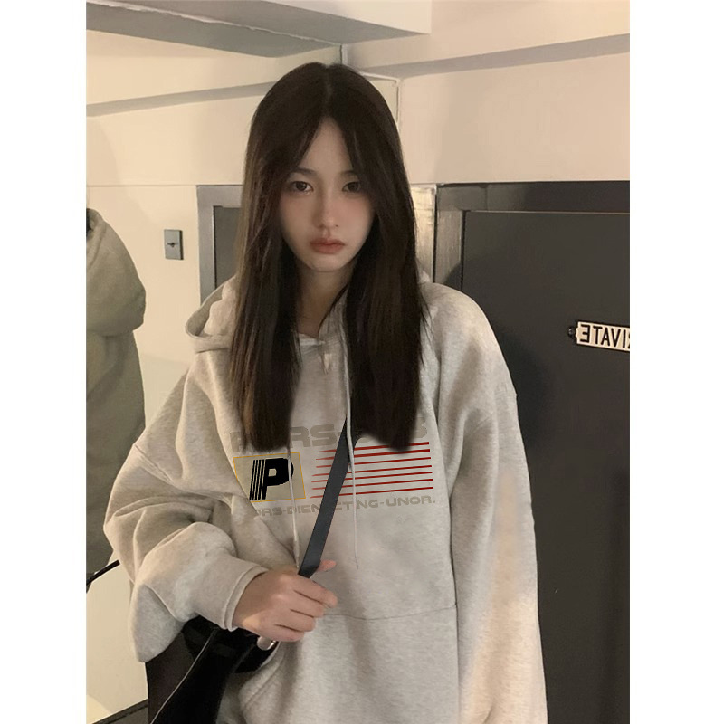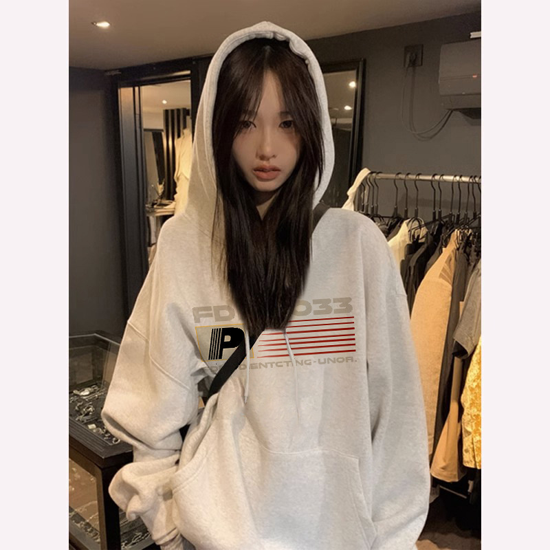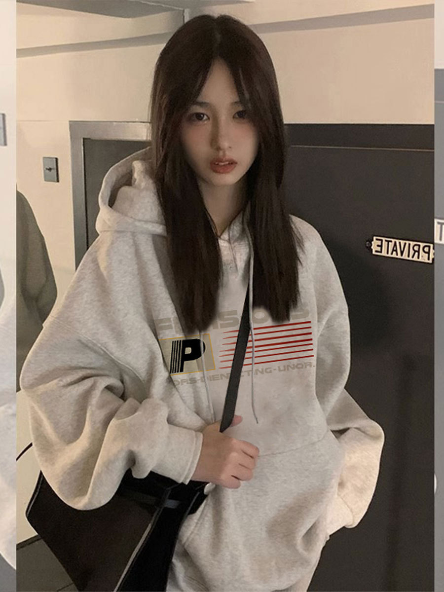 Серый свитер на флисовой подкладке в Корейском стиле с буквенным принтом для студенток, Осень-зима, Новый Свободный пуловер с капюшоном, женское Верхнее пальто