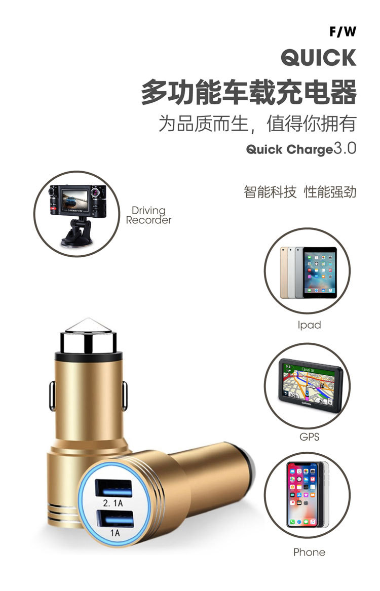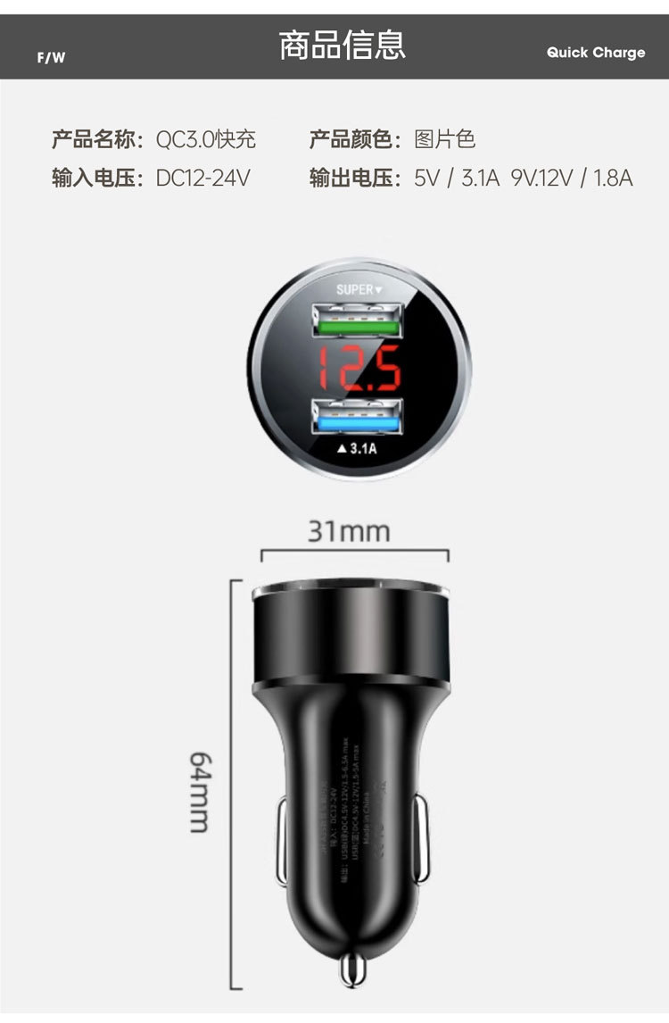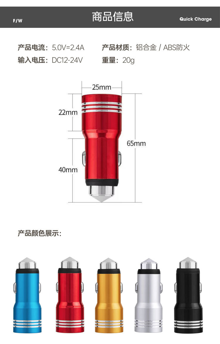 Безопасный молоток автомобильное зарядное устройство маленькое стальное ружье автомобильное зарядное устройство с цифровым дисплеем фиксированное автомобильное зарядное устройство 12,5 USB + PD QC3.0 Быстрая зарядка