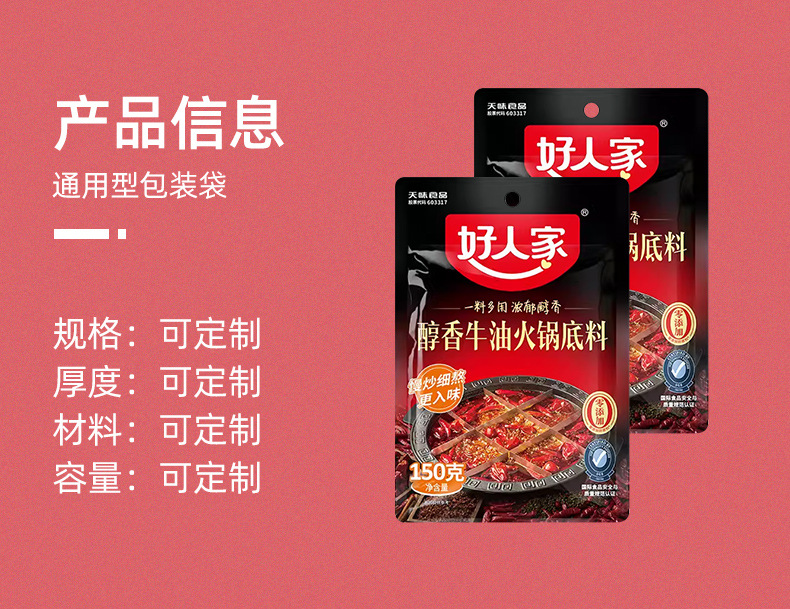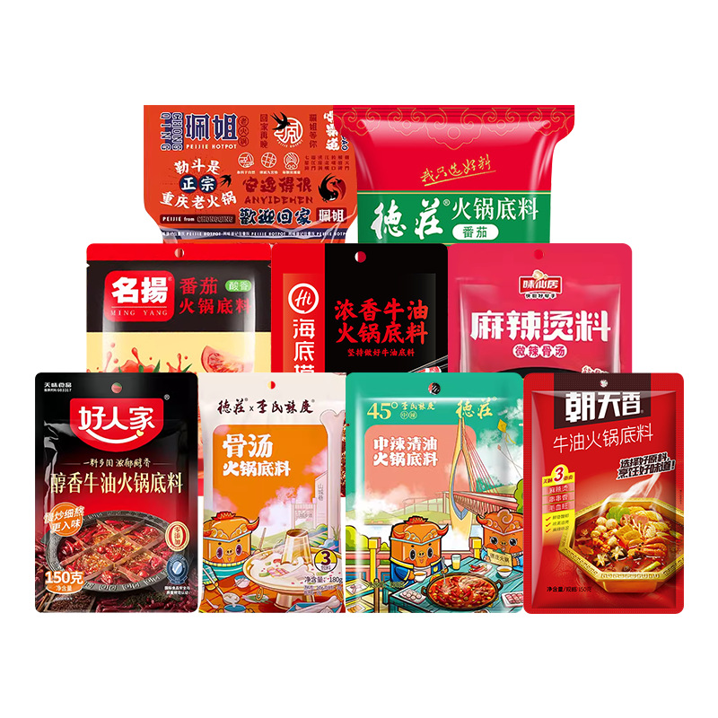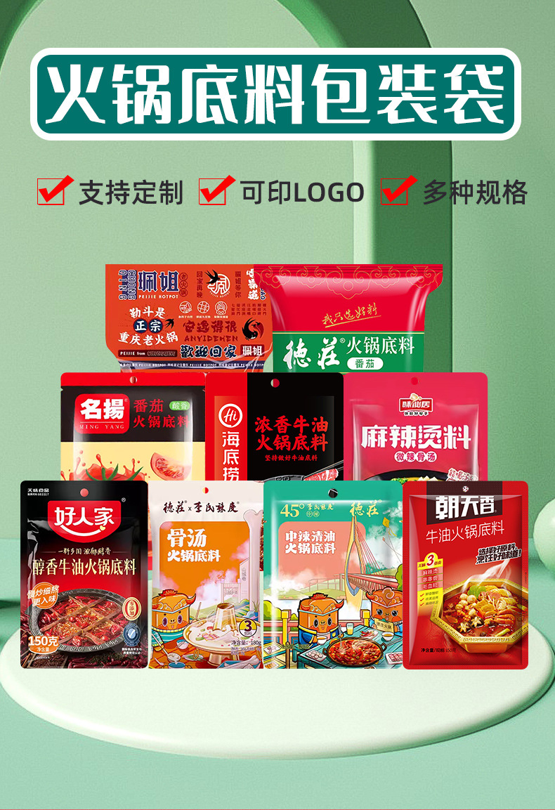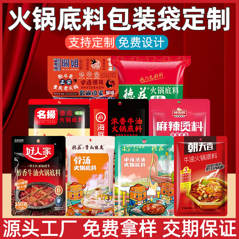 Индивидуальная упаковка для основы для хот-пота с трехсторонней сваркой, алюминиевое покрытие, светонепроницаемый пакет для соуса и супа, пищевая упаковка с печатью.