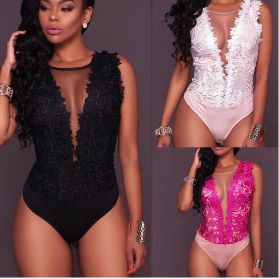 2023 Европейский и американский сексуальный кружевной сексуальный комбинезон с перспективным глубоким V-образным вырезом