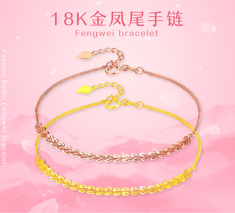 Оптовая продажа золота, браслет с хвостом феникса из 18-каратного золота, женское ожерелье из розового золота AU750 с хвостом феникса, ювелирные изделия, оптовая продажа, дропшиппинг