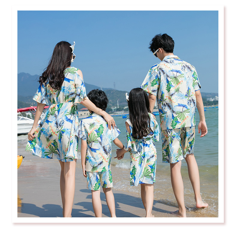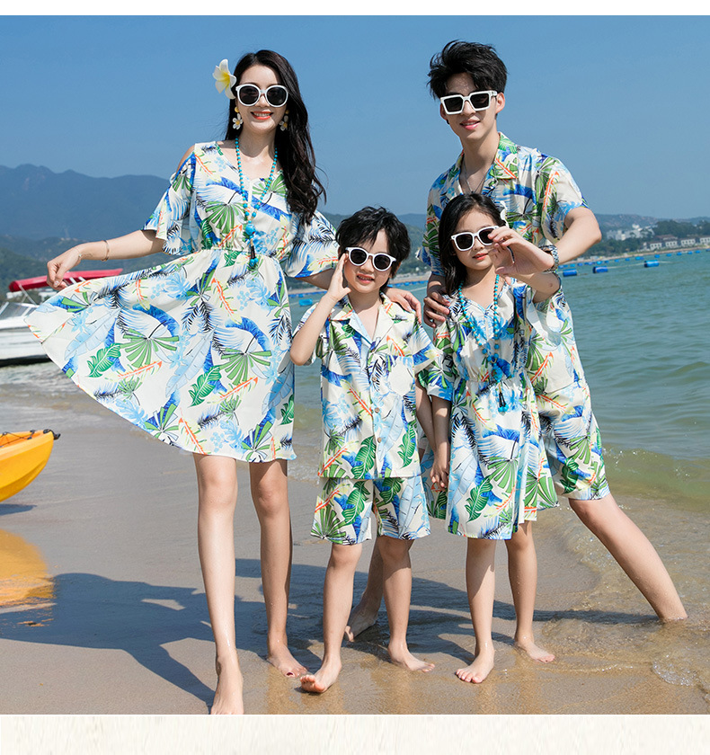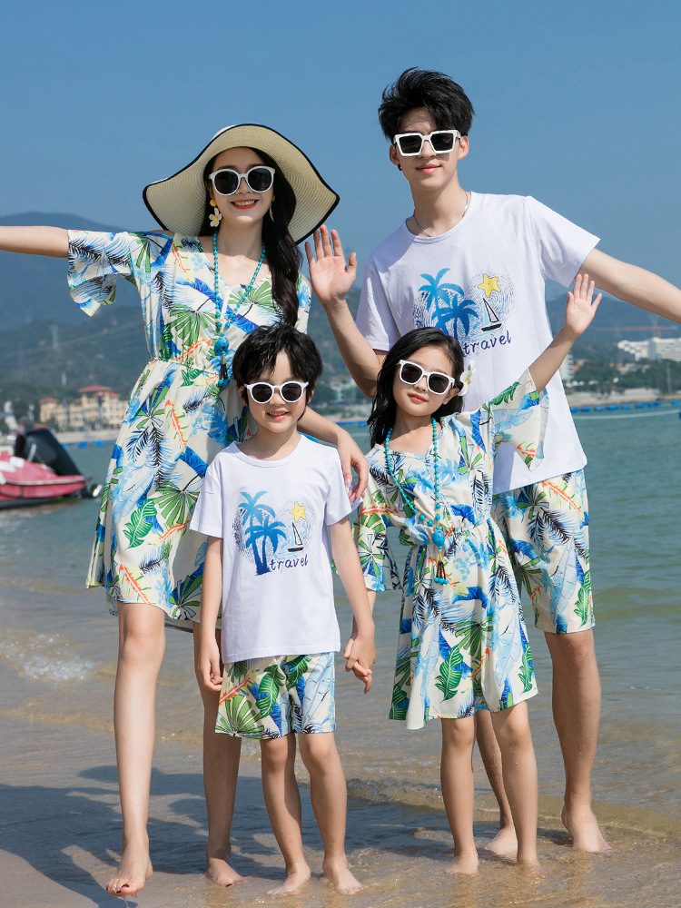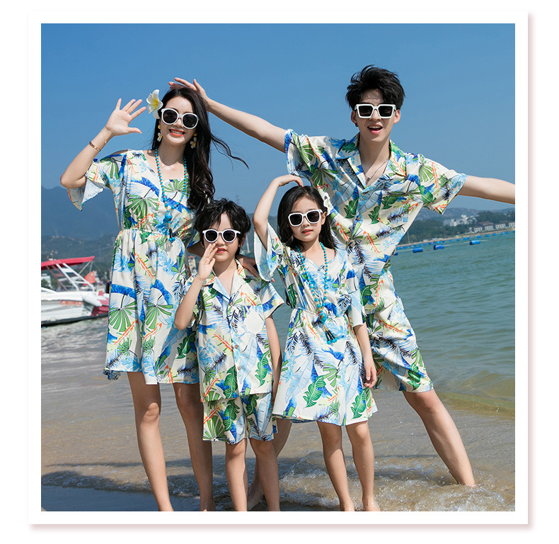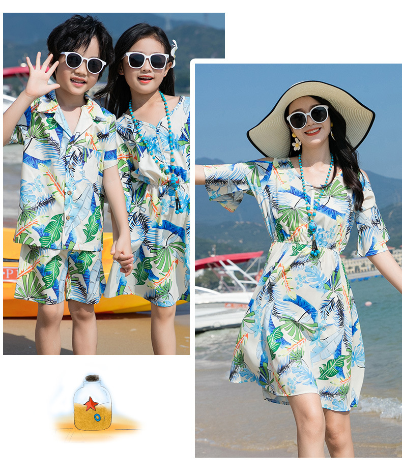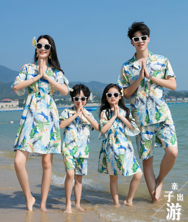 Кемпинг костюм родителей и детей отец-ребенок рубашка Костюм Остров костюм Отдых Западный стиль мать-ребенок мать-дочь пляжное платье Sanya Travel