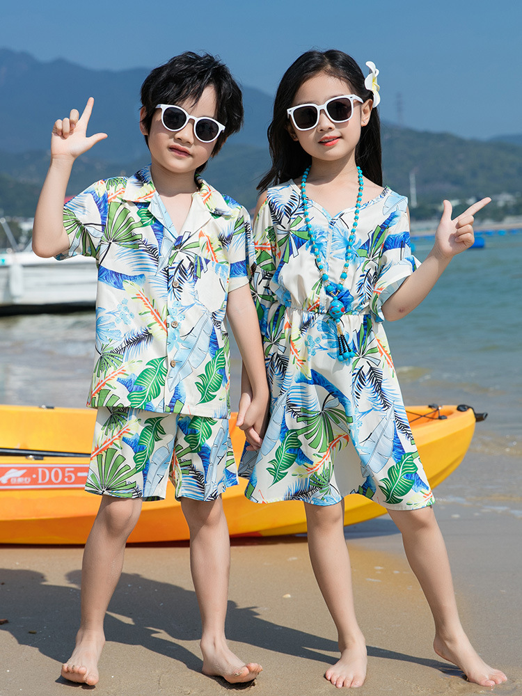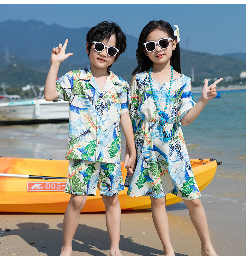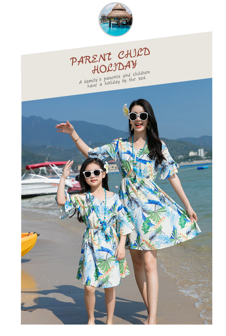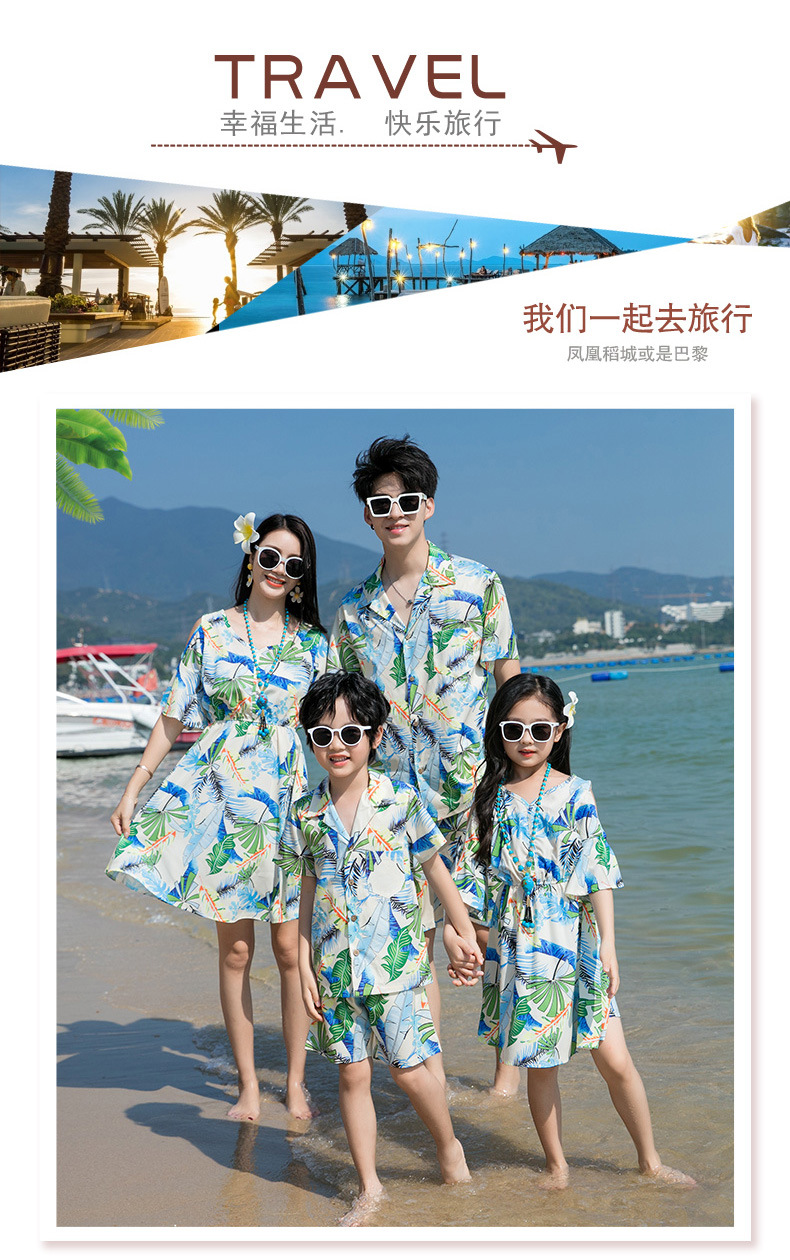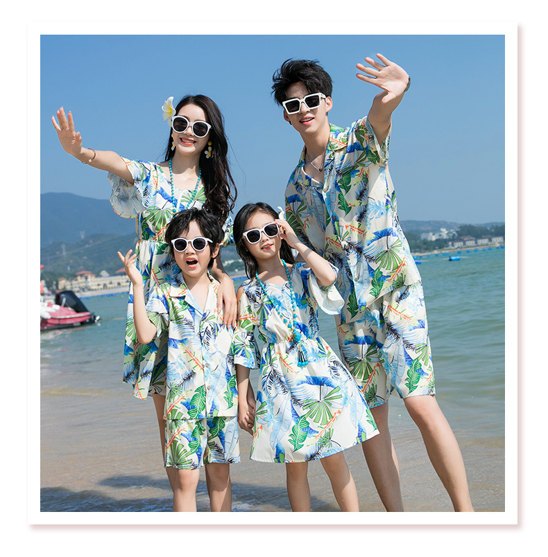 Кемпинг костюм родителей и детей отец-ребенок рубашка Костюм Остров костюм Отдых Западный стиль мать-ребенок мать-дочь пляжное платье Sanya Travel