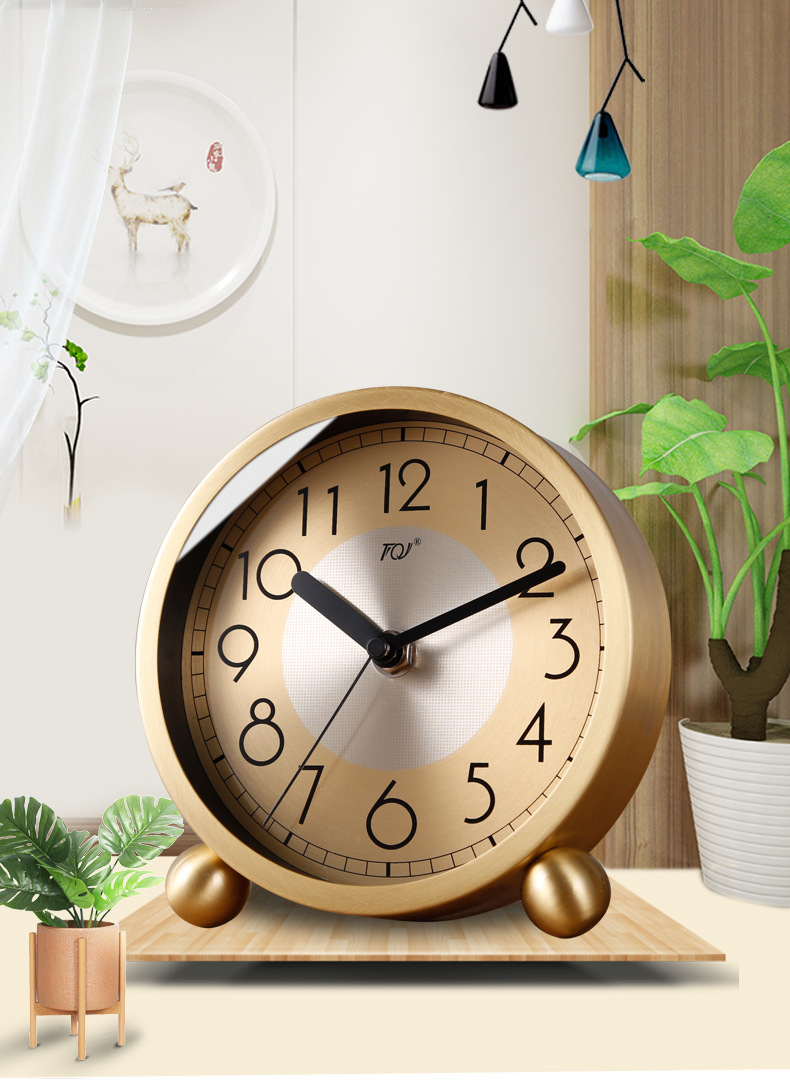 TQJ латунные простые часы Домашние настольные часы немые настольные часы модный стол прикроватные Кварцевые Электрические волновые часы