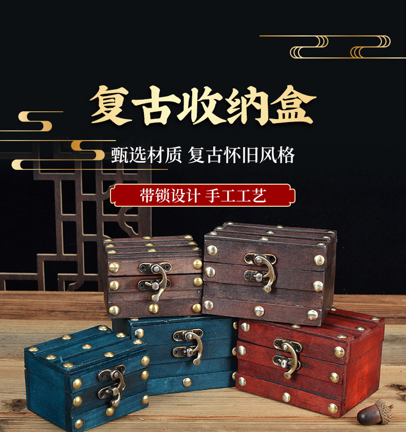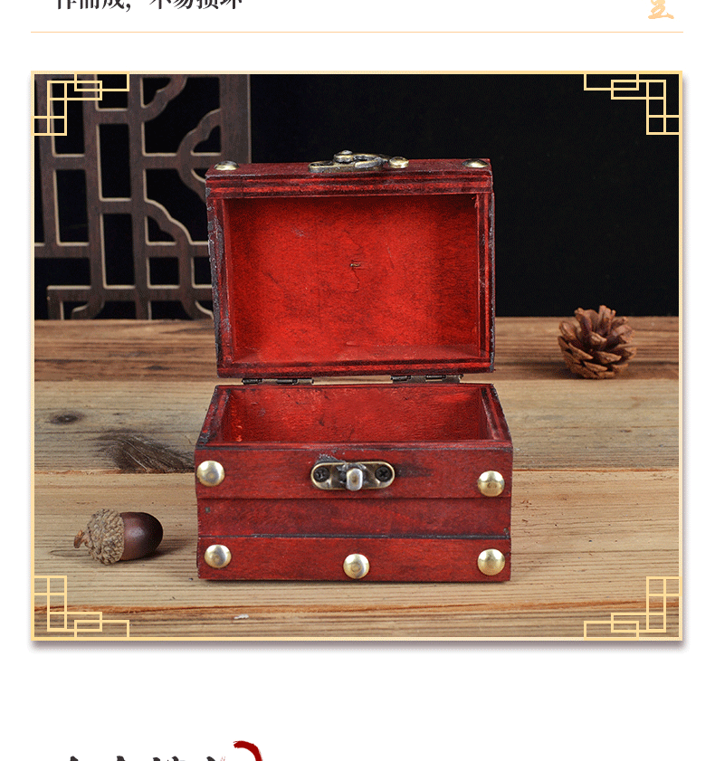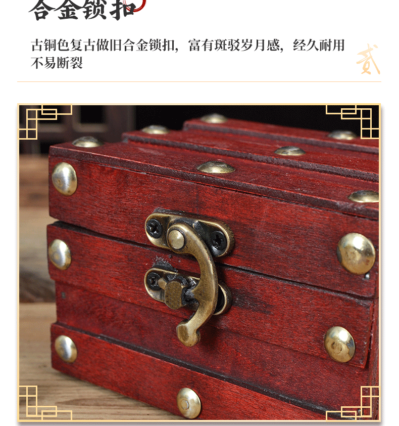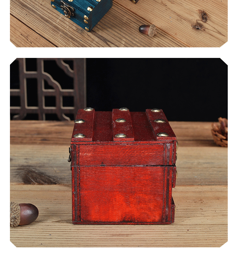 Коробка в античном стиле, имитация винтажной деревянной коробки из красного дерева, старинная коробка, шкатулка для украшений, реквизит для фотосъемки в древнем стиле с замком, реквизит в виде пиратского сундучка с сокровищами.