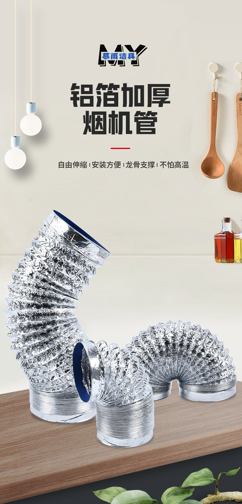 Кухонный вентилятор из алюминиевой фольги Выдвижная дымовая выхлопная труба утолщенная стальная проволока вентиляционная труба выхлопная труба дымоход