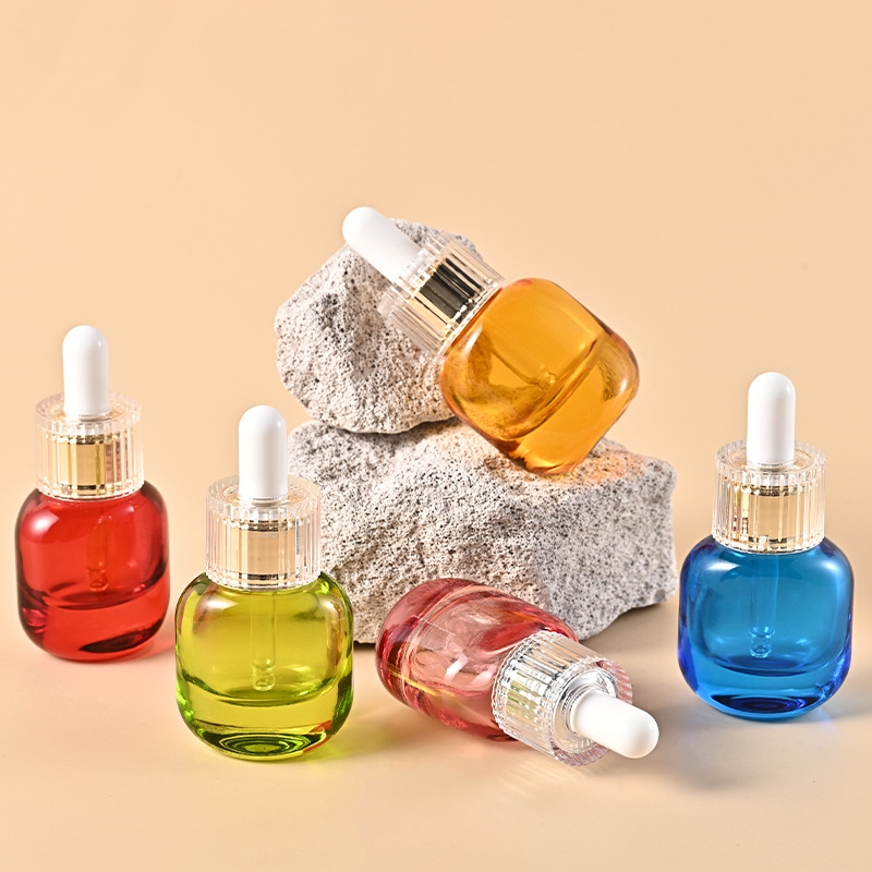 Серебряная вена 15ml Цветная сплюснутая круглая капельница Толстая нижняя бутылка для экстракта сырой жидкости бутылка акрилового эфирного масла среднего круга