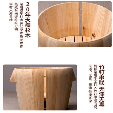 Ведро с прямым краем с плоской крышкой 21 см, 1 кг, 2-3 человека; Плоская крышка 21 см, 2-3 человека + ткань для приготовления на пару из рисовой ложки; Обложка ведра с изогнутым краем 21 см, 1,5 кошачьего риса + деревянная основа; Ведро с изогнутыми краями 21 см + подъемная крышка + (бамбуковое дно); Ведро с изогнутыми краями 24 см + подъемная крышка для приготовления на пару 3 фунта риса + деревянная основа; Деревянный бочка 24 см с плоской крышкой + ложка для риса из ткани для приготовления на пару.; Ведро с изогнутыми краями 24 см + подъемная крышка + (бамбуковое дно); Ведро с изогнутыми краями 27 см + крышка (паровые 4 фунта риса + деревянная основа; Деревянный бочка шириной 27 см с плоской крышкой + ложка для риса из ткани для приготовления на пару.; Деревянная крышка шириной 27 см с бамбуковой основой + ложка для риса из ткани для приготовления на пару; 30 см деревянная крышка для приготовления на пару, 5 кг риса + ложка для риса, ткань для приготовления на пару; Ведро с изогнутыми краями 30 см + плоская крышка + деревянное дно; Деревянная крышка длиной 30 см с бамбуковой основой + ткань для приготовления на пару с ложкой для риса.; 33 см деревянный бочка с изогнутым краем + подъемная крышка для приготовления на пару 7 фунтов риса + деревянная основа; Ведро с прямыми краями 35 см + подъемная крышка для приготовления на пару 9 фунтов риса + деревянное дно; Ведро с прямыми краями 40 см + отпаривание с крышкой 7.5kg + деревянное дно; Ведро с прямыми краями 45 см + отпаривание с крышкой 12.5kg + деревянное дно; 50 см прямой край 35 кг метр 50-70 человек деревянное дно