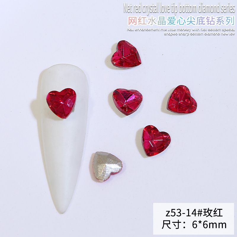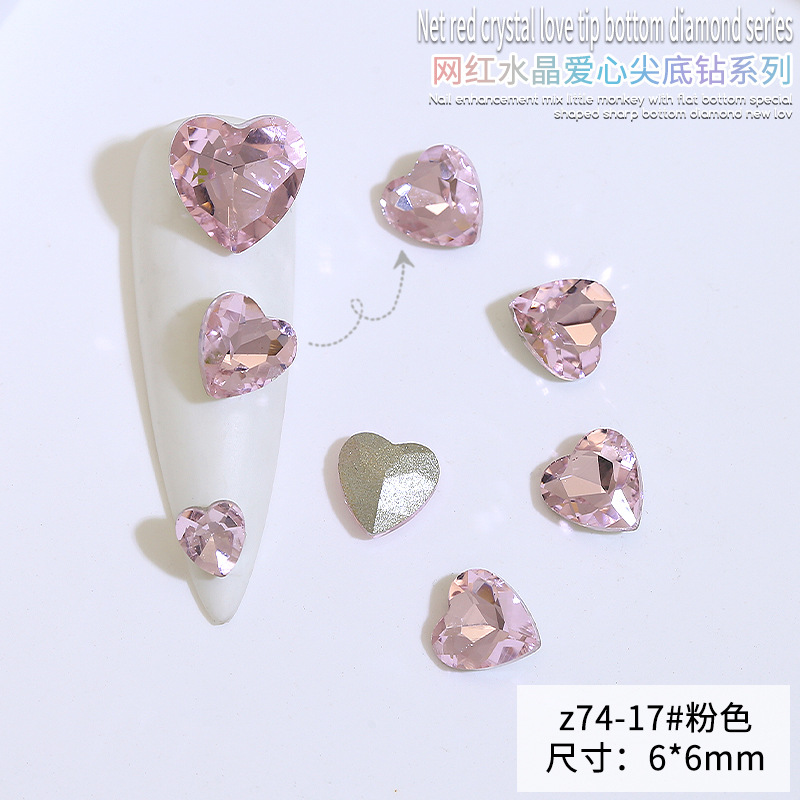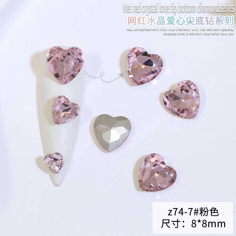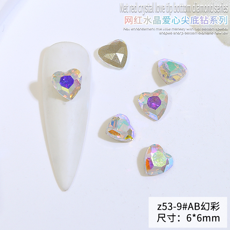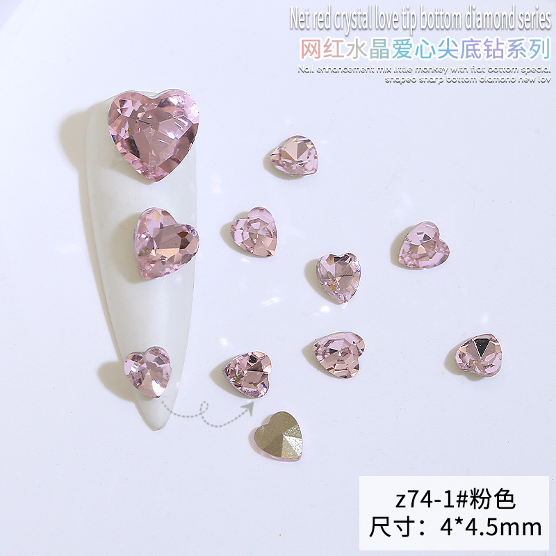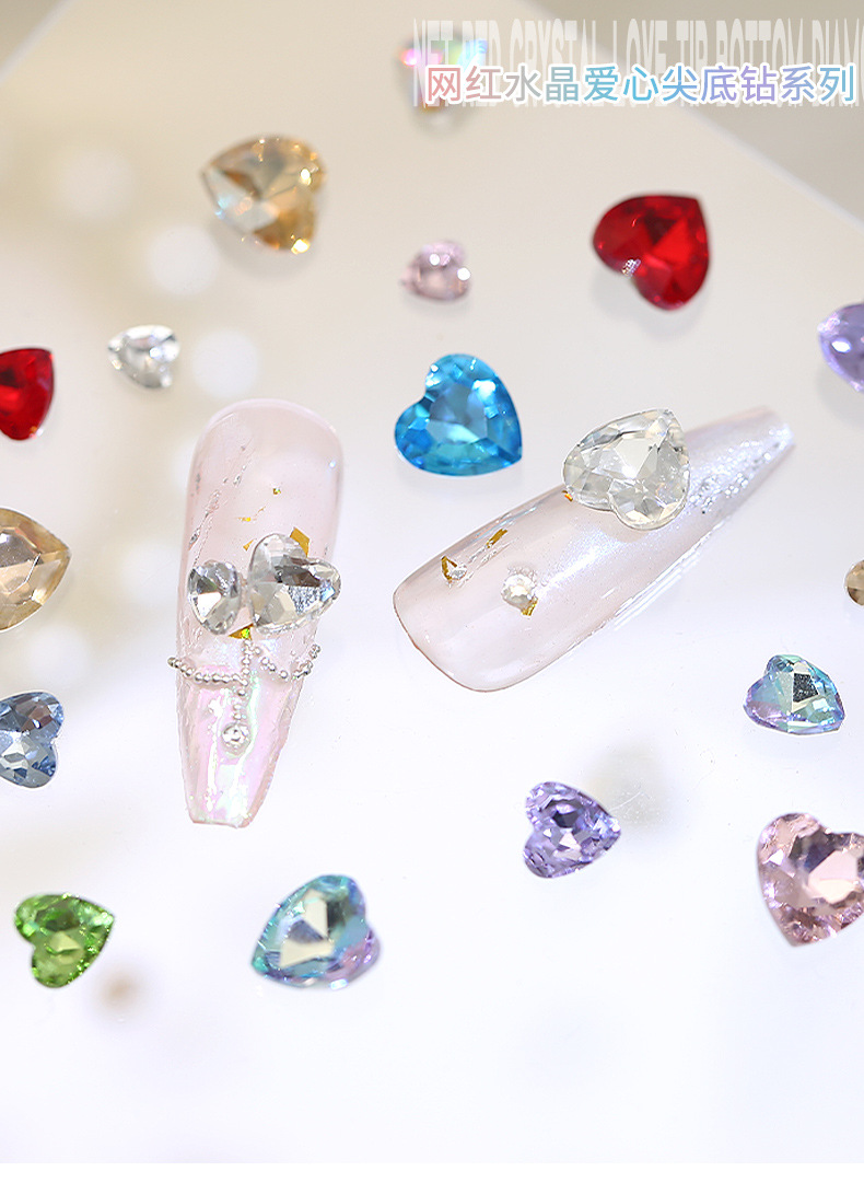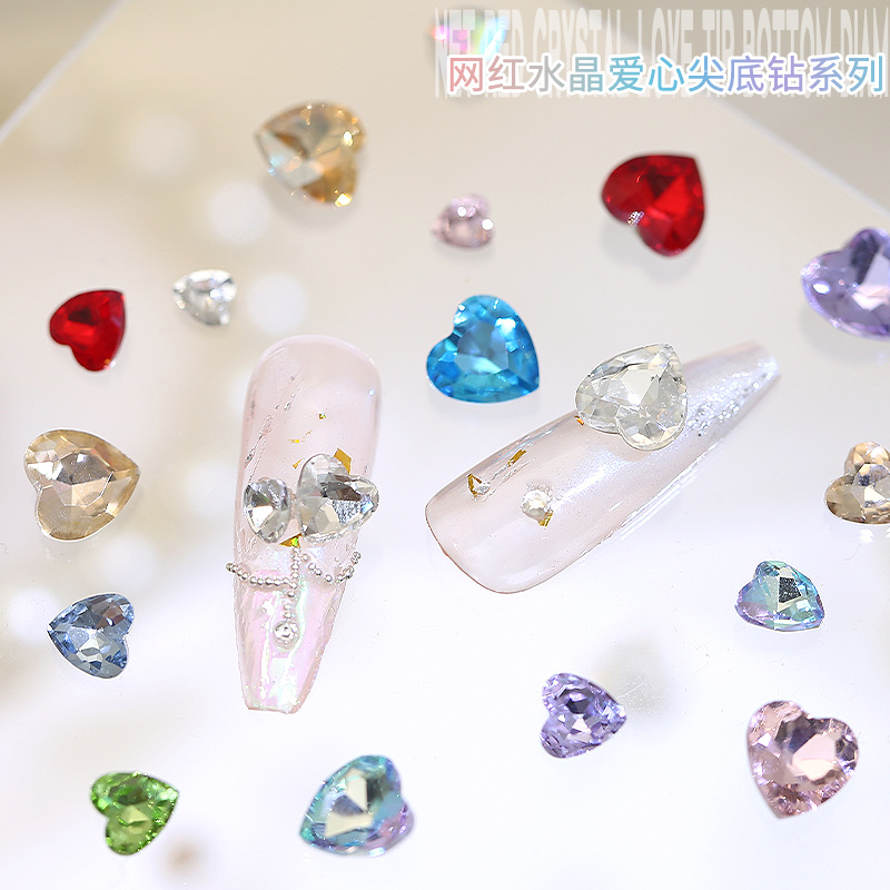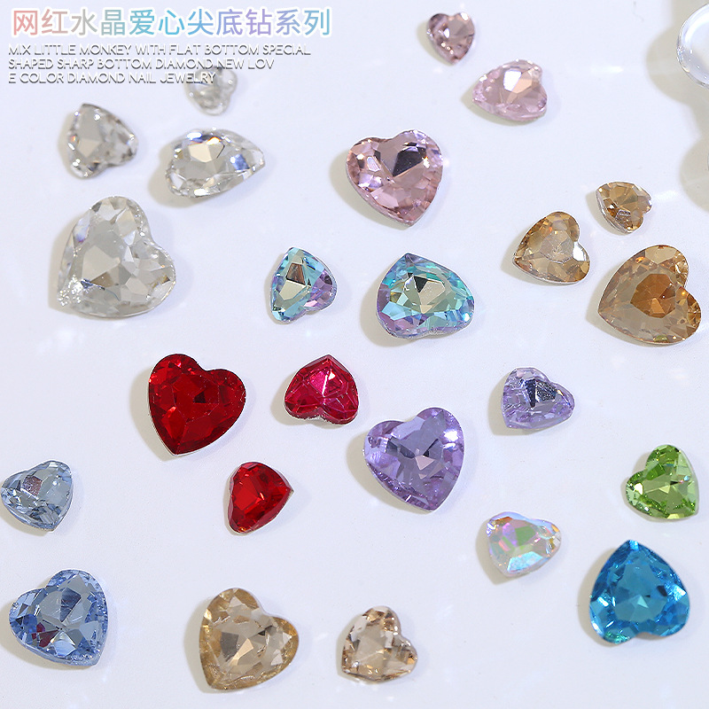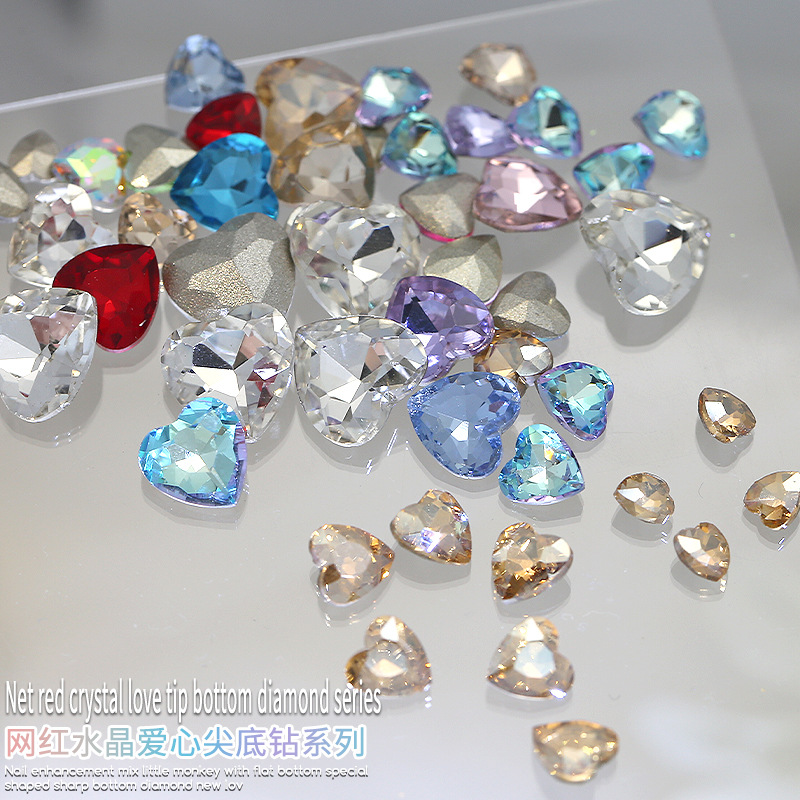 Бриллиант для ногтей оптом Интернет знаменитости любовь заостренный нижний бриллиант супер цвет вспышки большой маленький размер Персиковое сердце стекло горный хрусталь украшения для ногтей