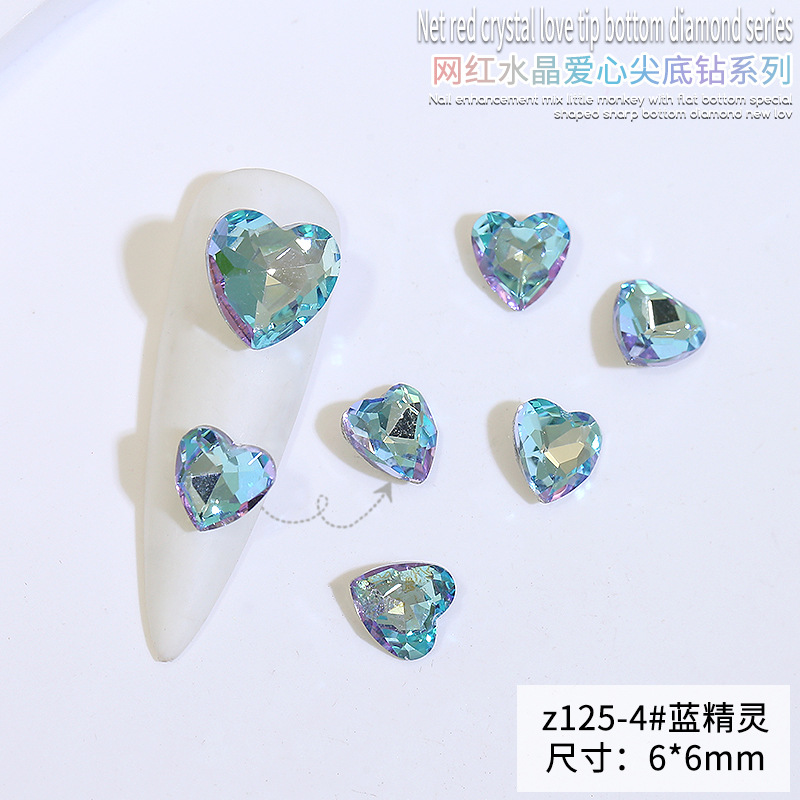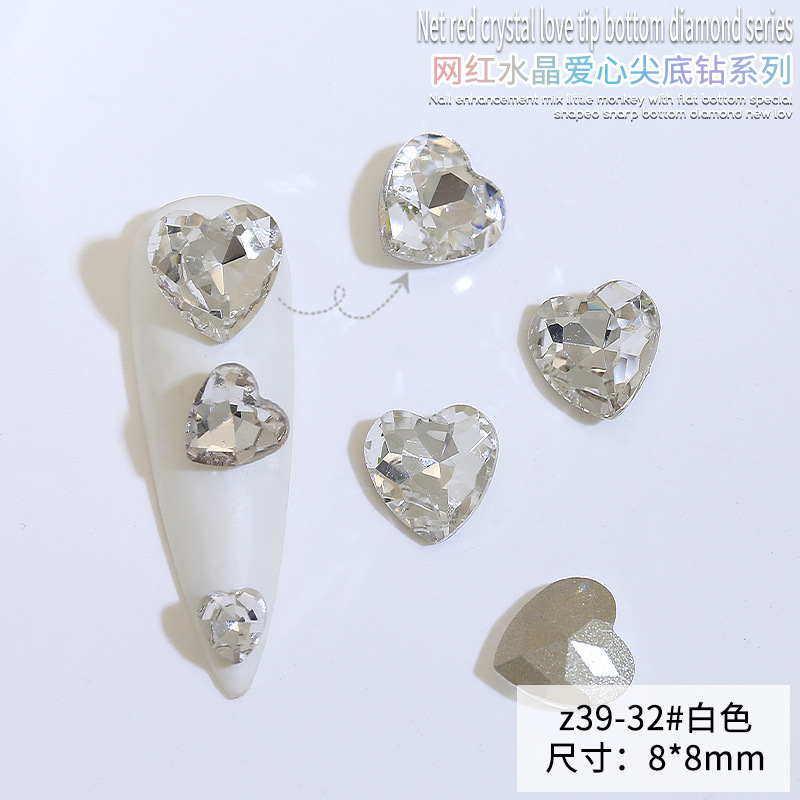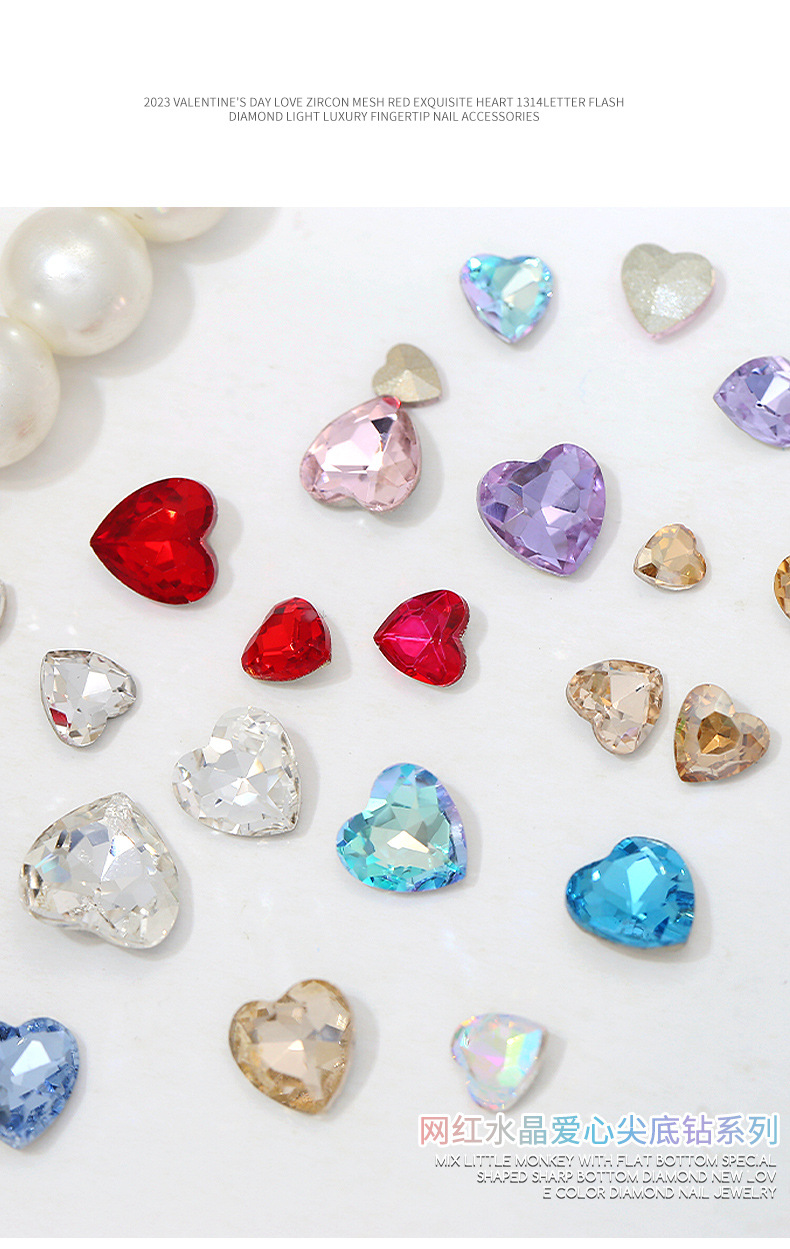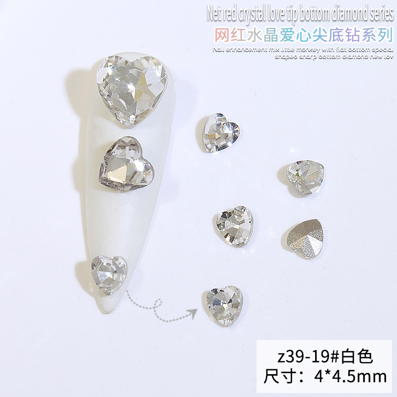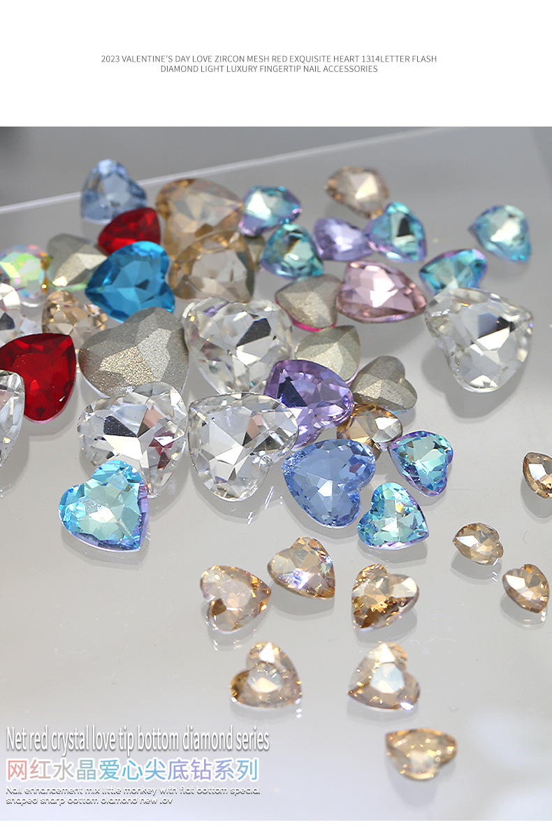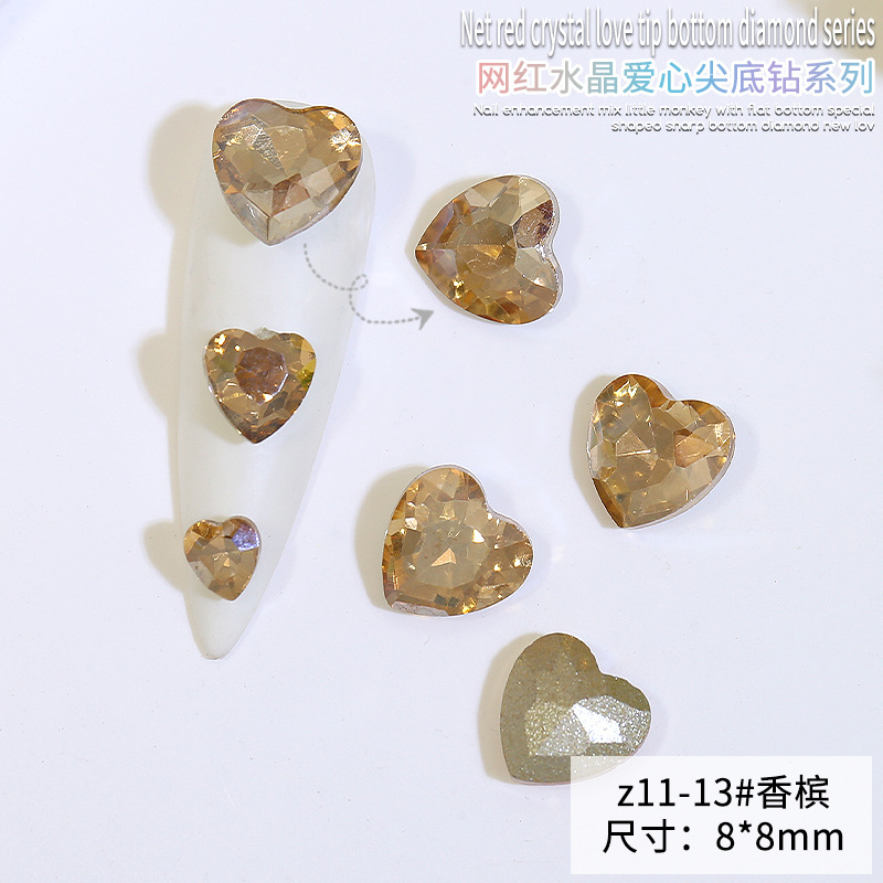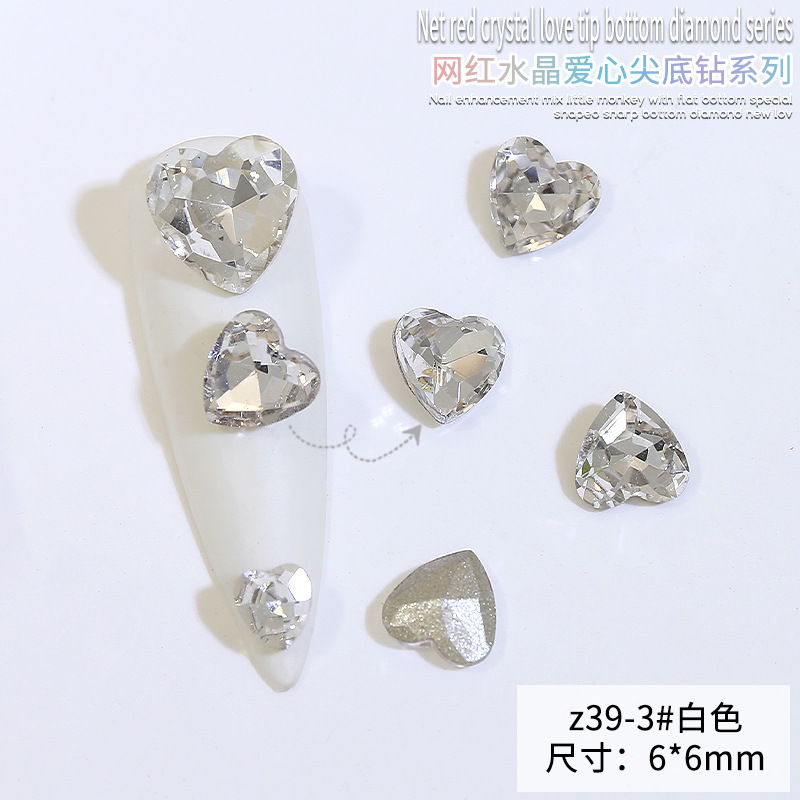 Бриллиант для ногтей оптом Интернет знаменитости любовь заостренный нижний бриллиант супер цвет вспышки большой маленький размер Персиковое сердце стекло горный хрусталь украшения для ногтей