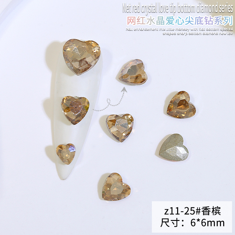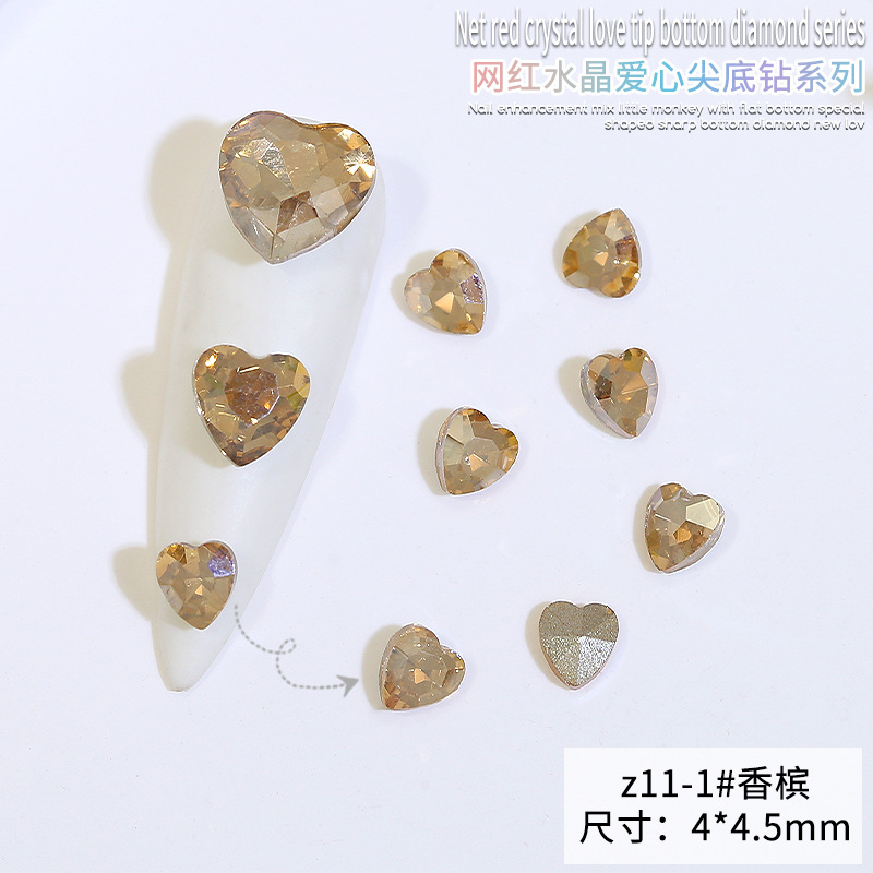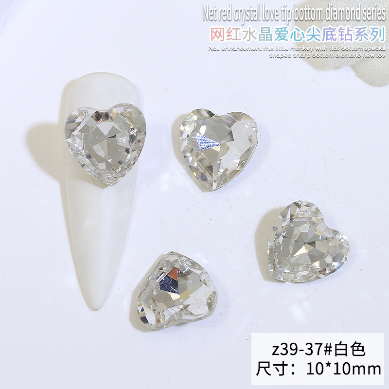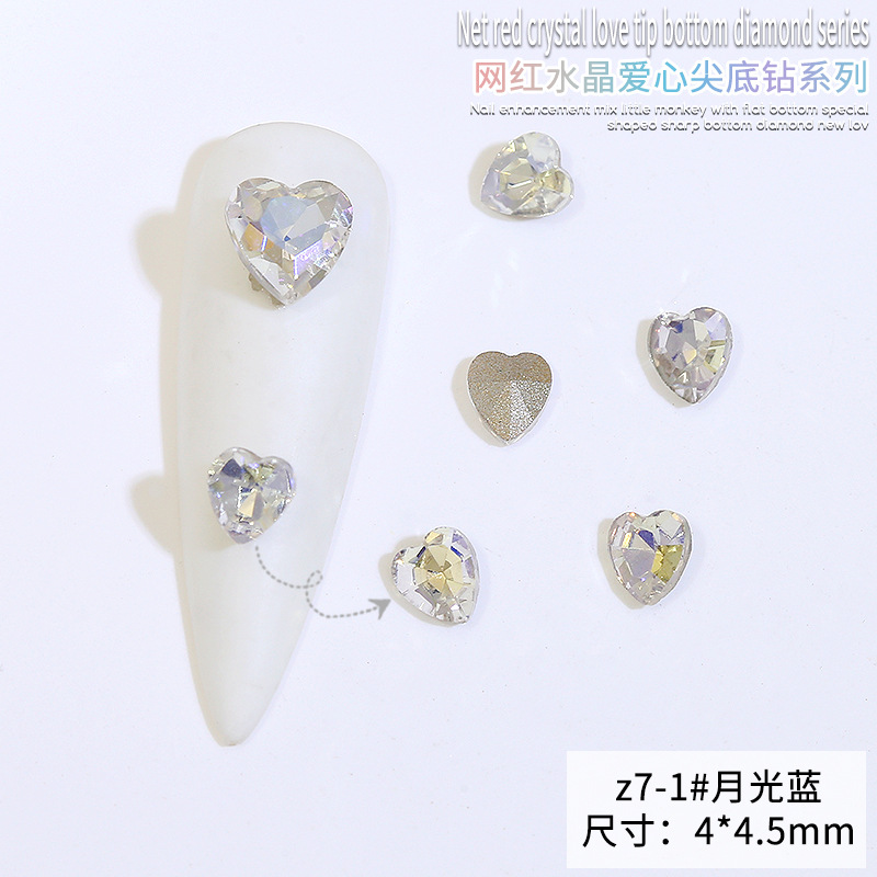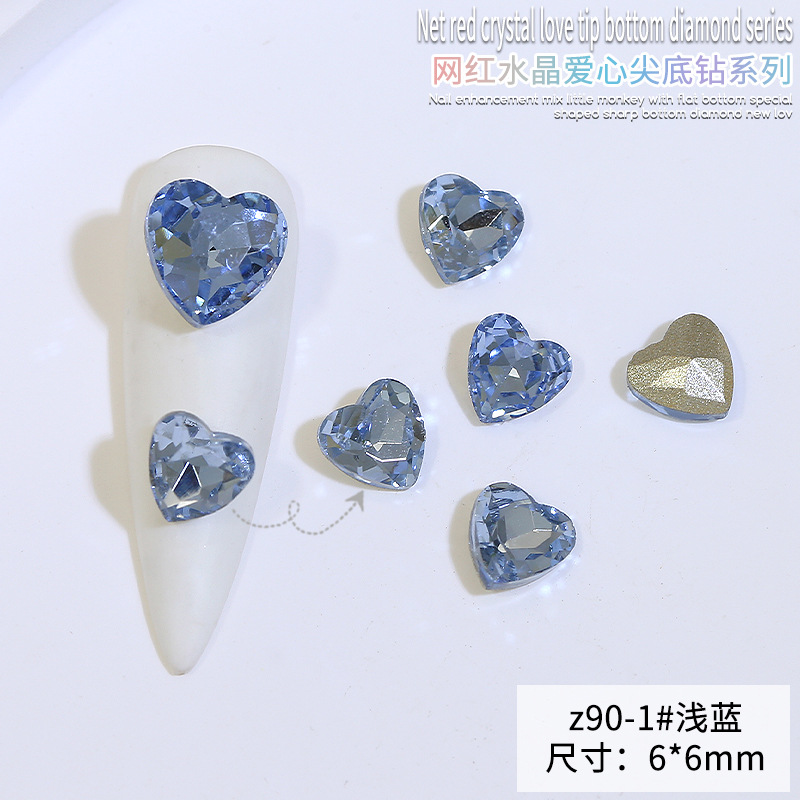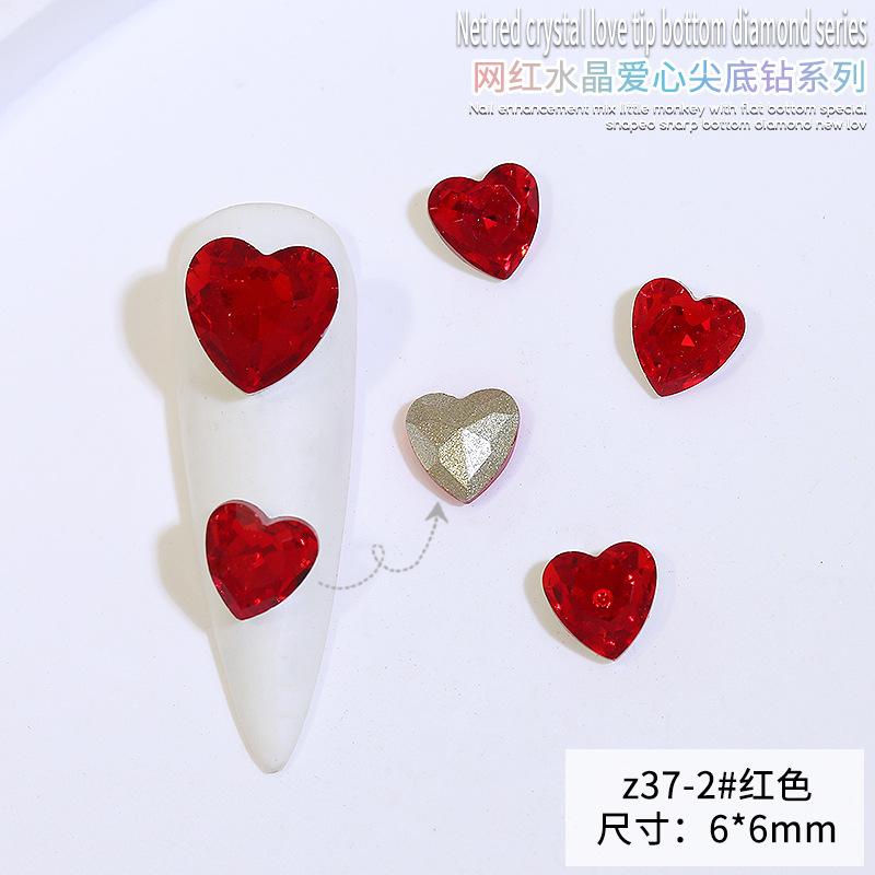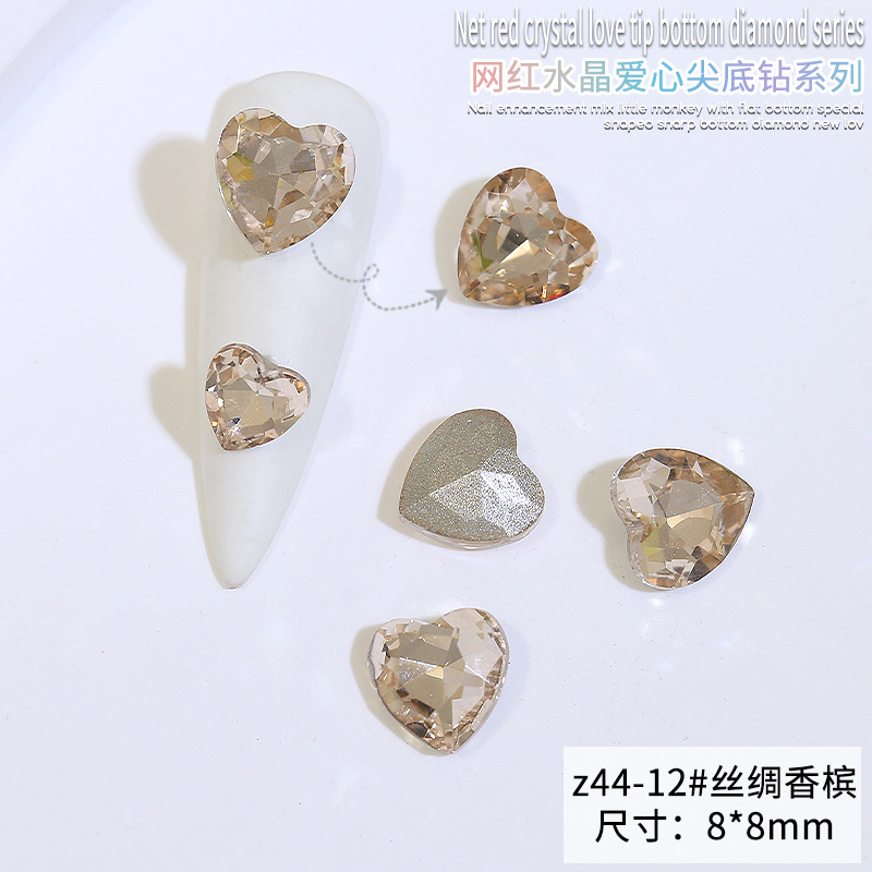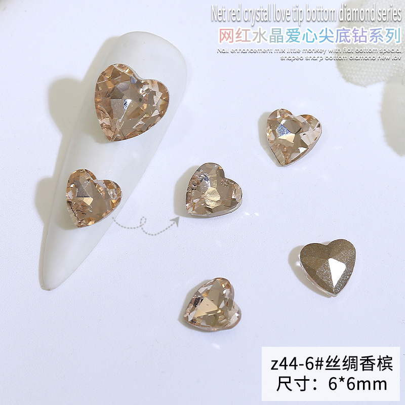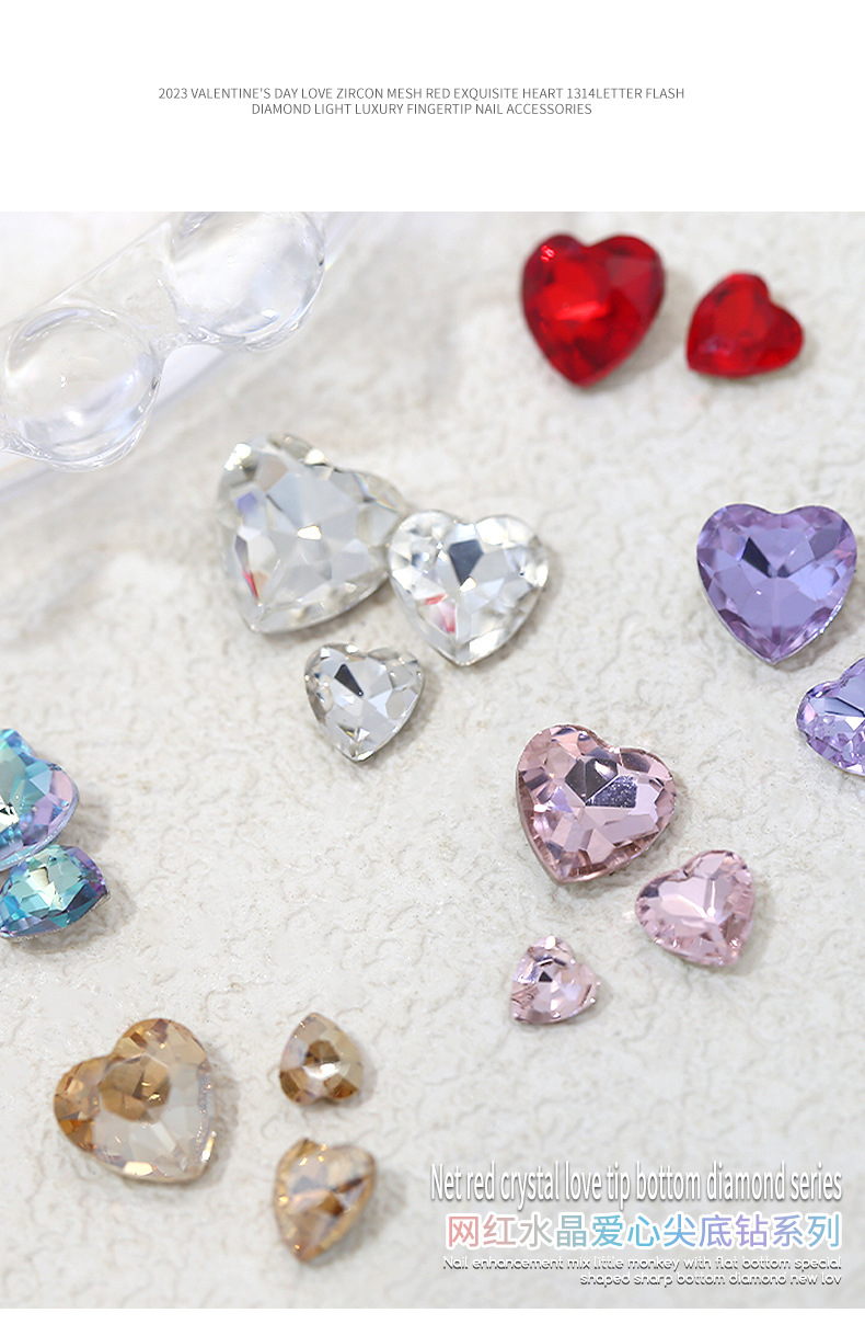Бриллиант для ногтей оптом Интернет знаменитости любовь заостренный нижний бриллиант супер цвет вспышки большой маленький размер Персиковое сердце стекло горный хрусталь украшения для ногтей