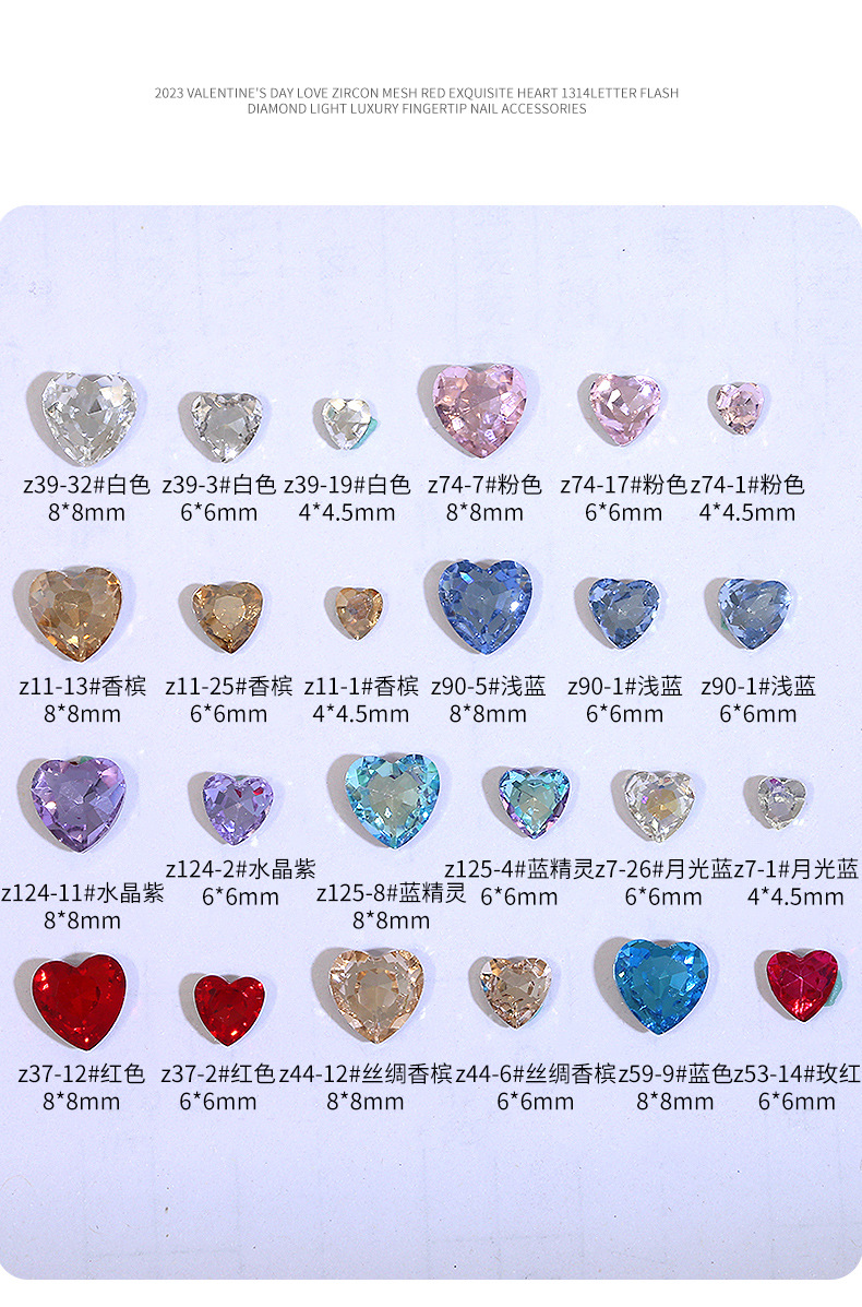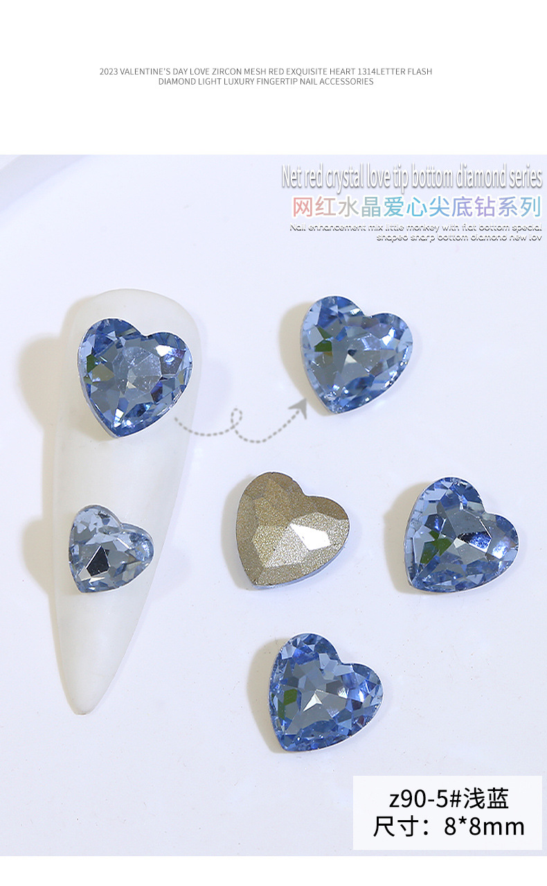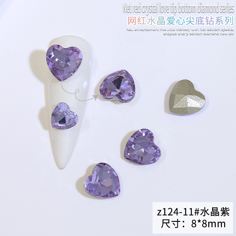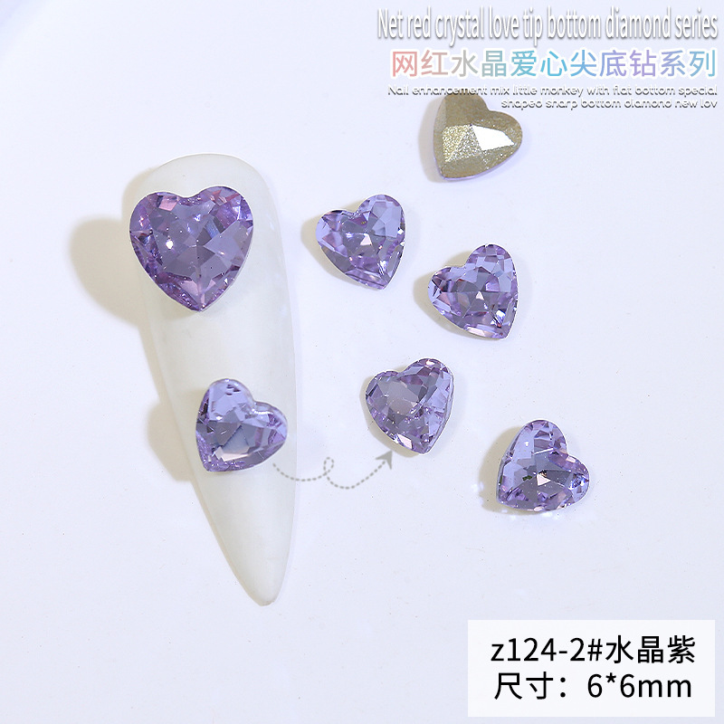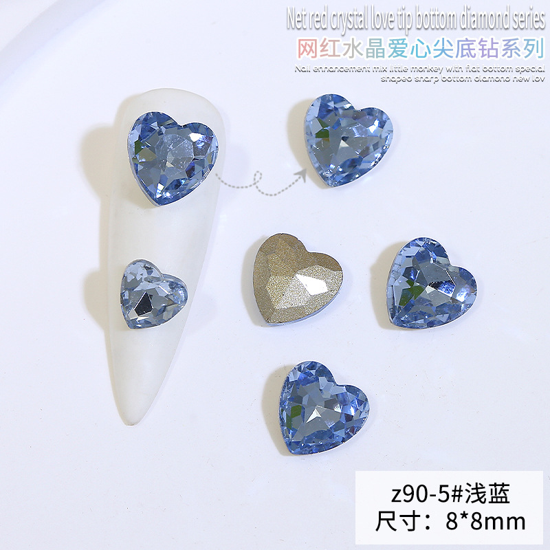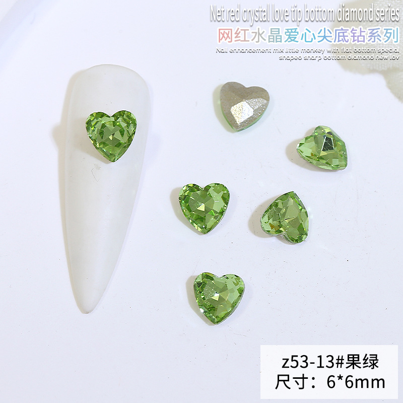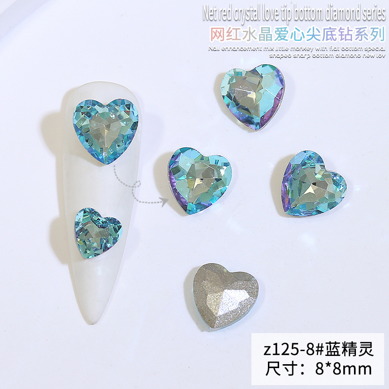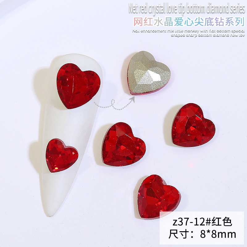 Бриллиант для ногтей оптом Интернет знаменитости любовь заостренный нижний бриллиант супер цвет вспышки большой маленький размер Персиковое сердце стекло горный хрусталь украшения для ногтей