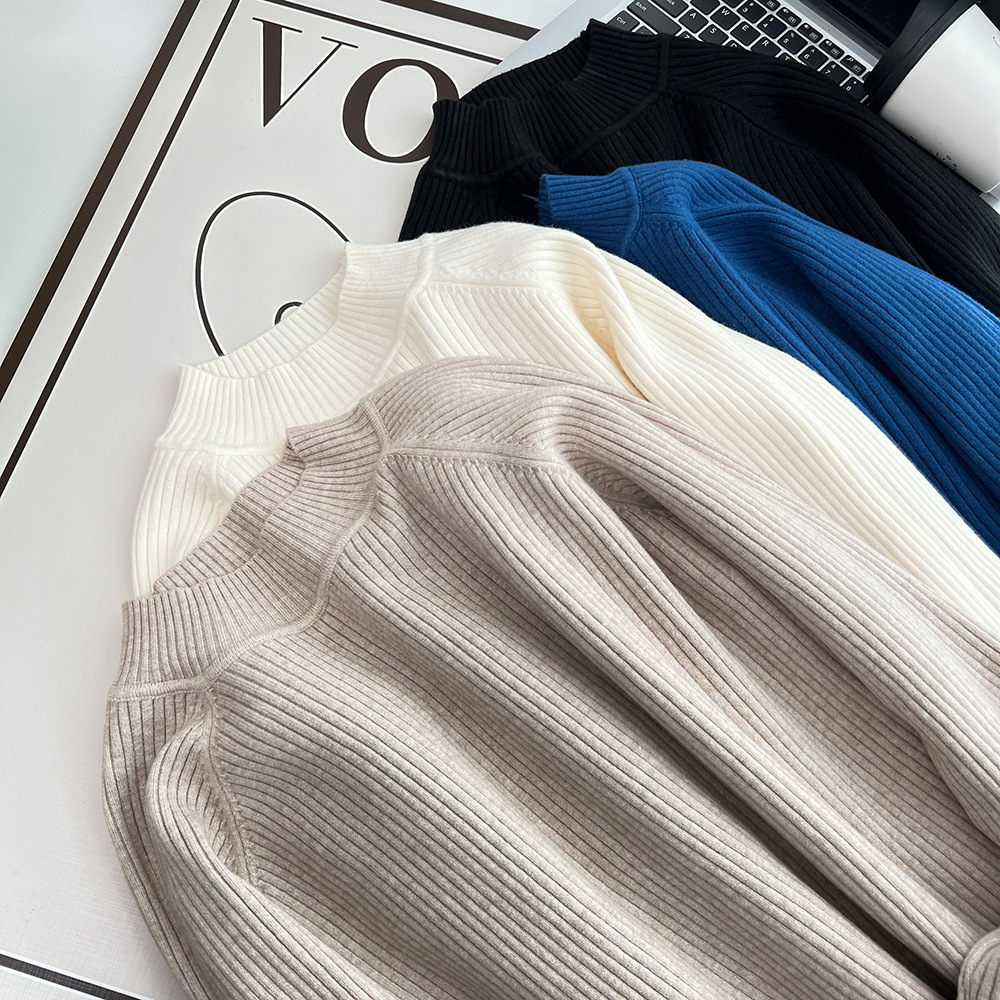 Весна, осень и зима пухлые девушки простые все соответствующие утолщенные сплошной цвет половина Водолазки Вязаный свитер плюс размер внутренняя одежда для женщин 2136