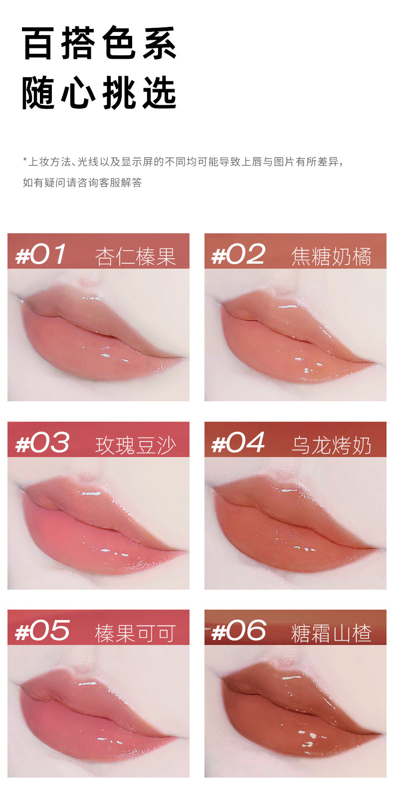 01 # (миндальный фундук); 02 # (карамельный молочный апельсин); 03 # (паста из розовой фасоли); 04 # (Улун жареное молоко); 05 # (ореховый какао); 06 # (глазурь боярышник)