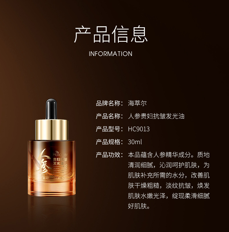 Женское глянцевое масло против морщин Haicuer с женьшенем
