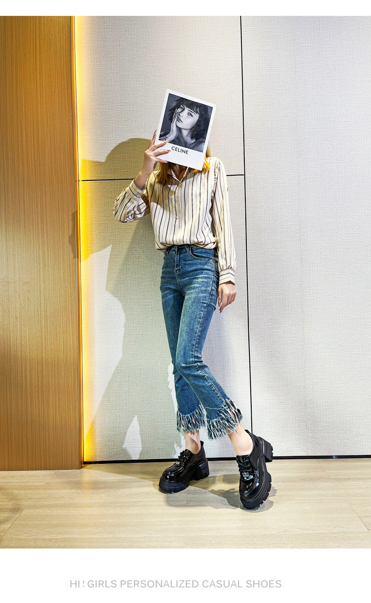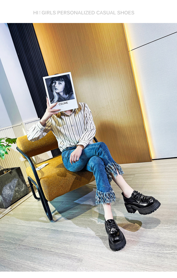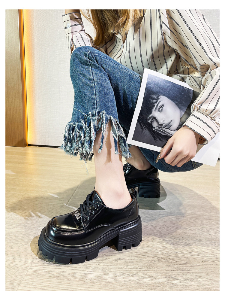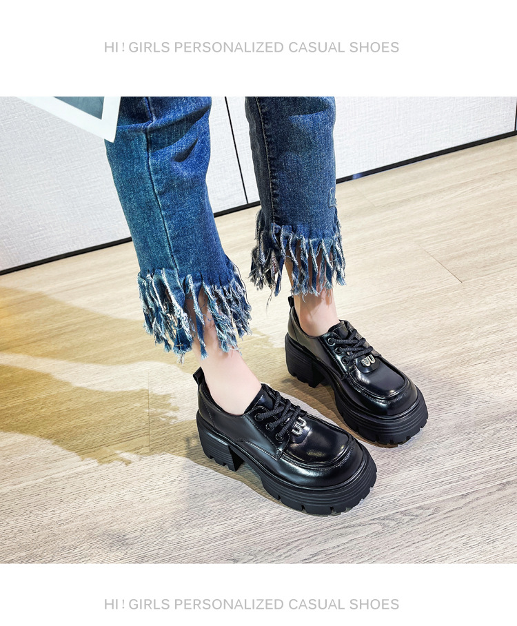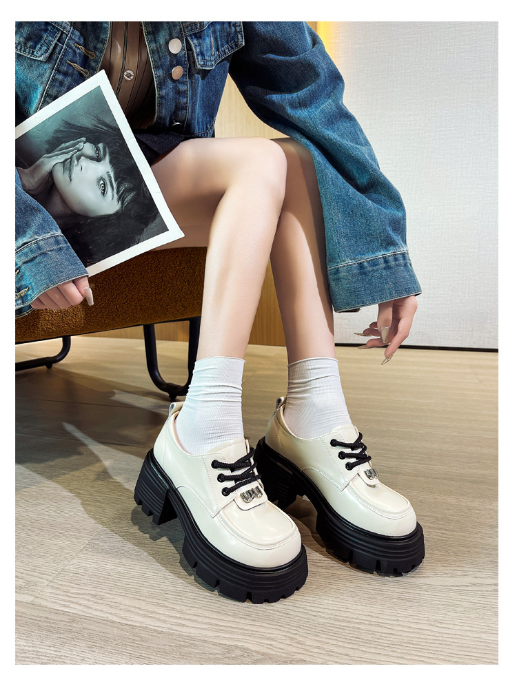 Маленькие кожаные туфли в британском стиле женские зимние и бархатные 2025 новые туфли на высоком каблуке на толстой подошве Lefu кожаные дикие весенние и осенние одиночные туфли