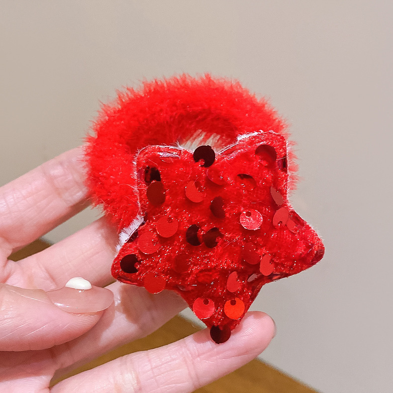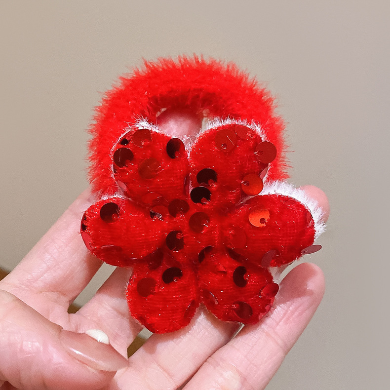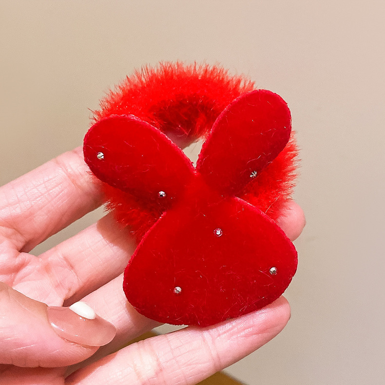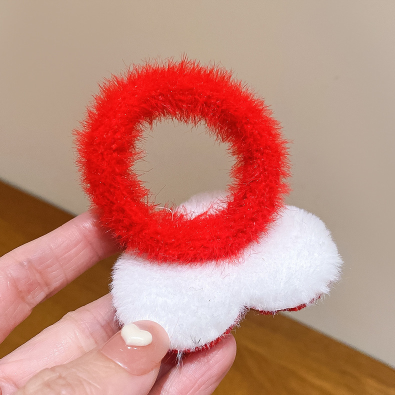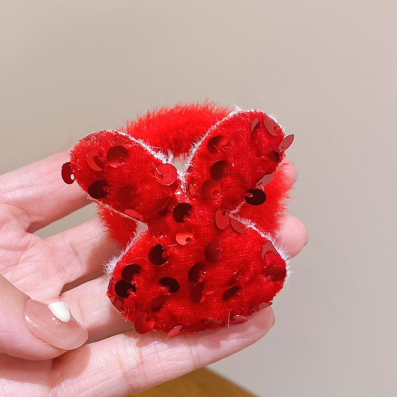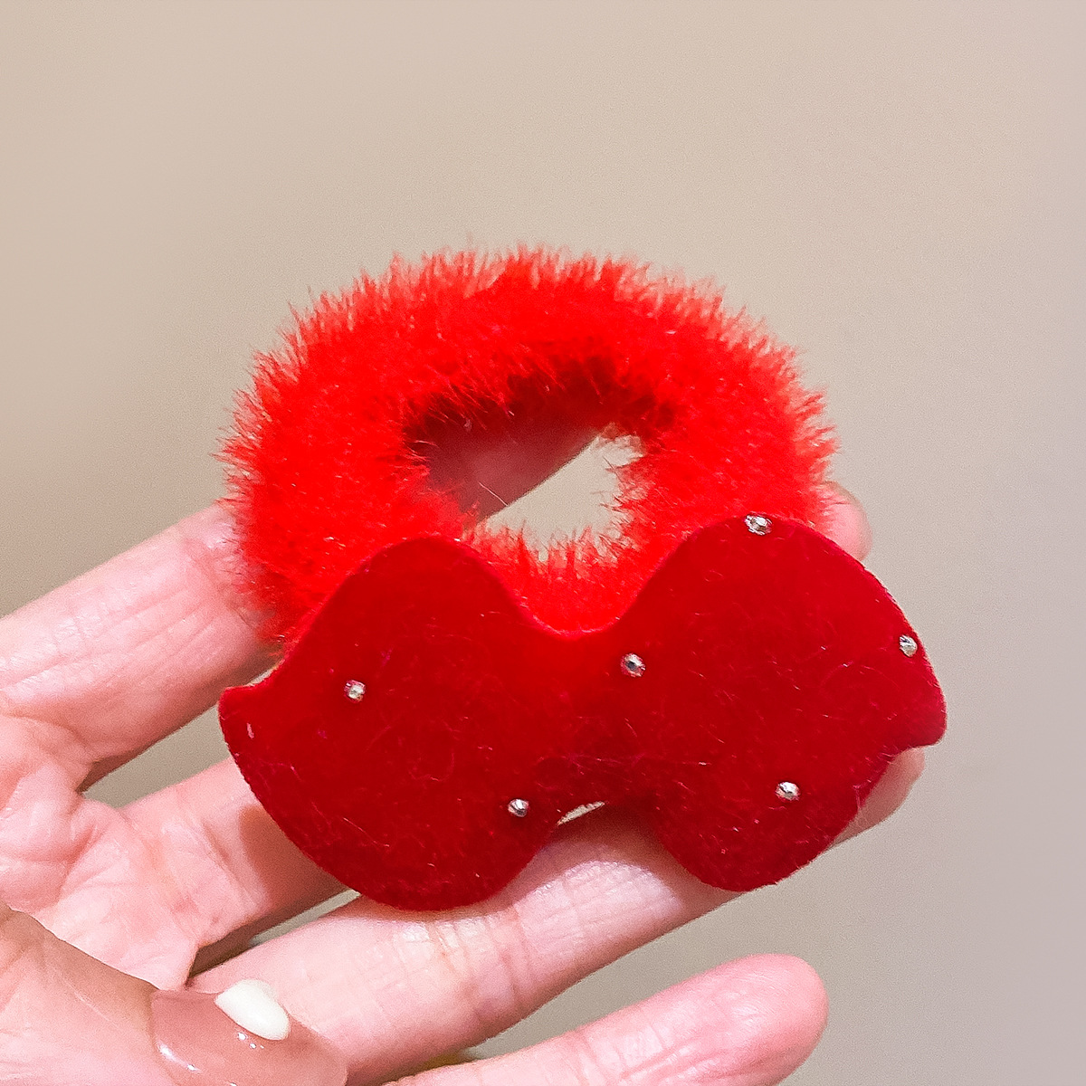 Новогодняя красная бархатная повязка для волос с бантом, Женская плюшевая веревка для волос, высокая эластичная резинка, Детские аксессуары для волос