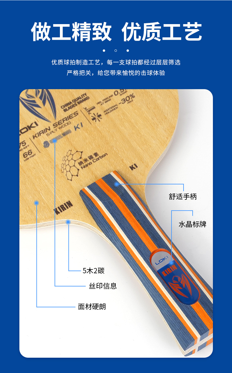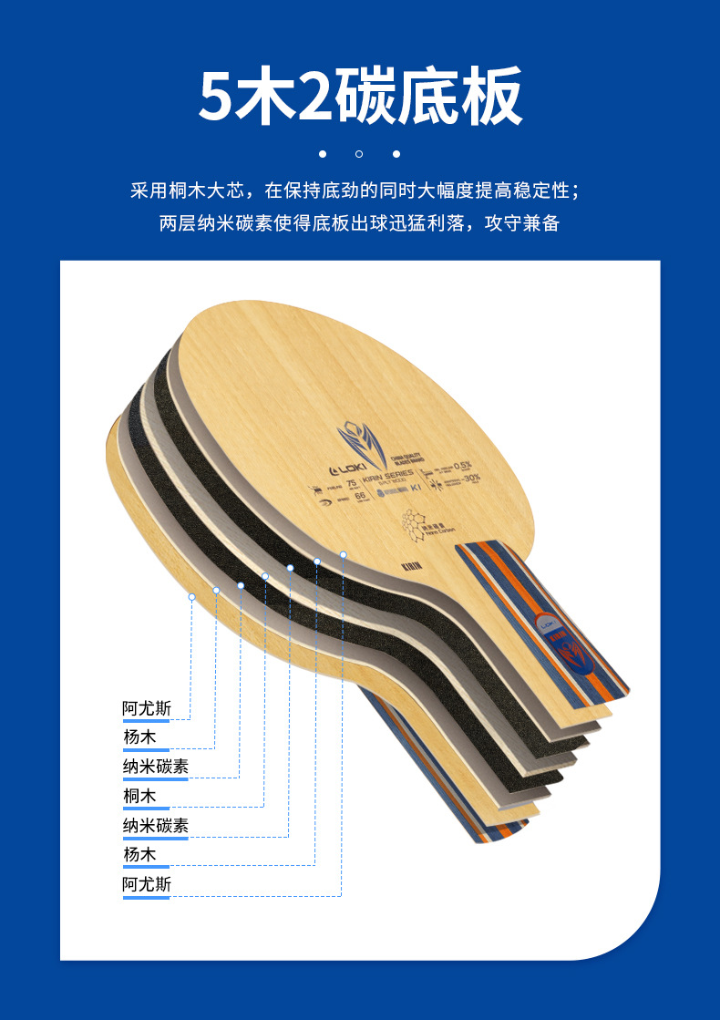 特点:快攻型,出球迅猛,碳素加持保证底板的底劲和性能,新手入门利器。