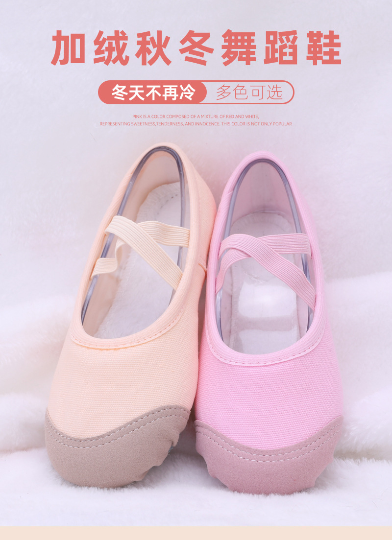 Плюшевые танцевальные туфли без кружева на осень и зиму, утолщенные и теплые детские танцевальные туфли, балетные туфли с кошачьими когтями на мягкой подошве для женщин.