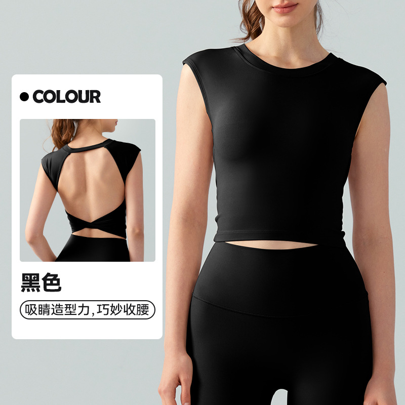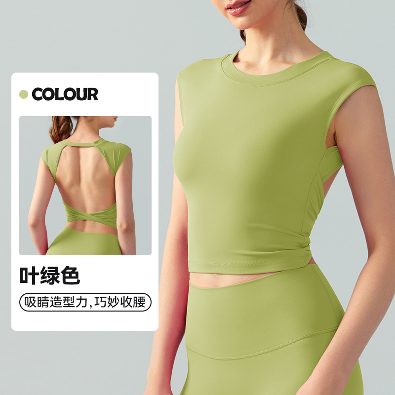 Весенняя и летняя йога с короткими рукавами женский фиксированный нагрудный коврик сексуальная спортивная футболка с открытой спиной