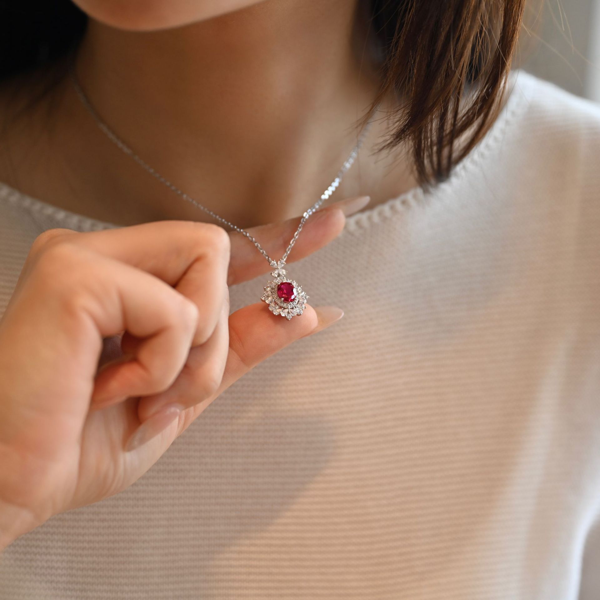 Кулон-ожерелье с выращенным рубином цвета голубиной крови 2 карата, серебро S925, элегантное, высококачественное, с цветным драгоценным камнем, ожерелье с выращенным драгоценным камнем
