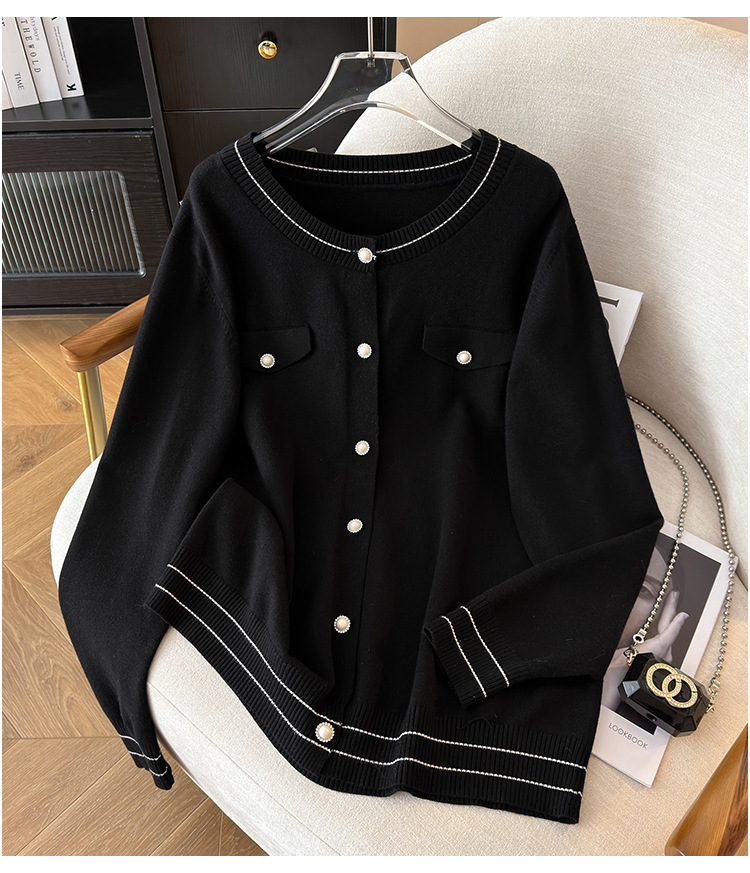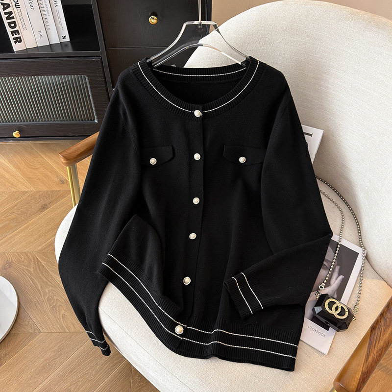 Женская одежда больших размеров, обхват груди для пышных девочек 150/160, Свободный кардиган в стиле Chanel, вязаный 350