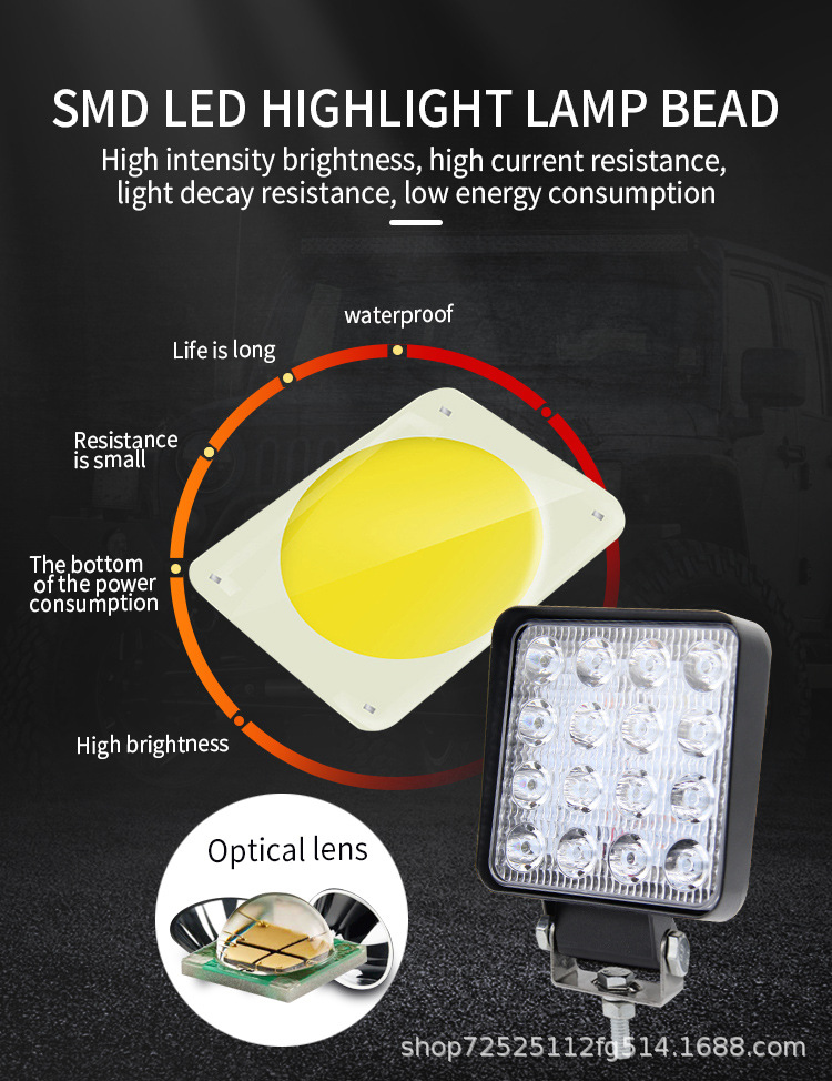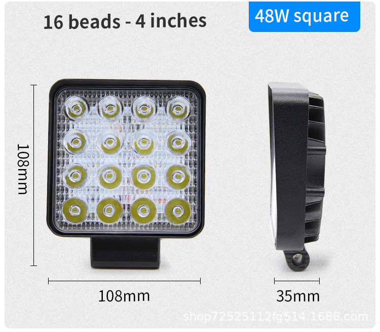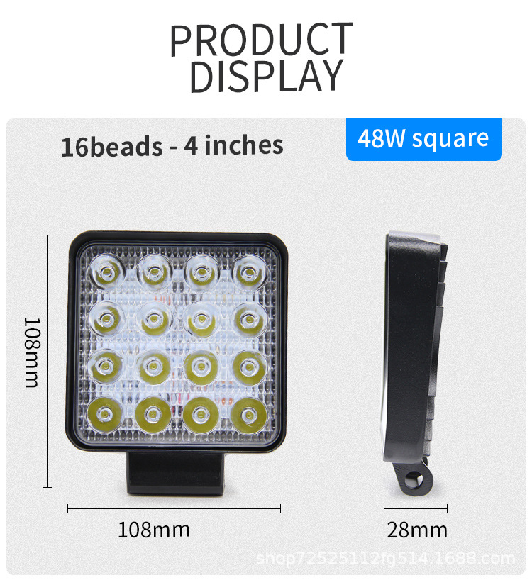 Водонепроницаемый автомобильный светодиодный фонарь дальнего света 48 Вт, квадратный свет 4inch внедорожный фонарь, прожектор для грузовика, автомобильный сельскохозяйственный свет, рабочий свет, супер яркий