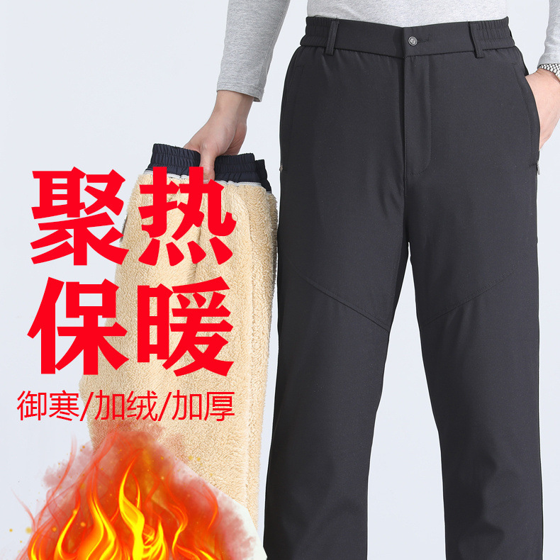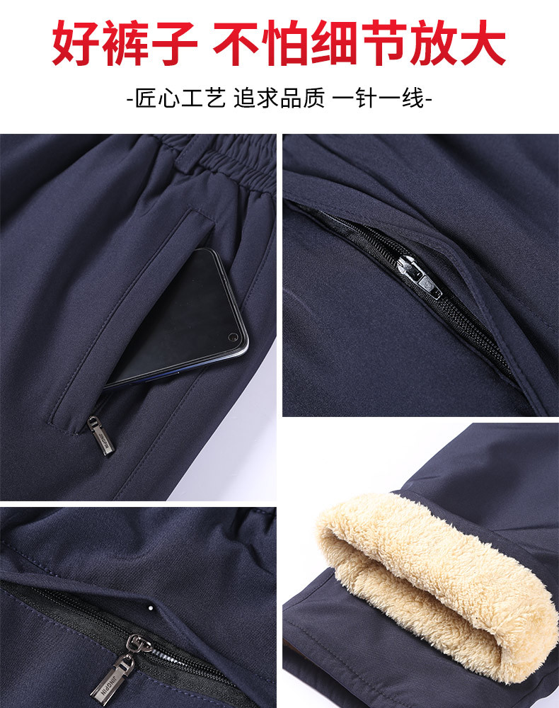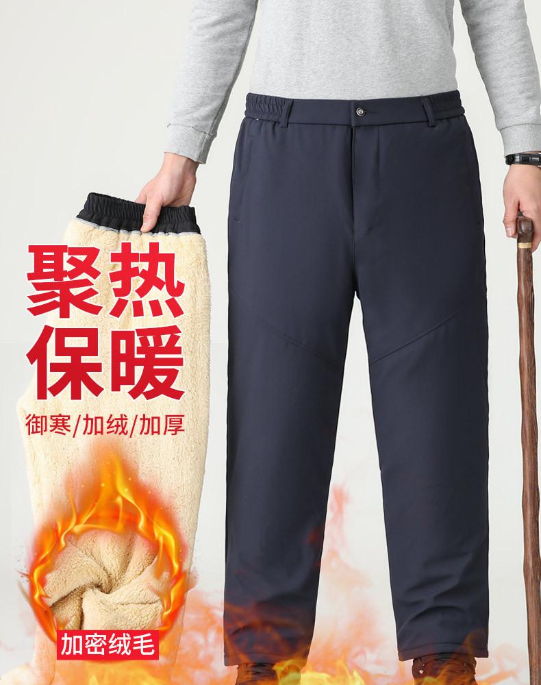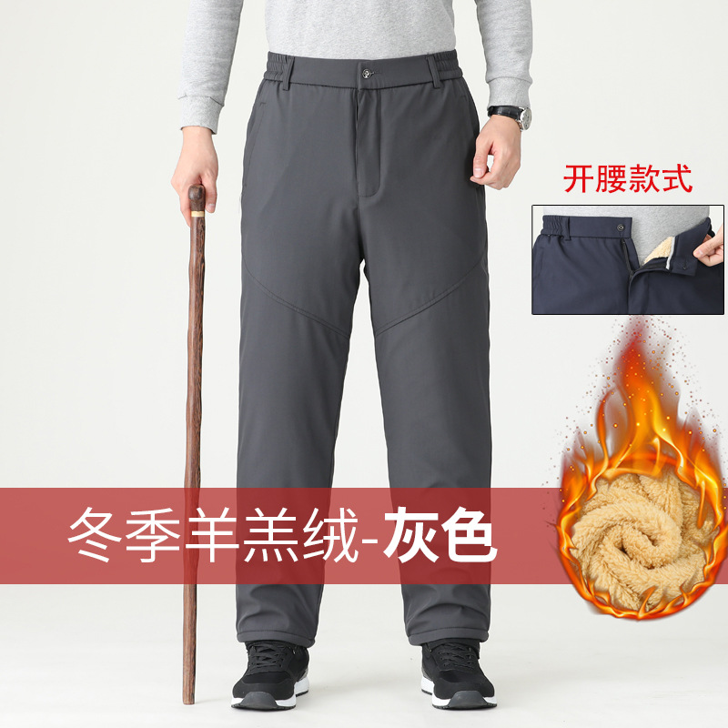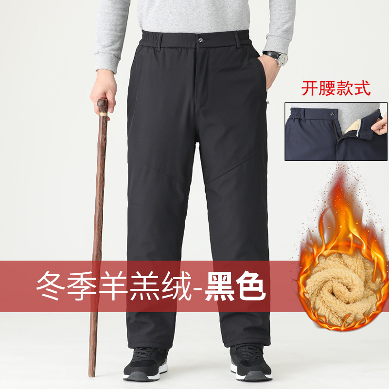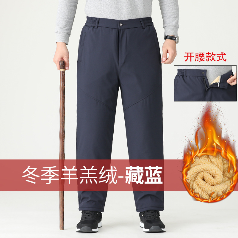 Хлопковые брюки мужчины среднего и пожилого возраста осенью и зимой плюшевые толстые папы дедушки свободные брюки снаружи теплые хлопчатобумажные брюки мужчины