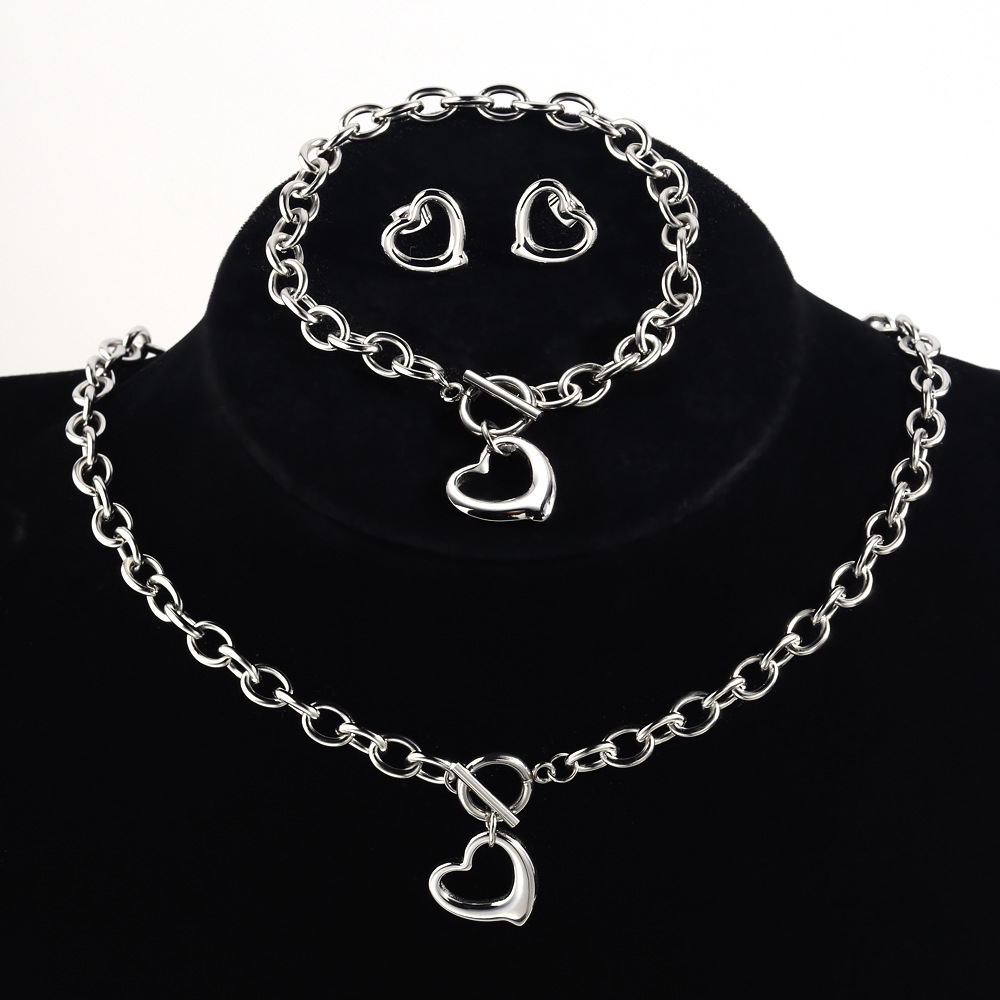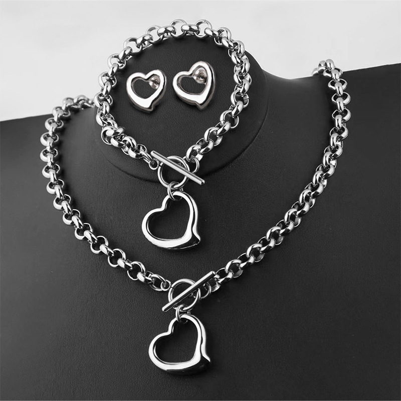 Титановая сталь не выцветает, простое высококачественное ожерелье, женское модное колье из нержавеющей стали, Любовное ожерелье, браслет, серьги, комплект из трех предметов, оптовая продажа