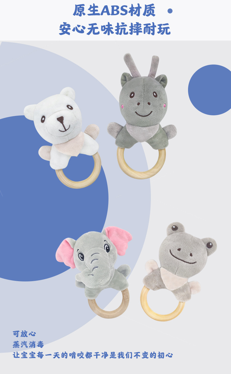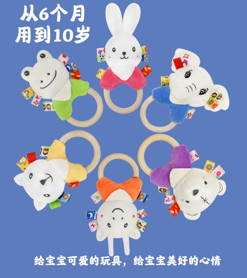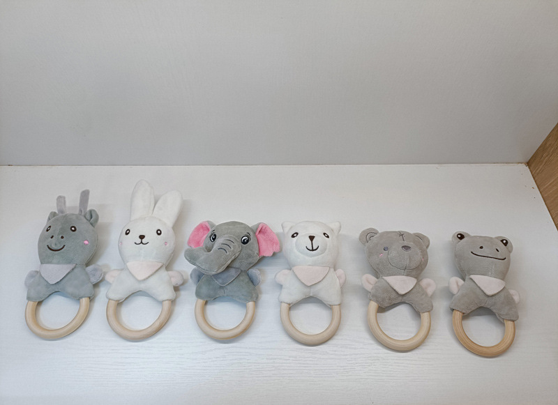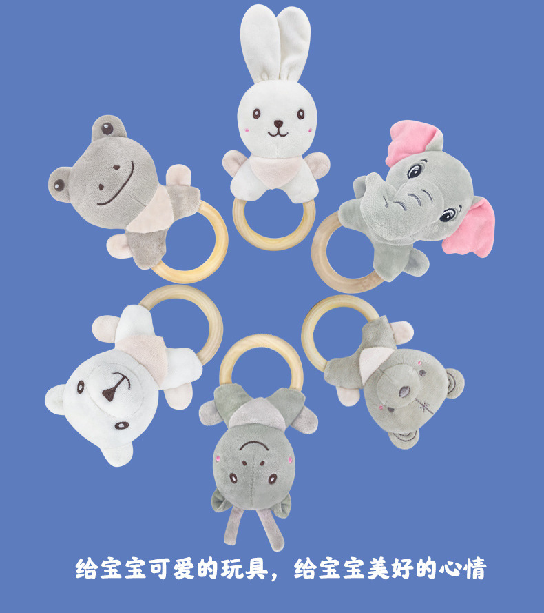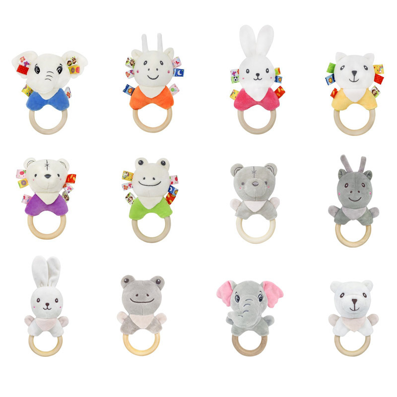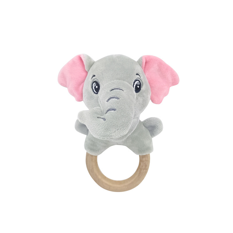 Милый мультяшный слон белый кролик олень белый медведь лягушка ручное заводное деревянное кольцо развивающая ручная погремушка Детская плюшевая игрушка