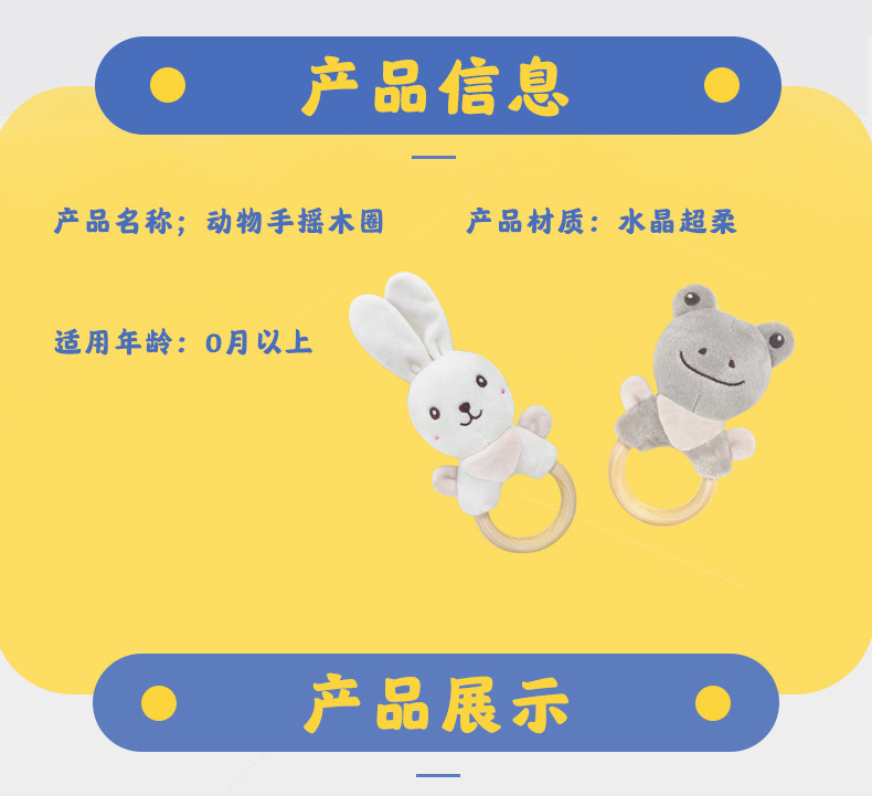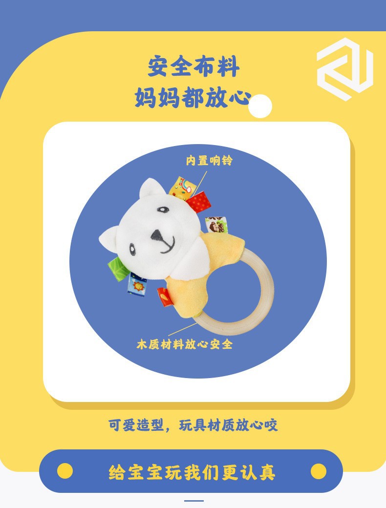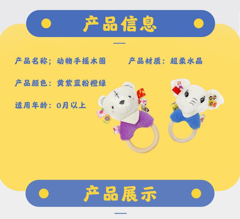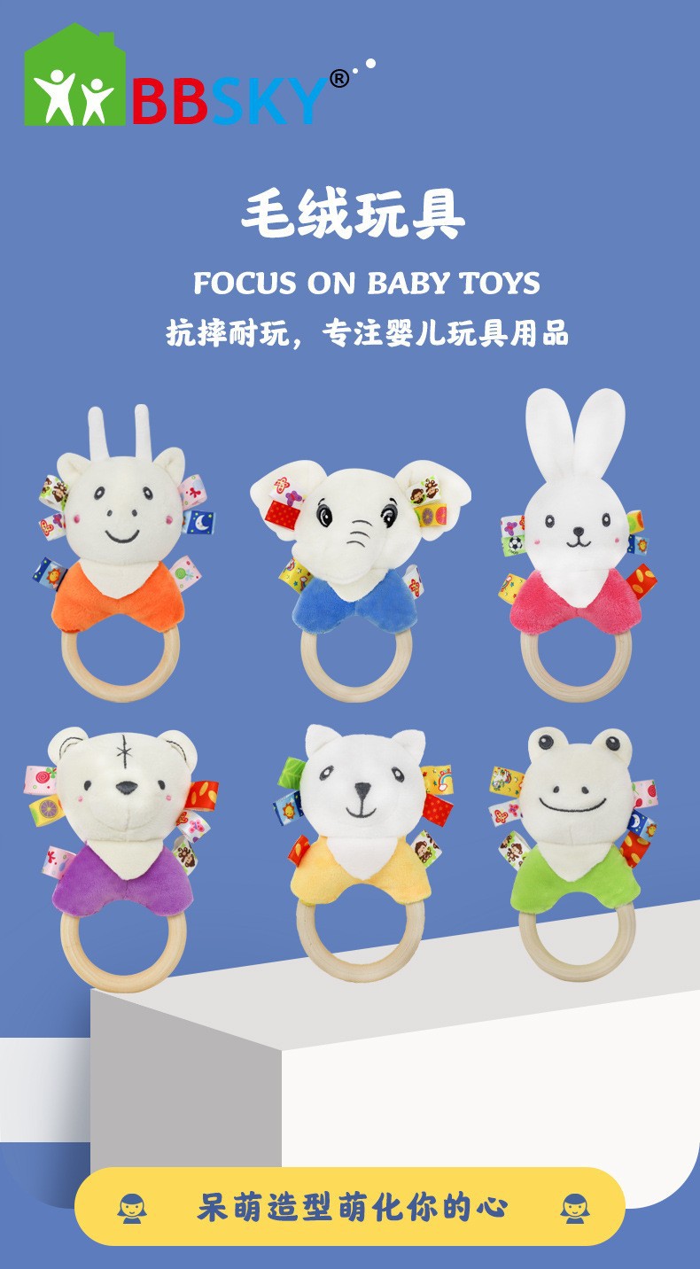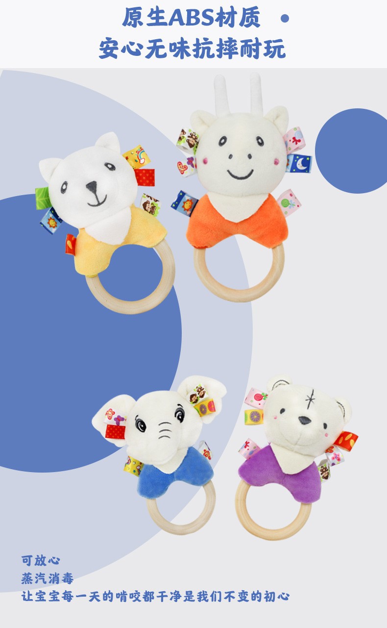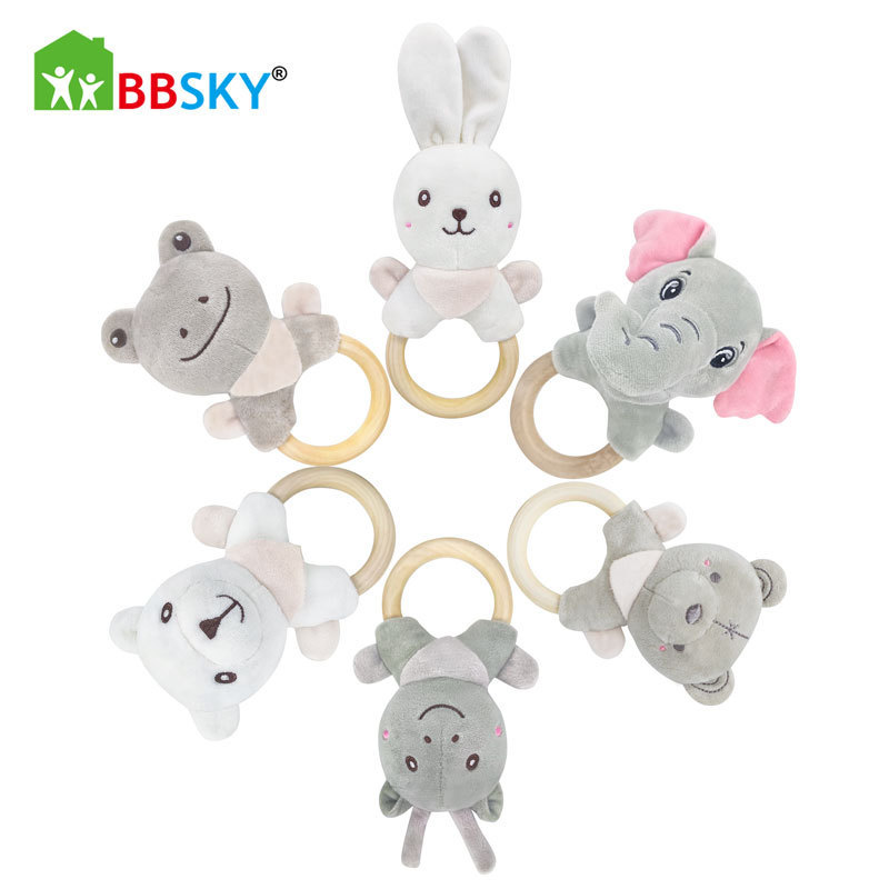 Милый мультяшный слон белый кролик олень белый медведь лягушка ручное заводное деревянное кольцо развивающая ручная погремушка Детская плюшевая игрушка