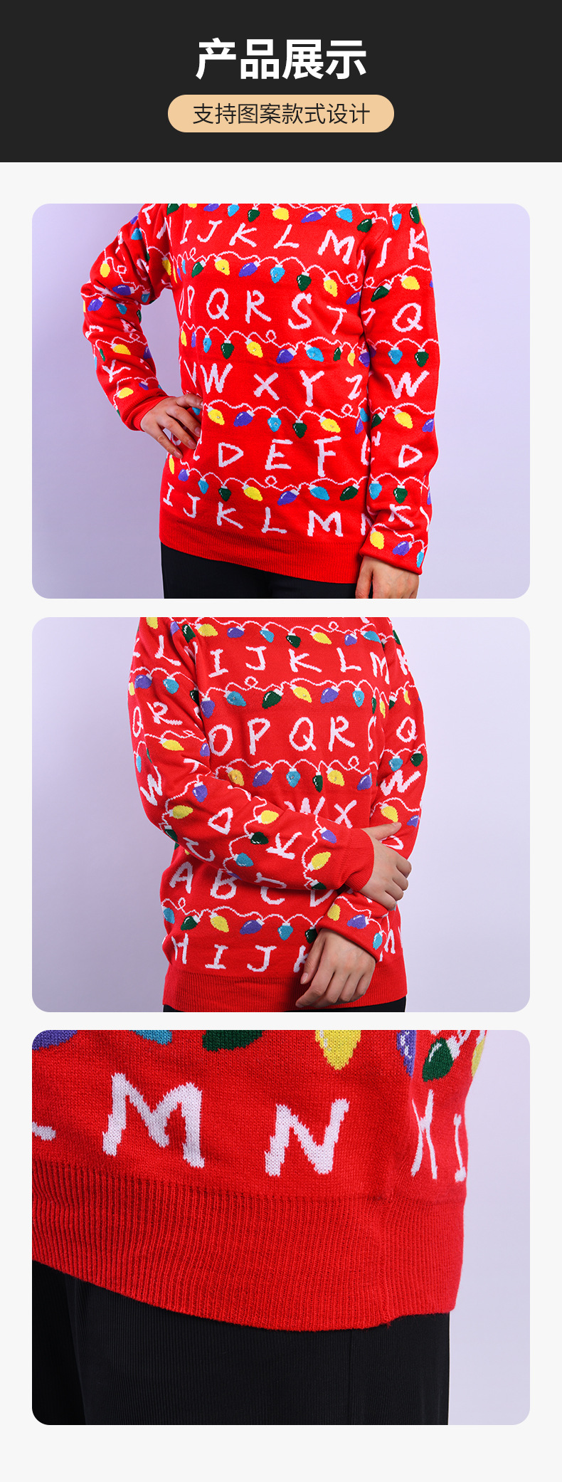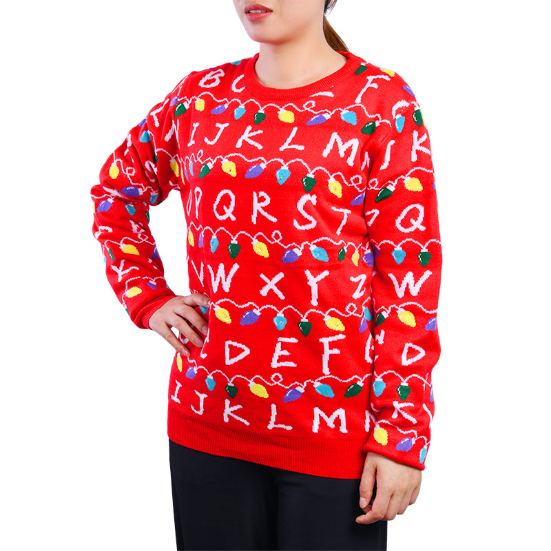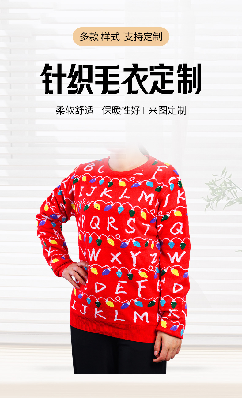 Свитер с круглым вырезом по индивидуальному заказу для зимы, утолщенный для осени и зимы, подходит для ношения внутри или снаружи, обработка небольших партий, красный вязаный рождественский свитер.