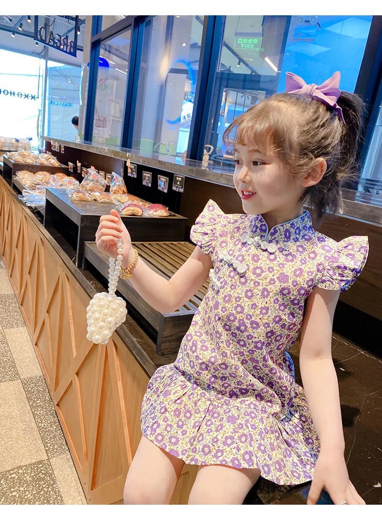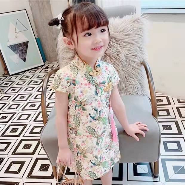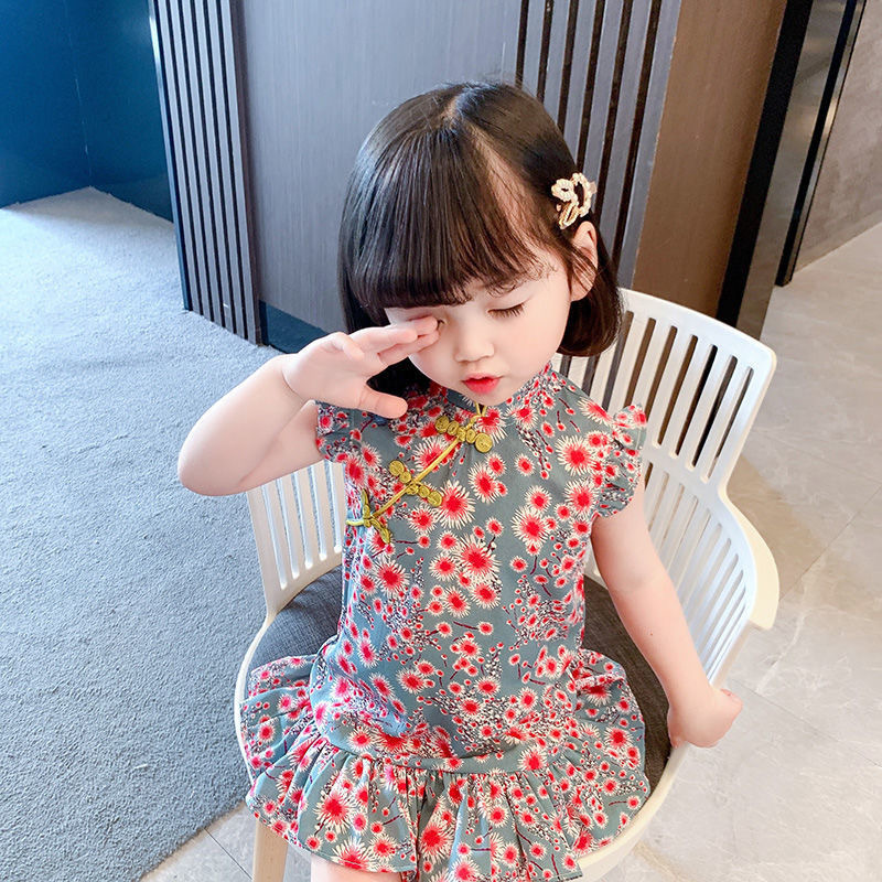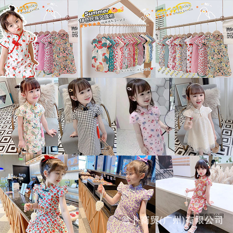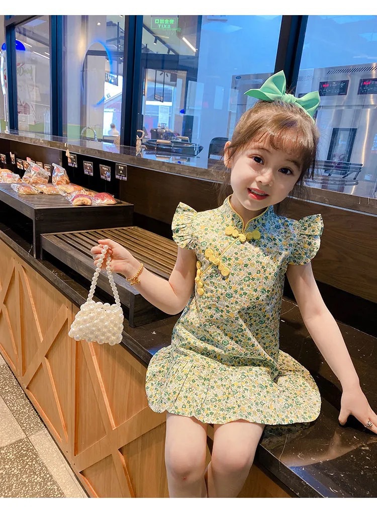 Летнее детское платье-Чонсам в китайском стиле в стиле ретро ханьфу в западном стиле, детская юбка, трансграничная цельная доставка