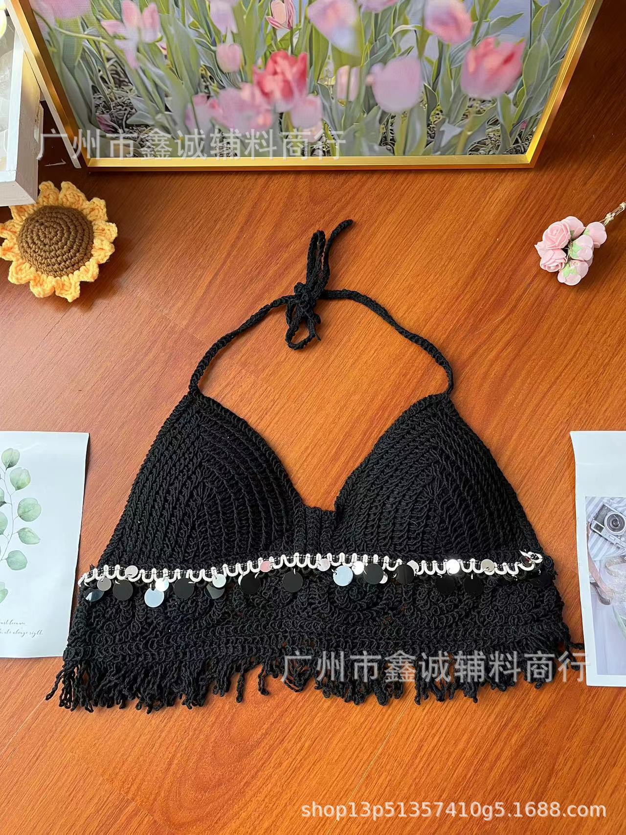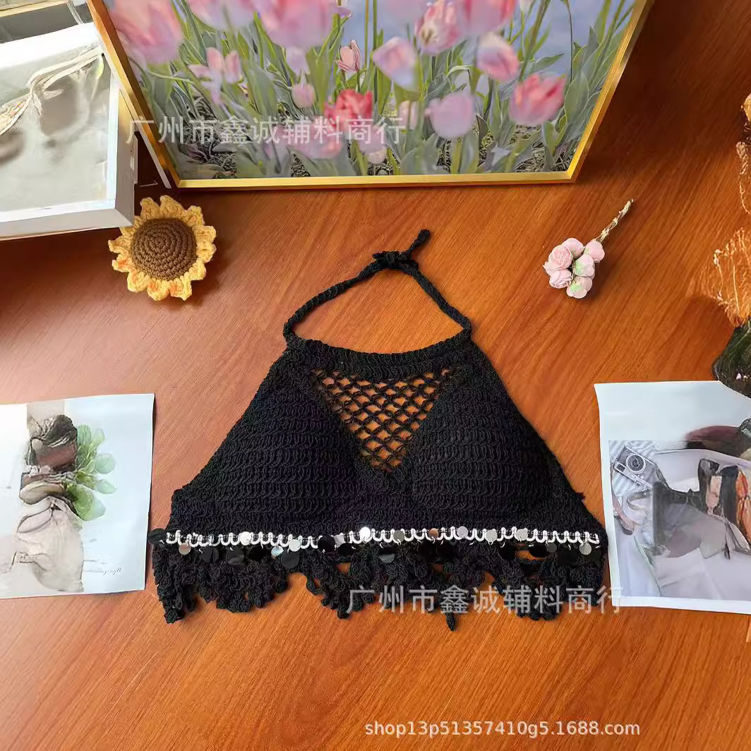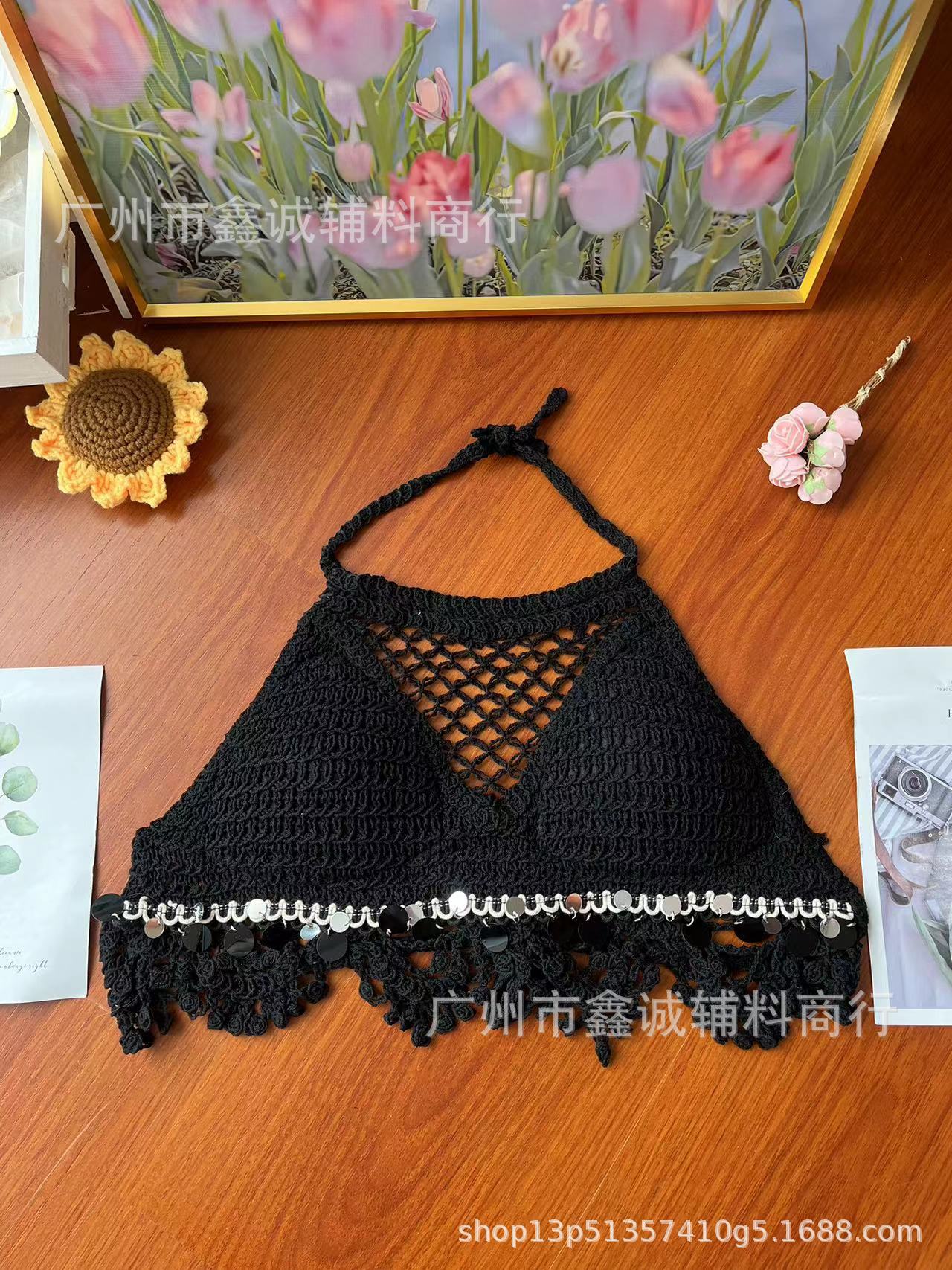 Осенняя модная сексуальная горячая камзол для девочек, женская новая Приморская пляжная полая майка с блестками и ремешком на шее