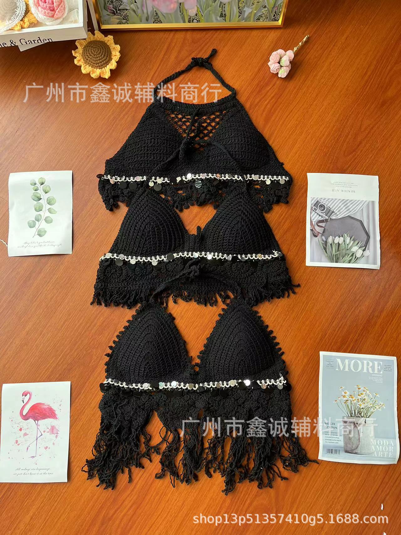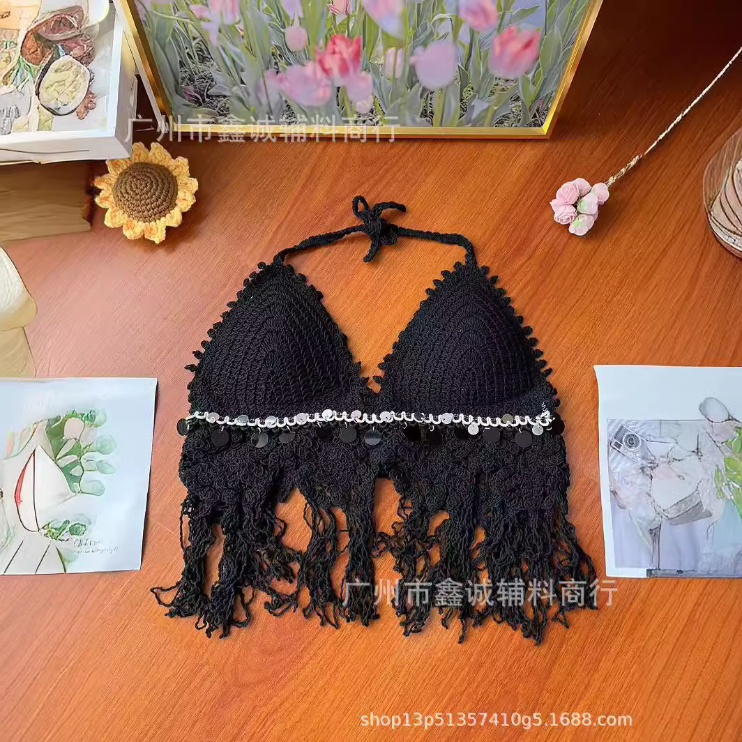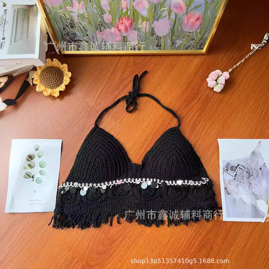 Осенняя модная сексуальная горячая камзол для девочек, женская новая Приморская пляжная полая майка с блестками и ремешком на шее