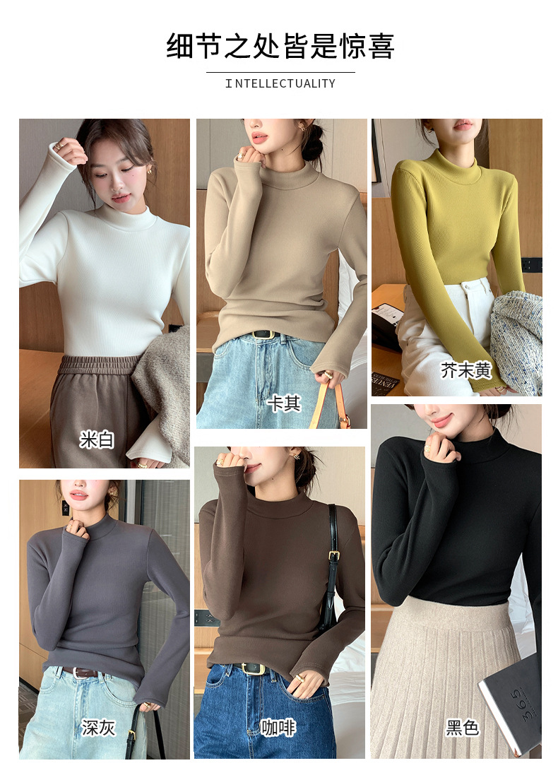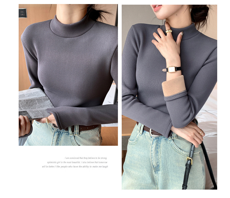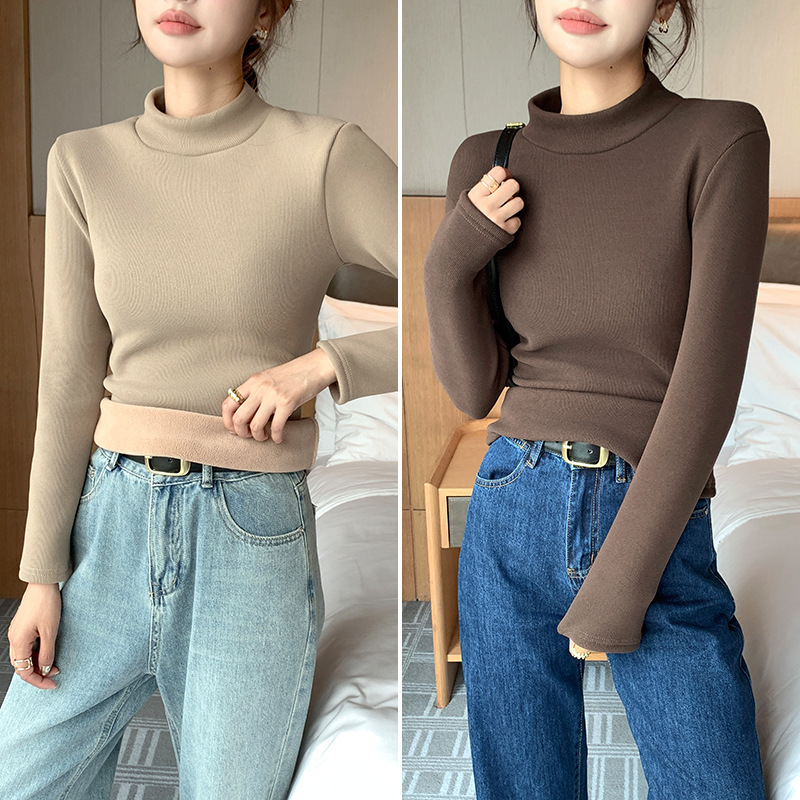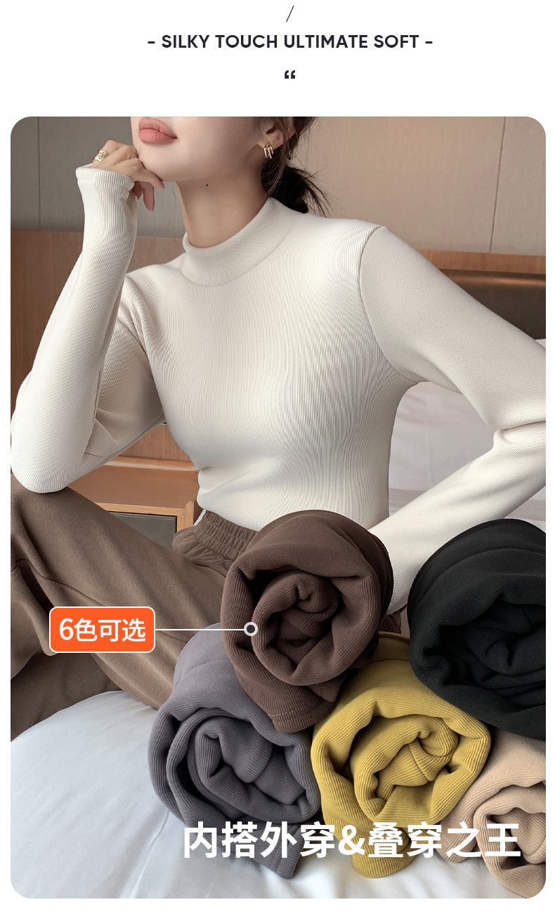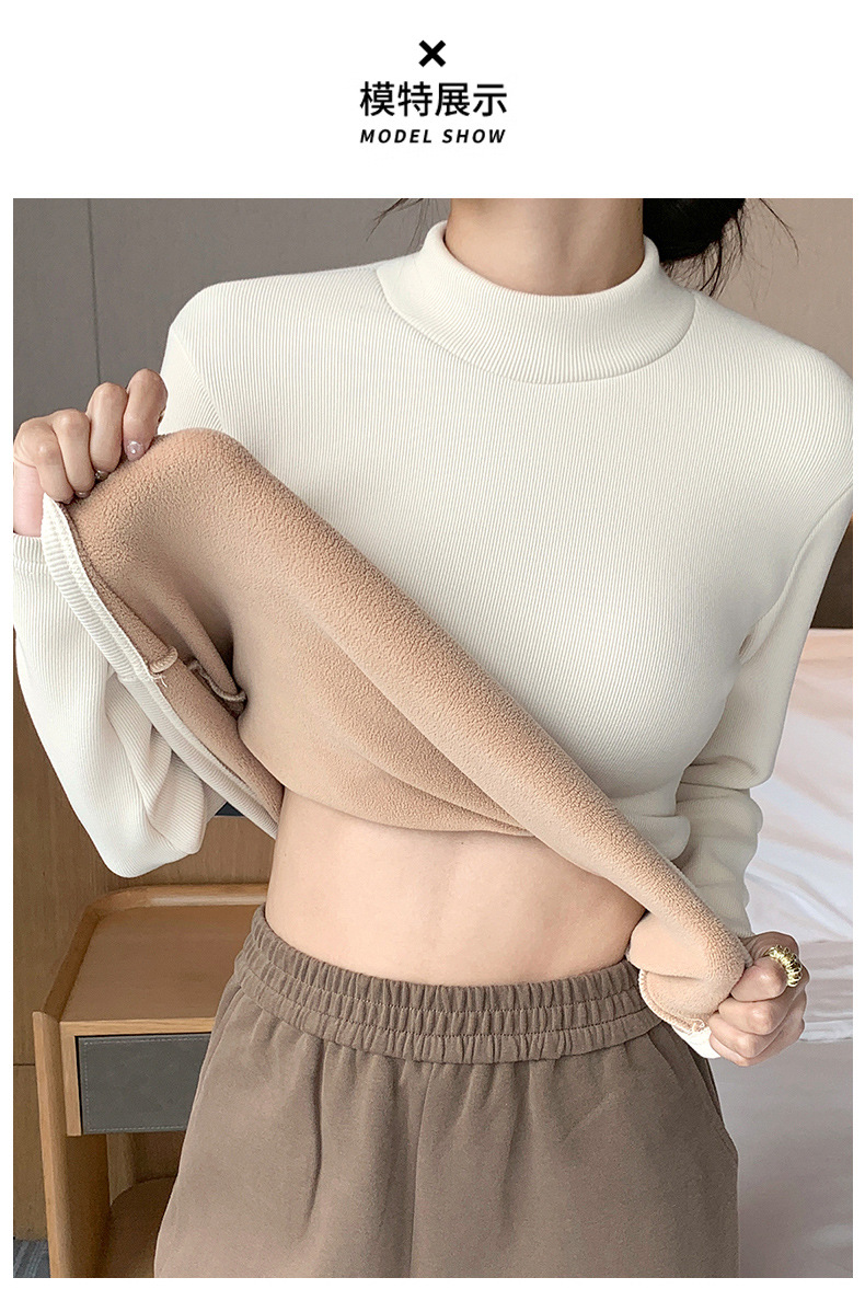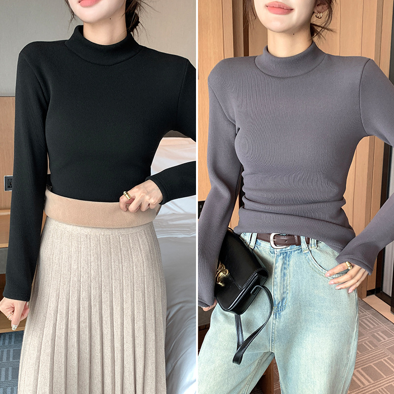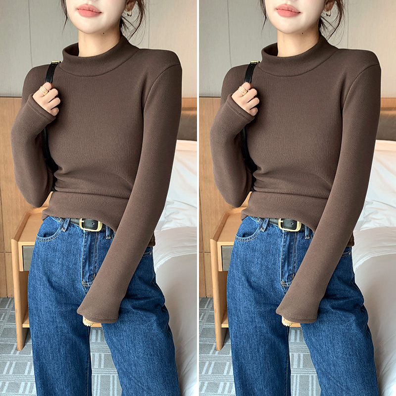 Комбинированная внутренняя водолазка с высоким воротом, облегающая трикотажная нижняя рубашка, теплый топ на флисовой подкладке, Женская осенне-зимняя маленькая Водолазка с длинным рукавом