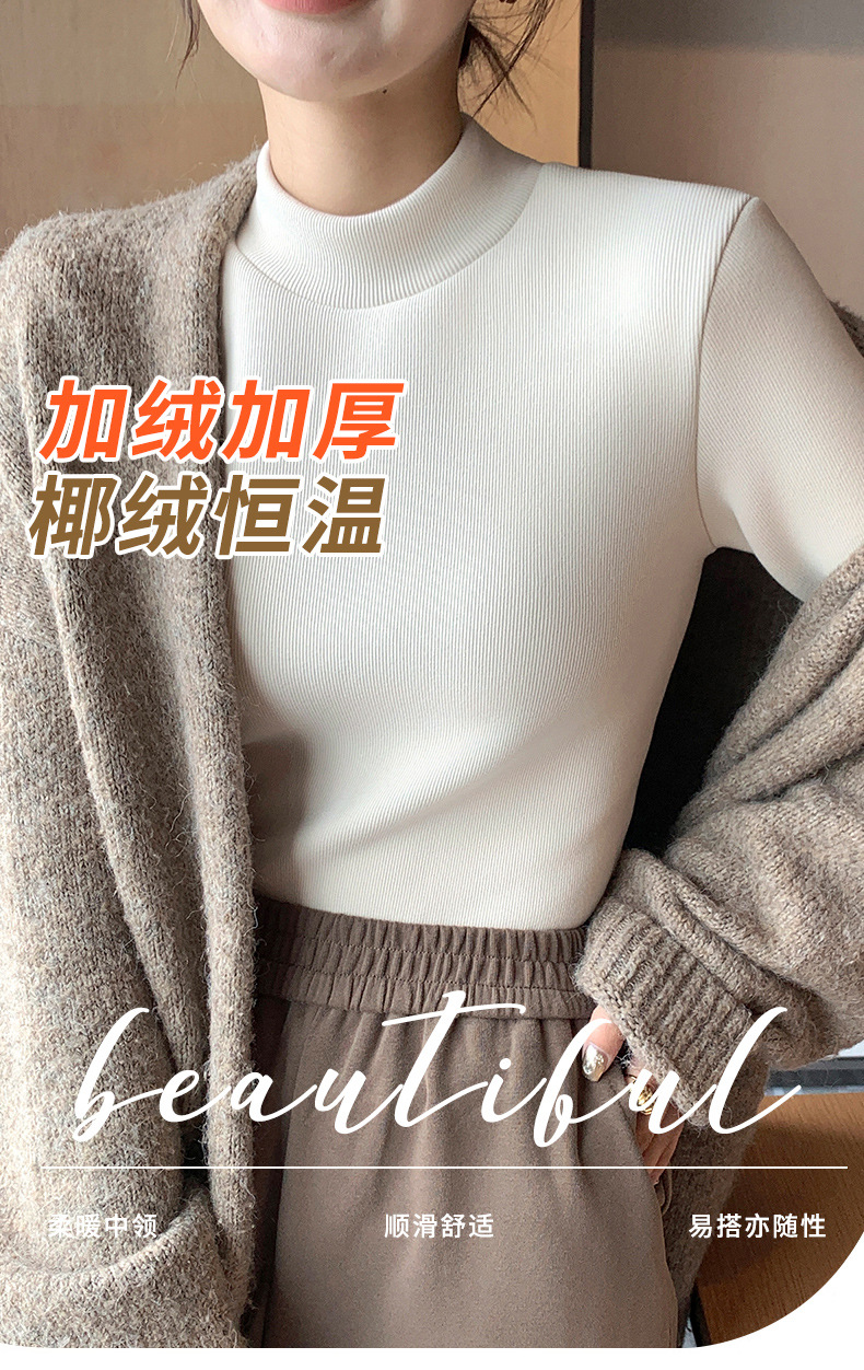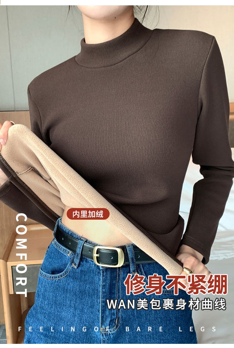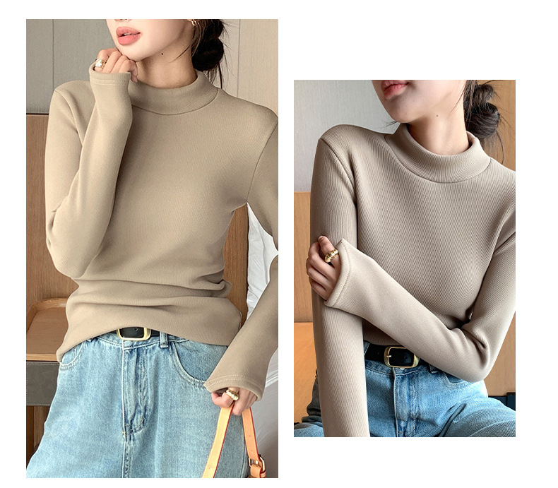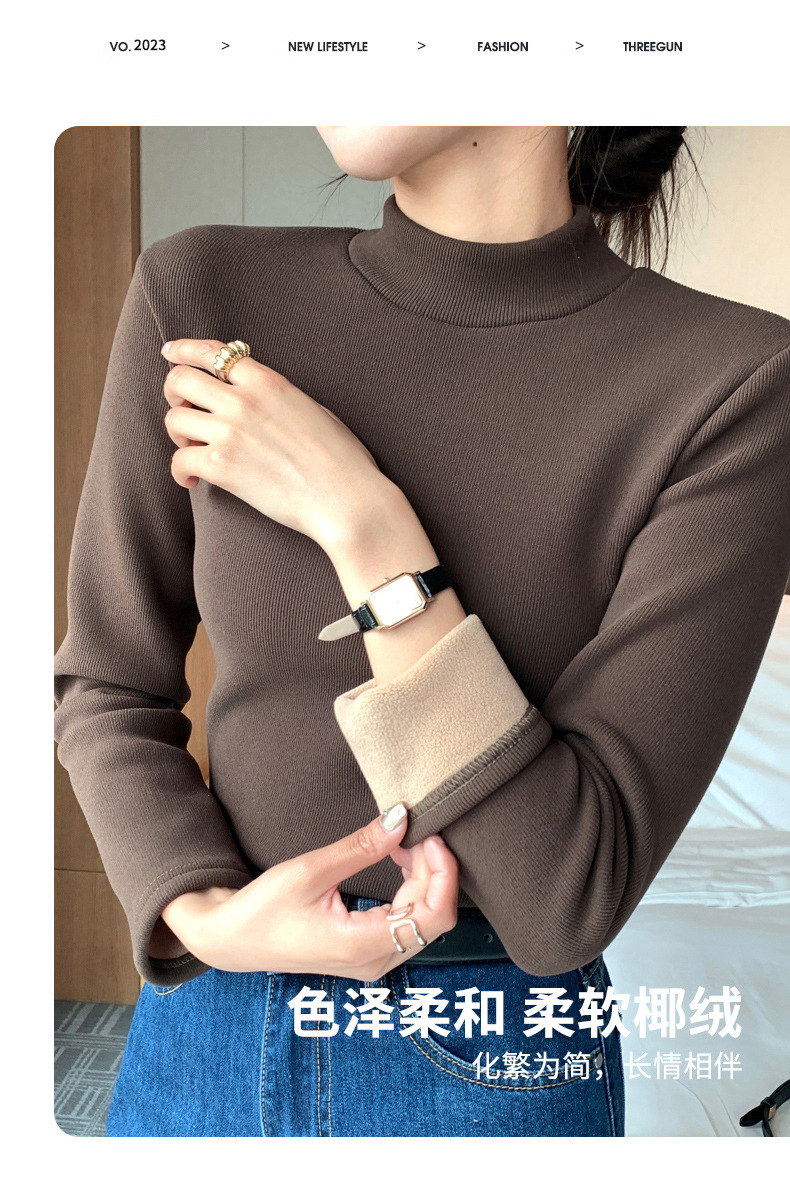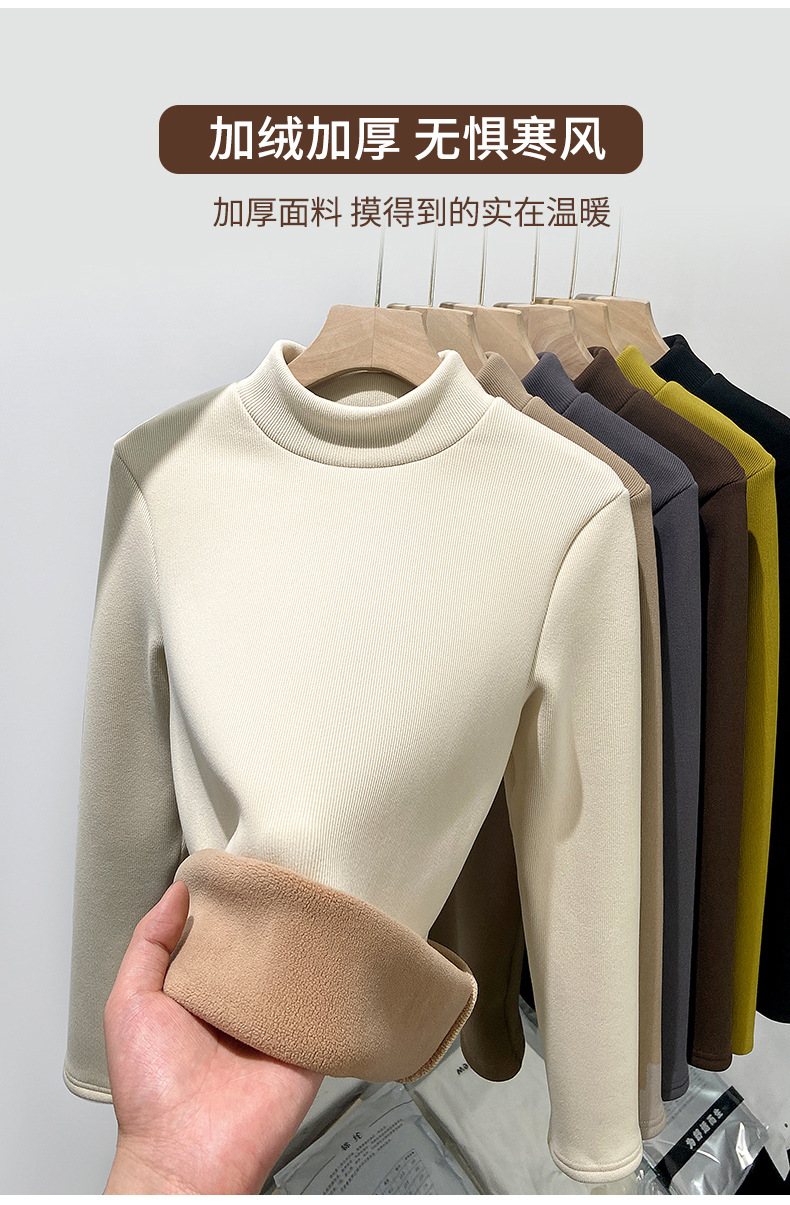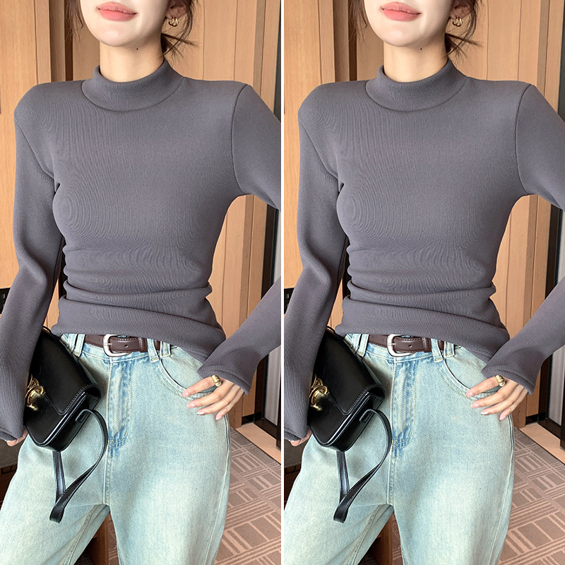 Комбинированная внутренняя водолазка с высоким воротом, облегающая трикотажная нижняя рубашка, теплый топ на флисовой подкладке, Женская осенне-зимняя маленькая Водолазка с длинным рукавом