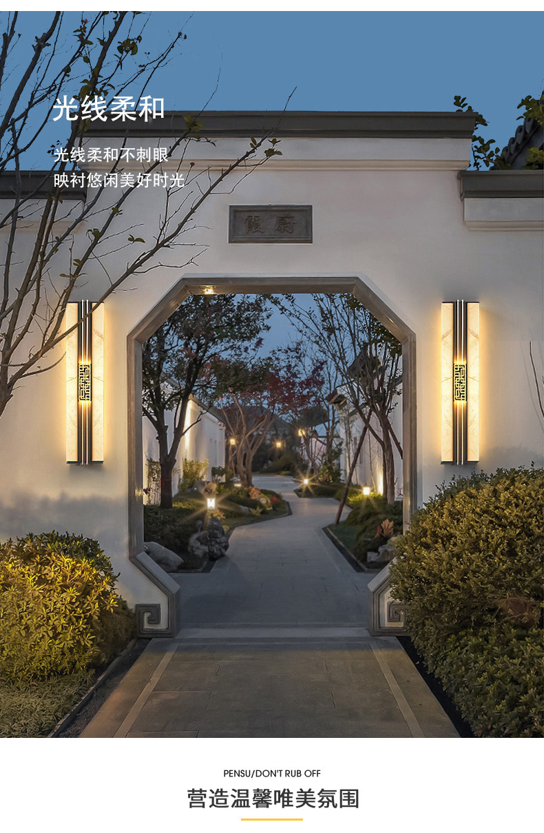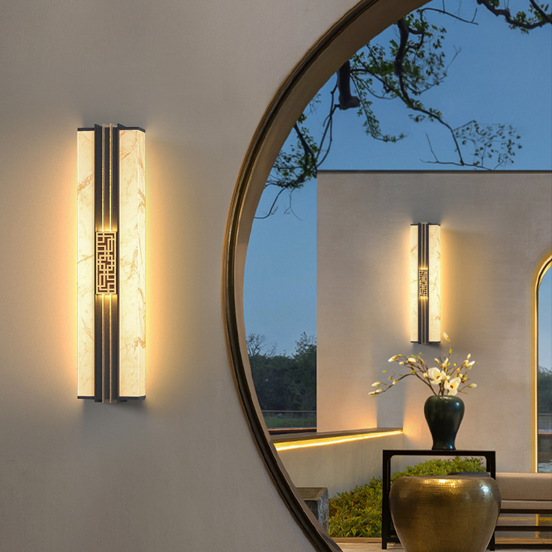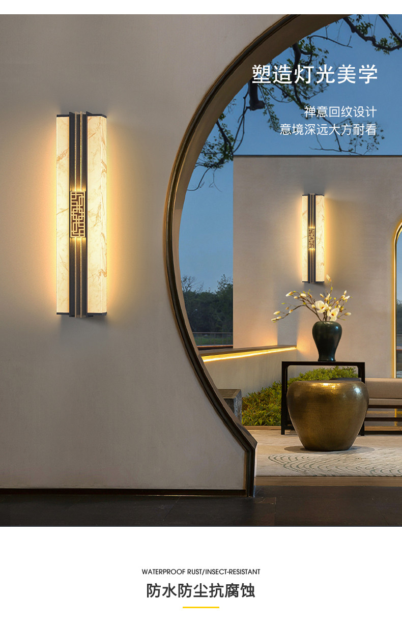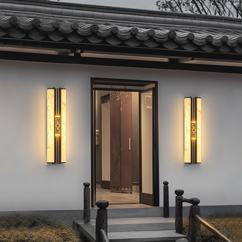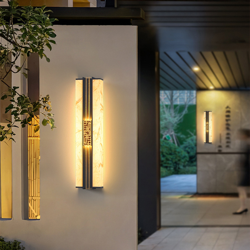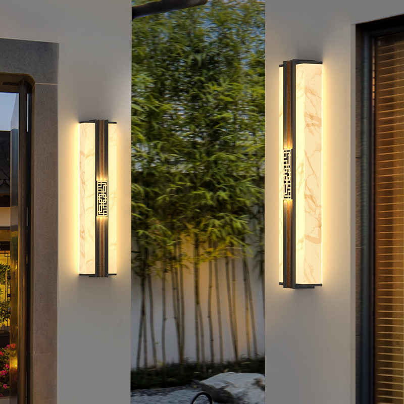 Солнечные настенные светильники для вилл, новые настенные светильники в китайском стиле с имитацией мрамора для обеих сторон ворот, солнечные светильники для двора на столбы ворот