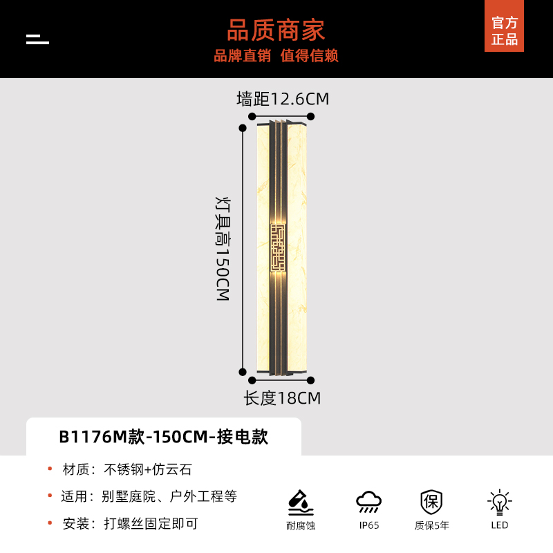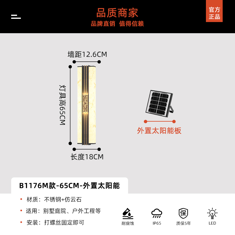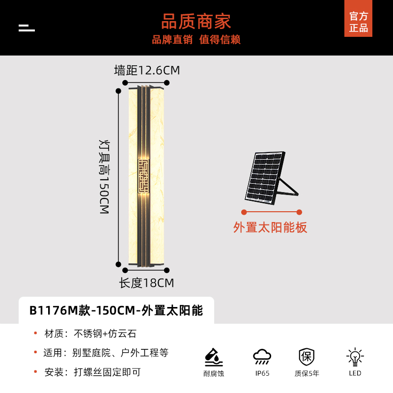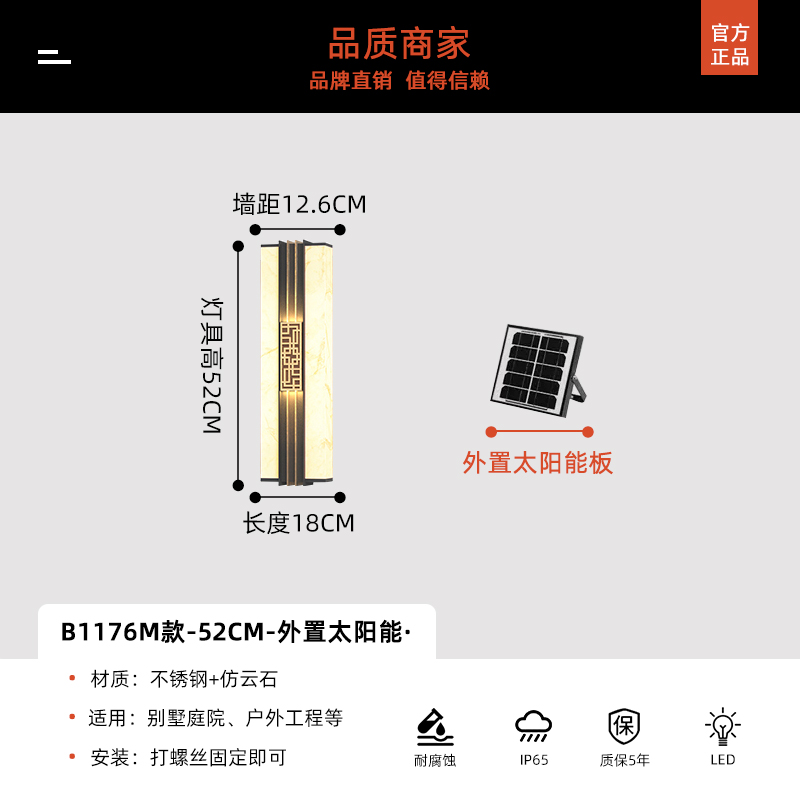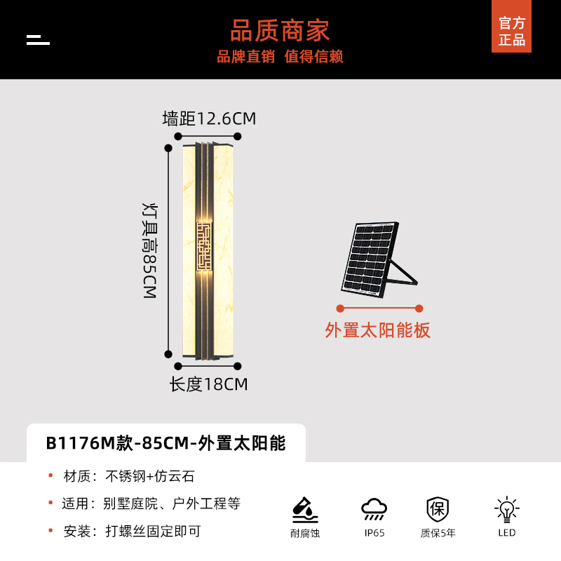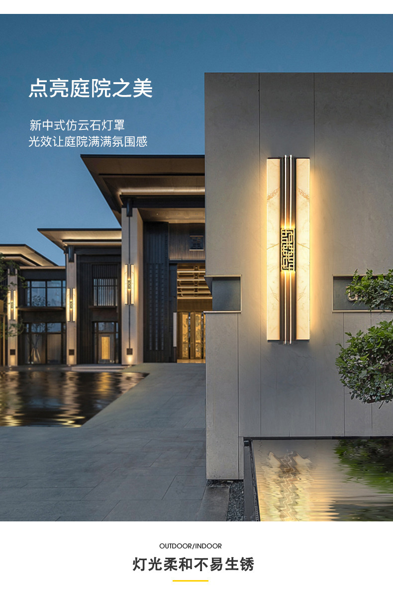 Солнечные настенные светильники для вилл, новые настенные светильники в китайском стиле с имитацией мрамора для обеих сторон ворот, солнечные светильники для двора на столбы ворот