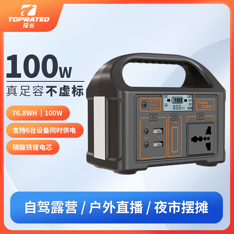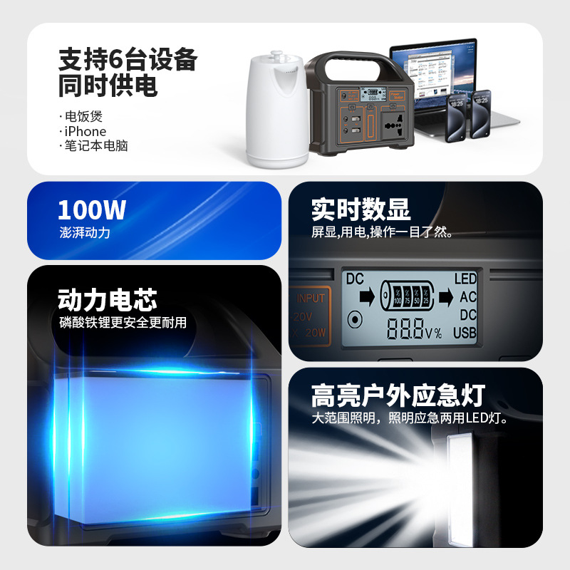 跨境轻体积便携式100W露营直播摆摊磷酸铁锂应急户外储能移动电源