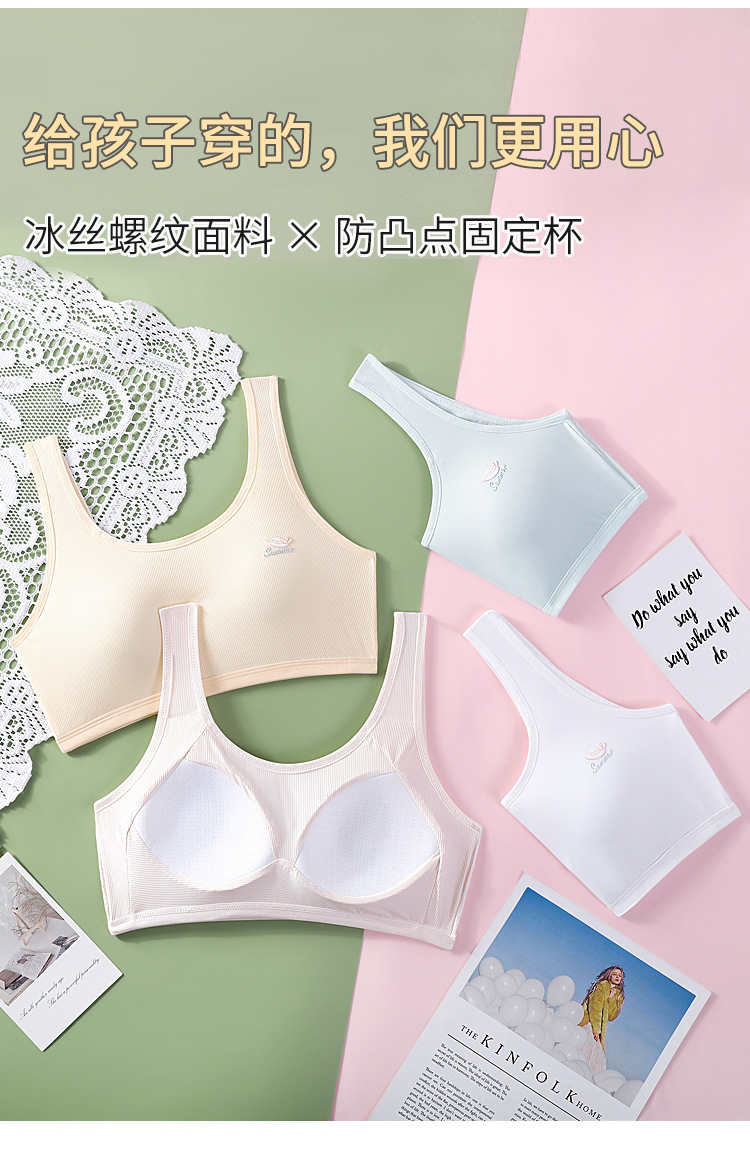 Бюстгальтер для девочек из ледяного шелка, развивающий бюстгальтер для младших школьников, нижнее белье с фиксированными чашками, Женский Топ старшего возраста, Подростковый Топ без рукавов, летний