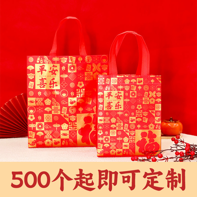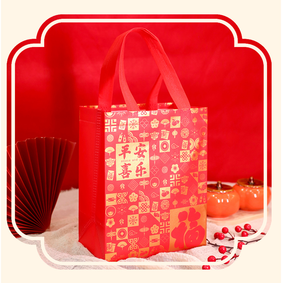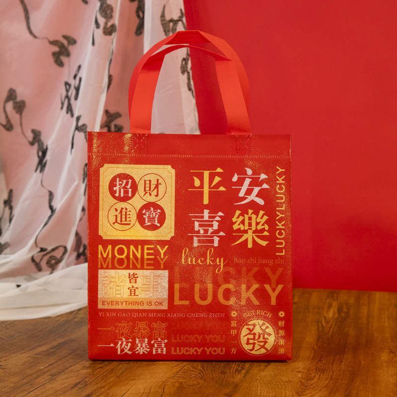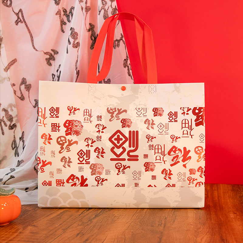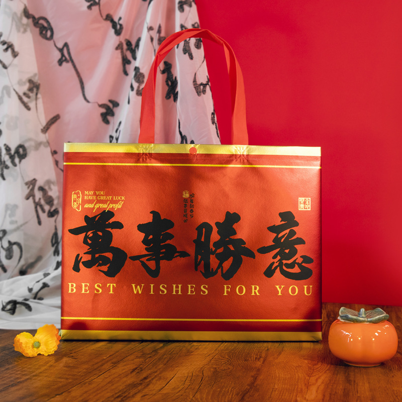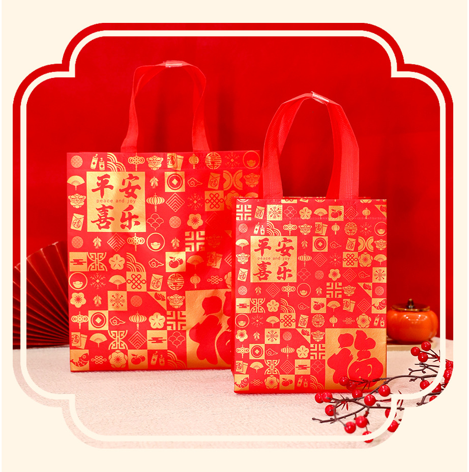 Нетканые подарочные пакеты, готовые праздничные красные свадебные подарочные пакеты с символикой счастья, пакеты на день рождения с символикой долголетия, с возможностью нанесения логотипа, от производителя