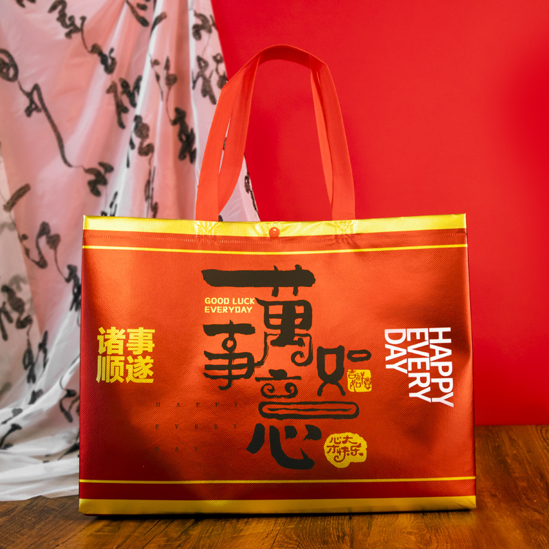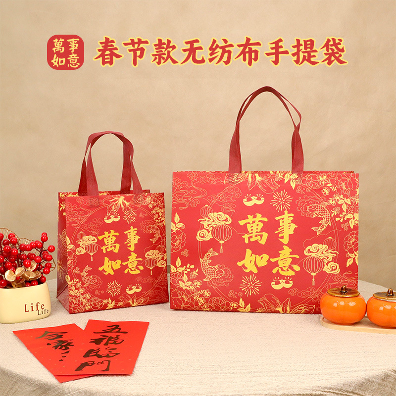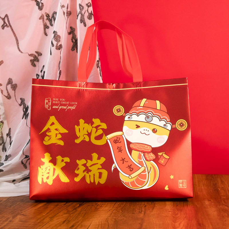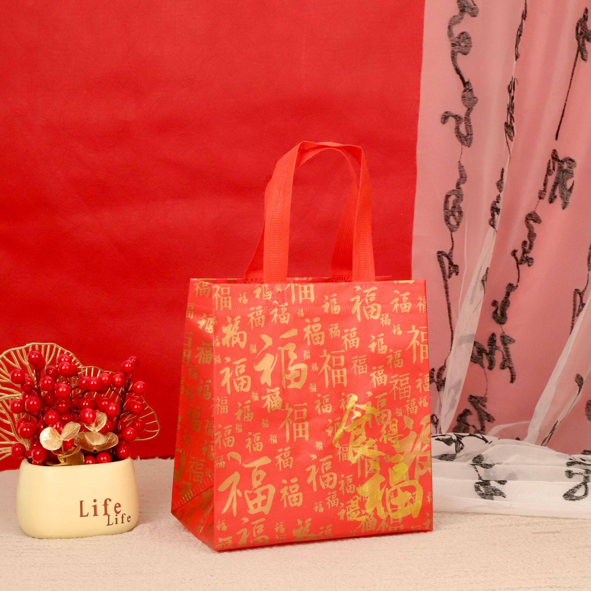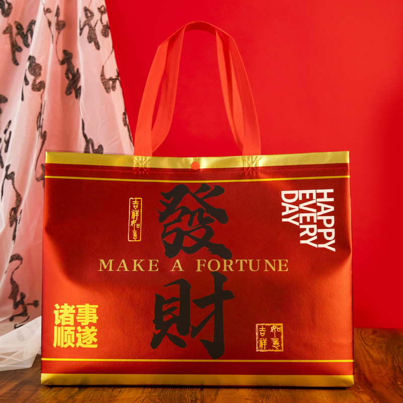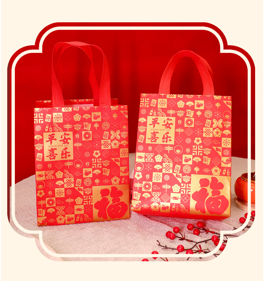 Нетканые подарочные пакеты, готовые праздничные красные свадебные подарочные пакеты с символикой счастья, пакеты на день рождения с символикой долголетия, с возможностью нанесения логотипа, от производителя