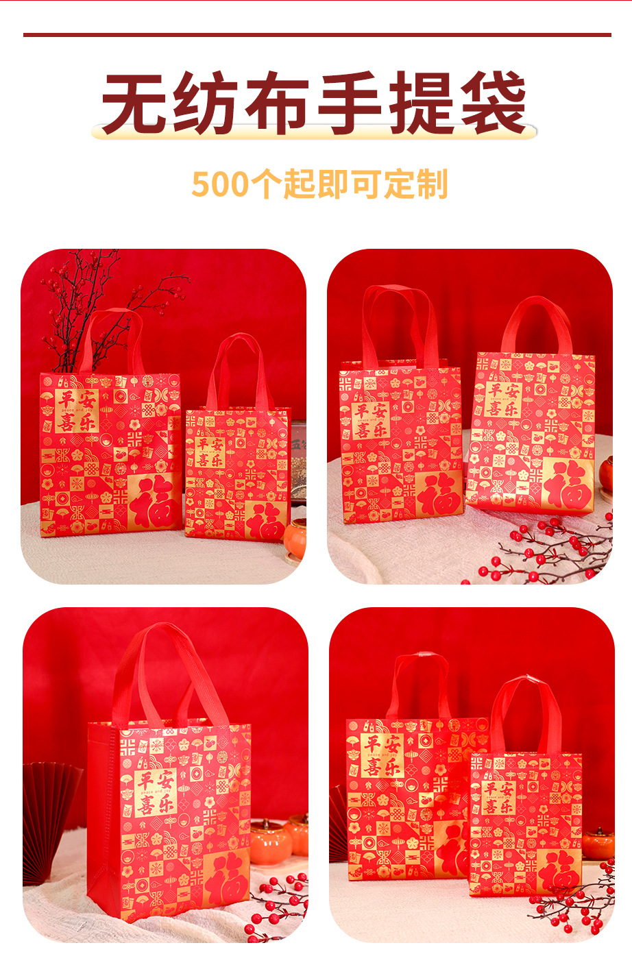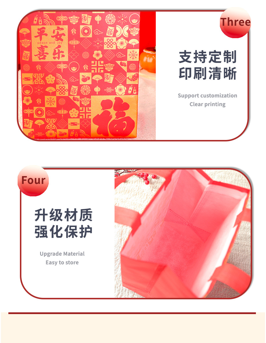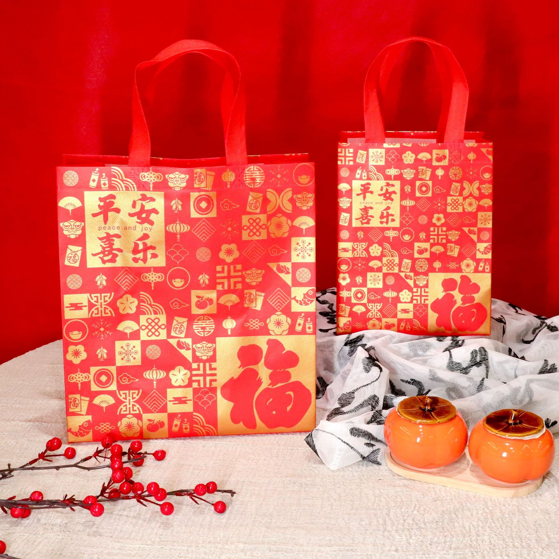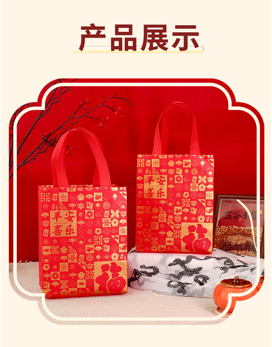 Нетканые подарочные пакеты, готовые праздничные красные свадебные подарочные пакеты с символикой счастья, пакеты на день рождения с символикой долголетия, с возможностью нанесения логотипа, от производителя
