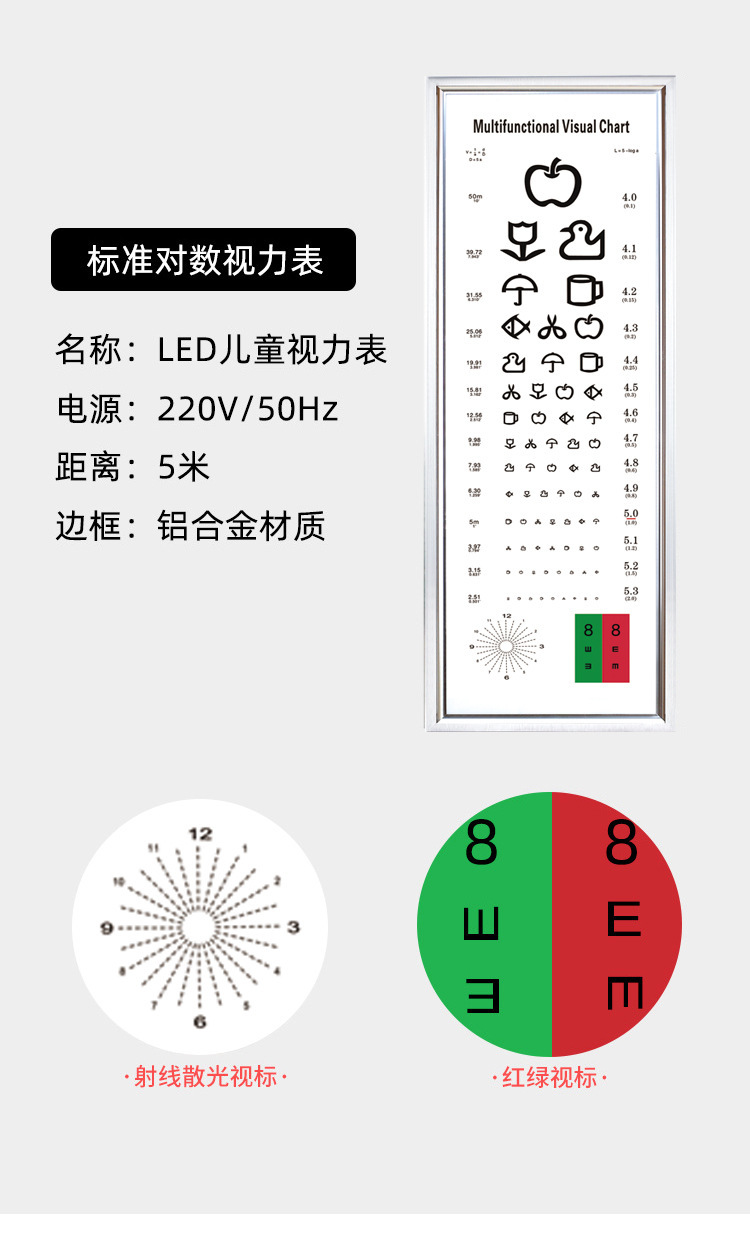 视力表灯箱5米标准对数测视表儿带遥控童幼儿园保健近视测视力灯医院led 验光灯箱*3 眼镜验光设备*4 对色灯箱 挂图国际标准源头厂家led灯箱E 儿童挂图*3 国际标准 源头厂家