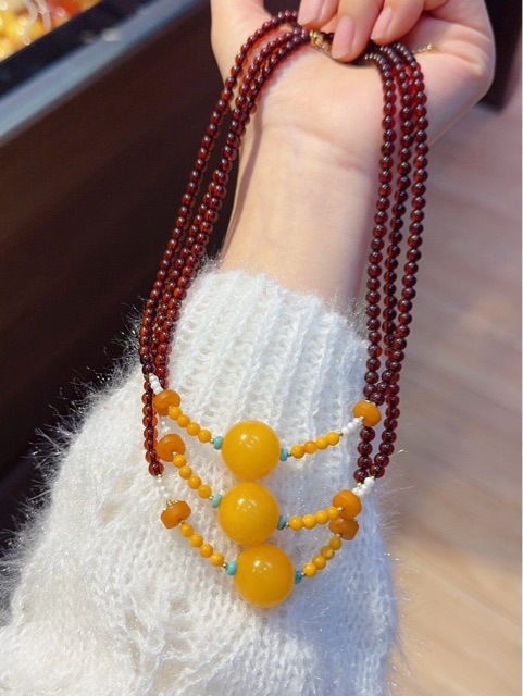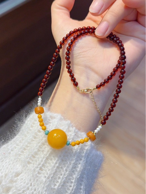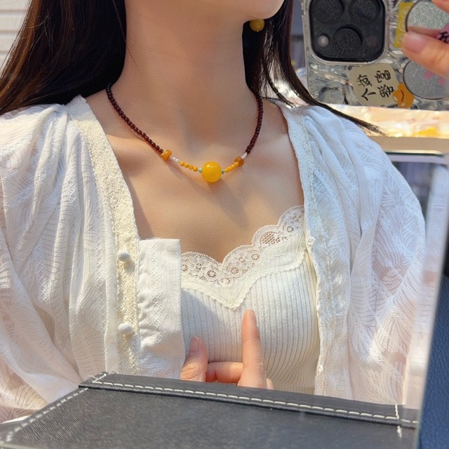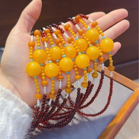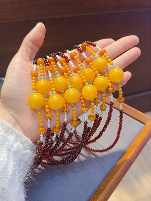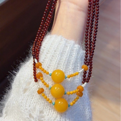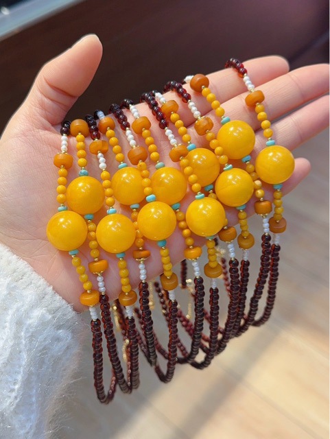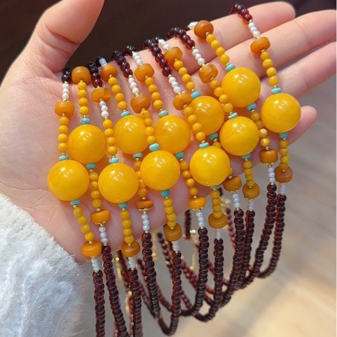 Натуральное русское старинное ожерелье из пчелиного воска, цепочка на ключицу, подлинный русский оранжевый узор, старый воск, редкие большие круглые бусины