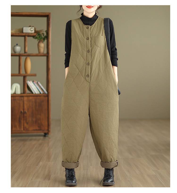 Стеганые брюки на подтяжках с ромбами для круглых девочек, женские модные однотонные гарем, повседневный комбинезон, зимний комбинезон, повседневные брюки с принтом