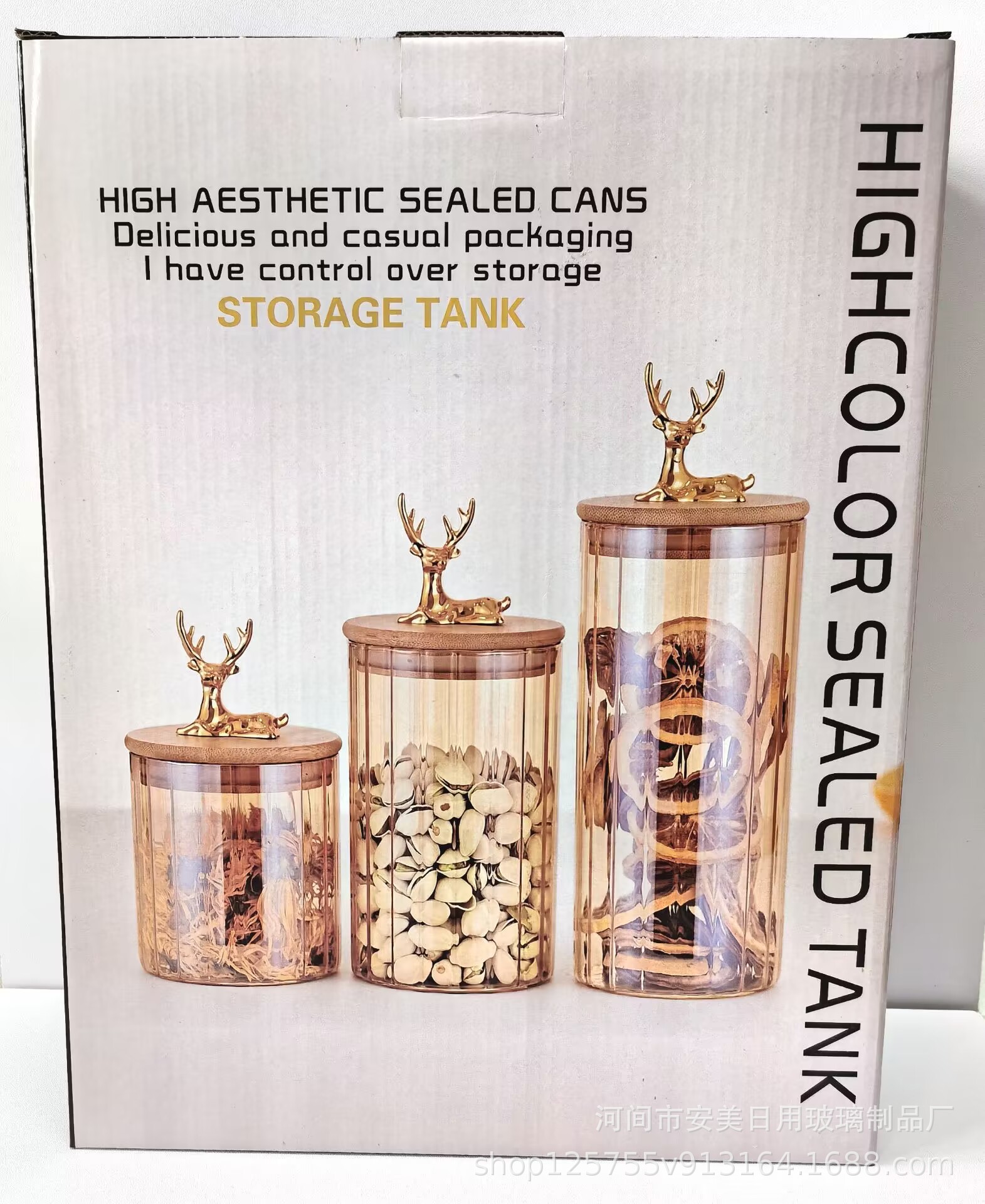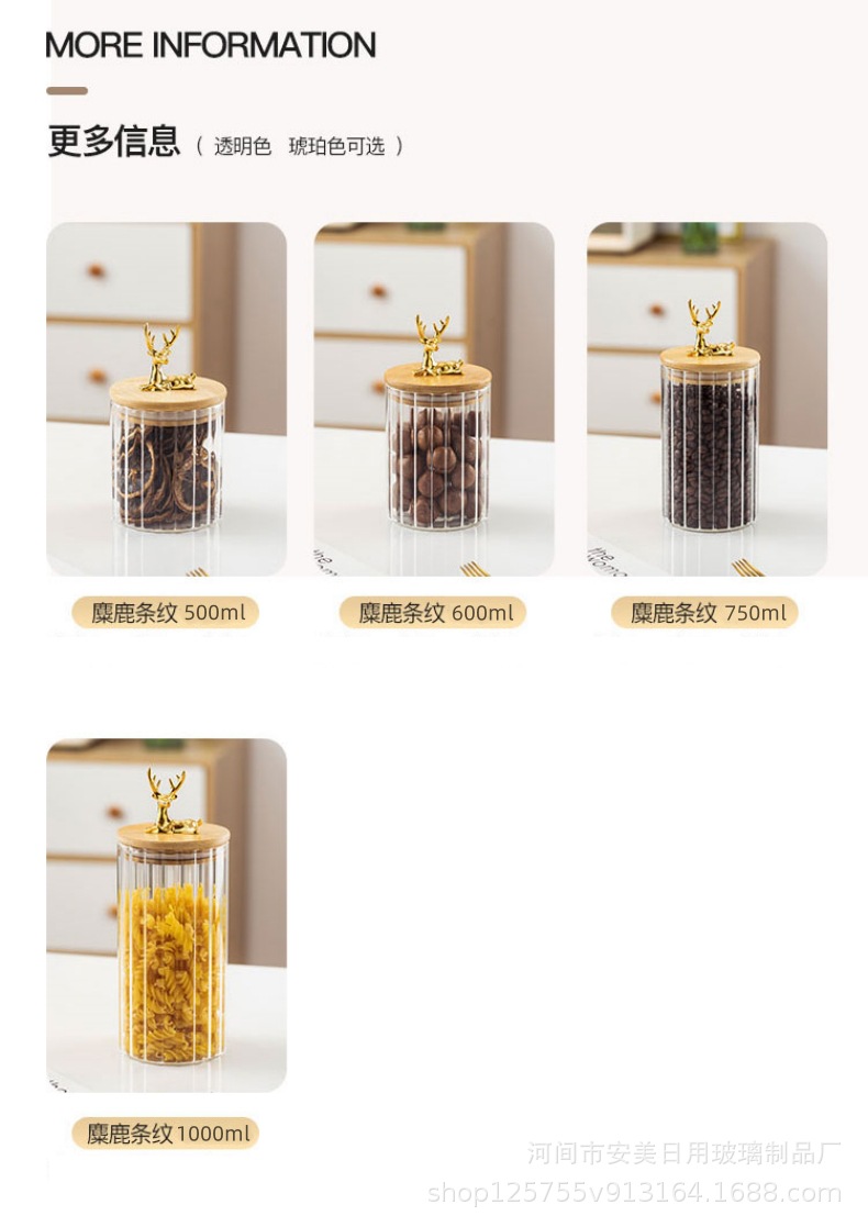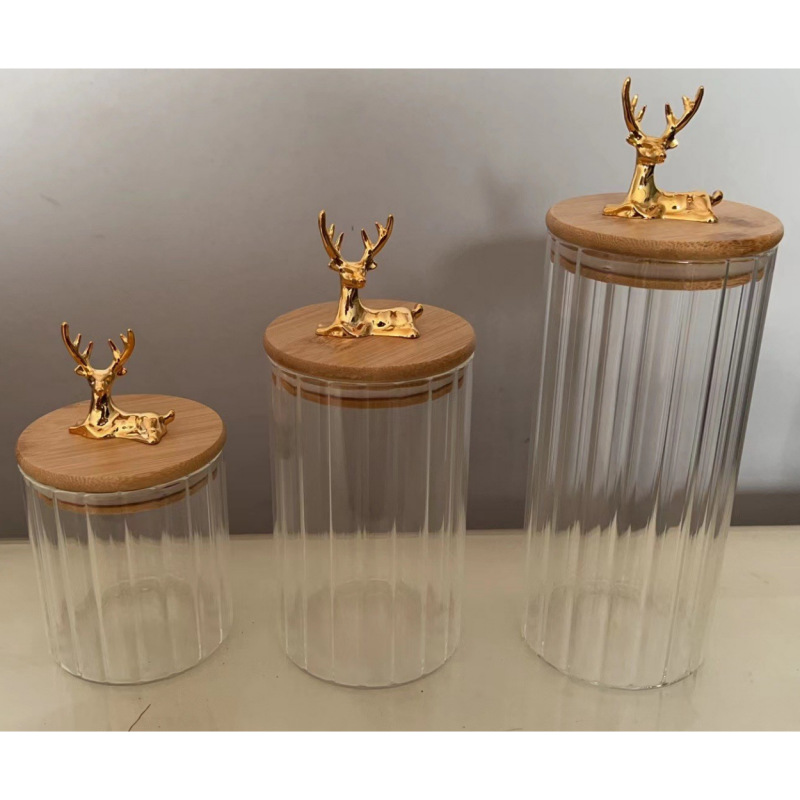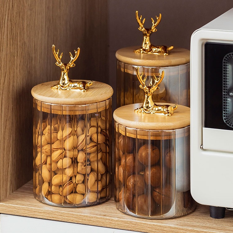 Банка для хранения кофе, керамическая банка для хранения в форме олененка, вертикальная полосатая янтарная банка из высококачественного боросиликатного стекла, банка для конфет с бамбуковой крышкой, герметичная банка