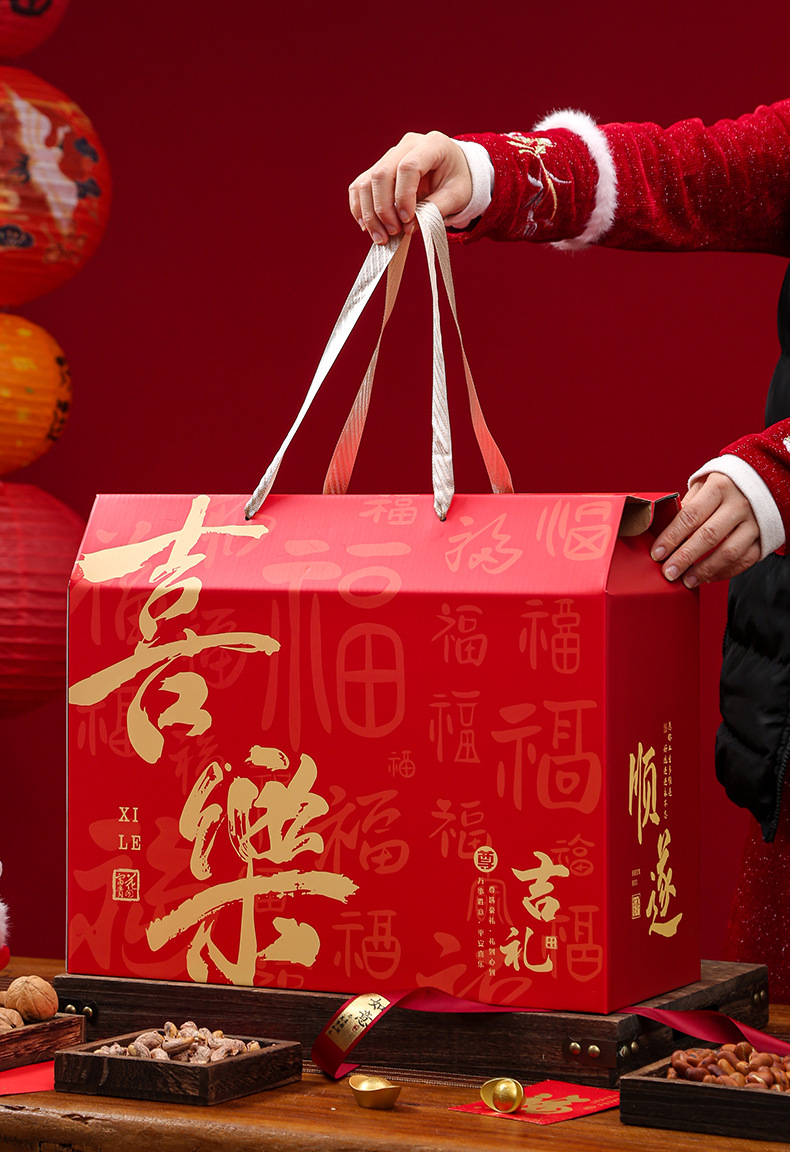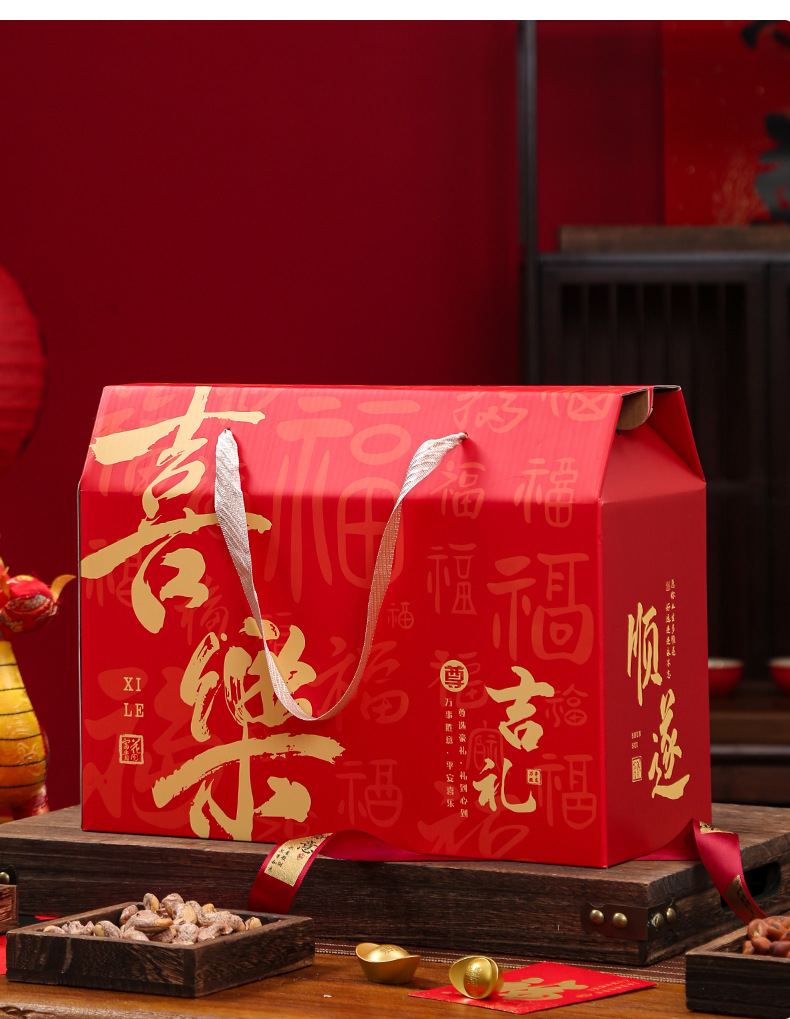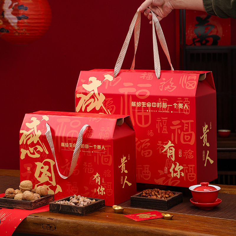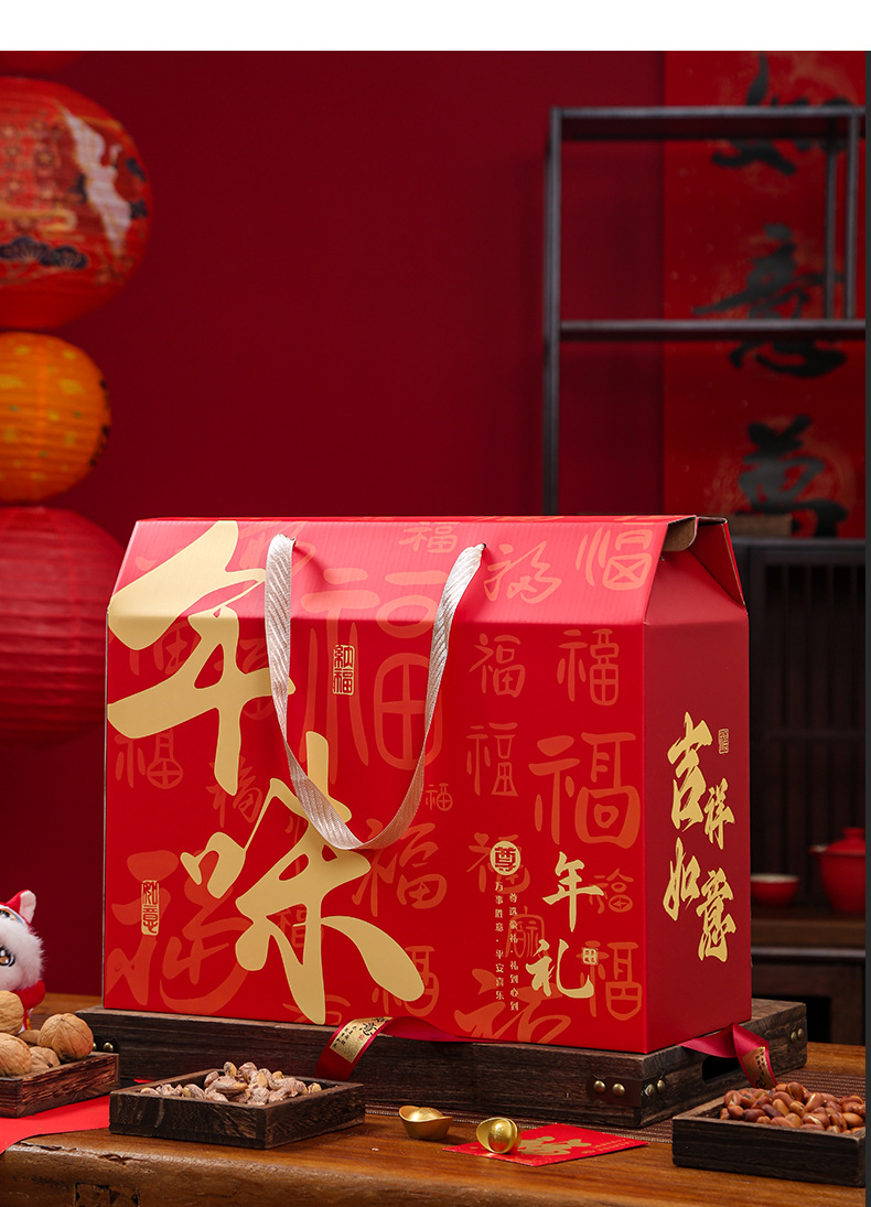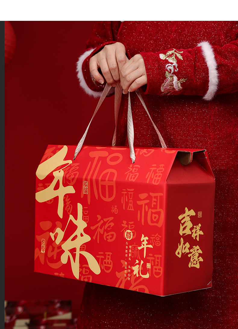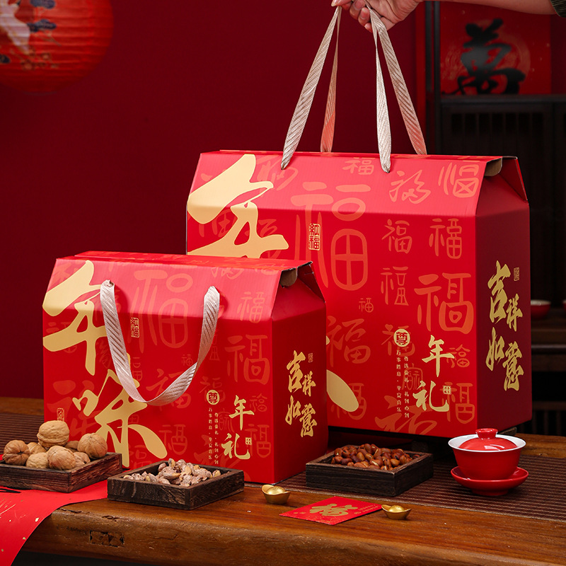Новогодняя универсальная подарочная коробка премиум-класса с золотым тиснением, новогодняя упаковка для кондитерских изделий и ветчины с красной китайской печатью, пустая коробка в наличии.